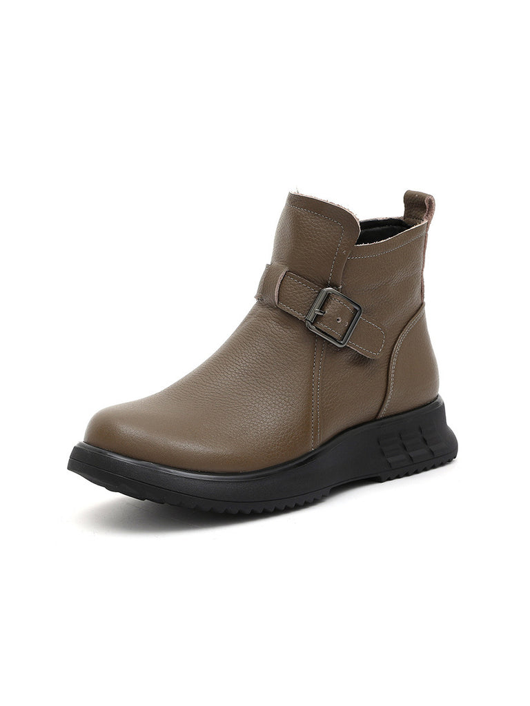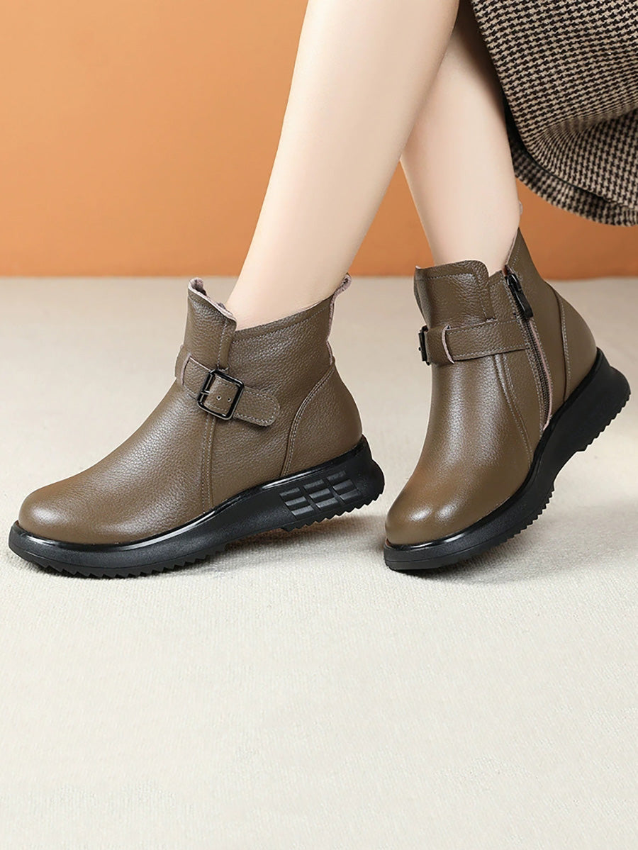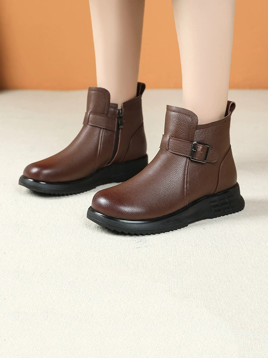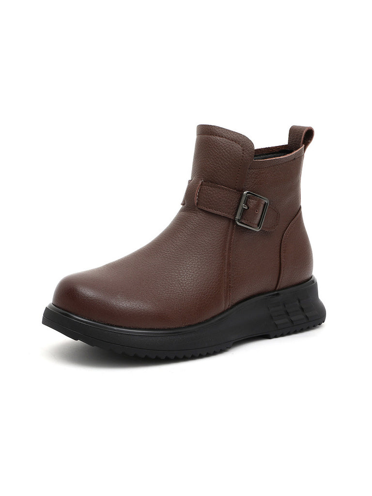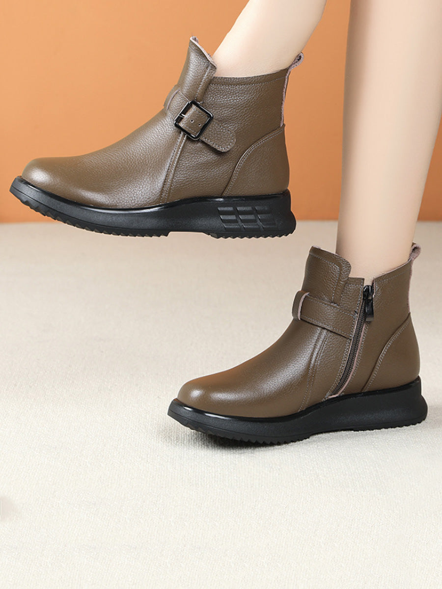 Women Winter Genuine Leather Fleece-lined Martin Boots