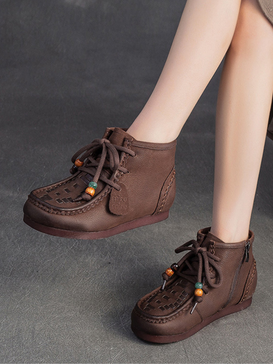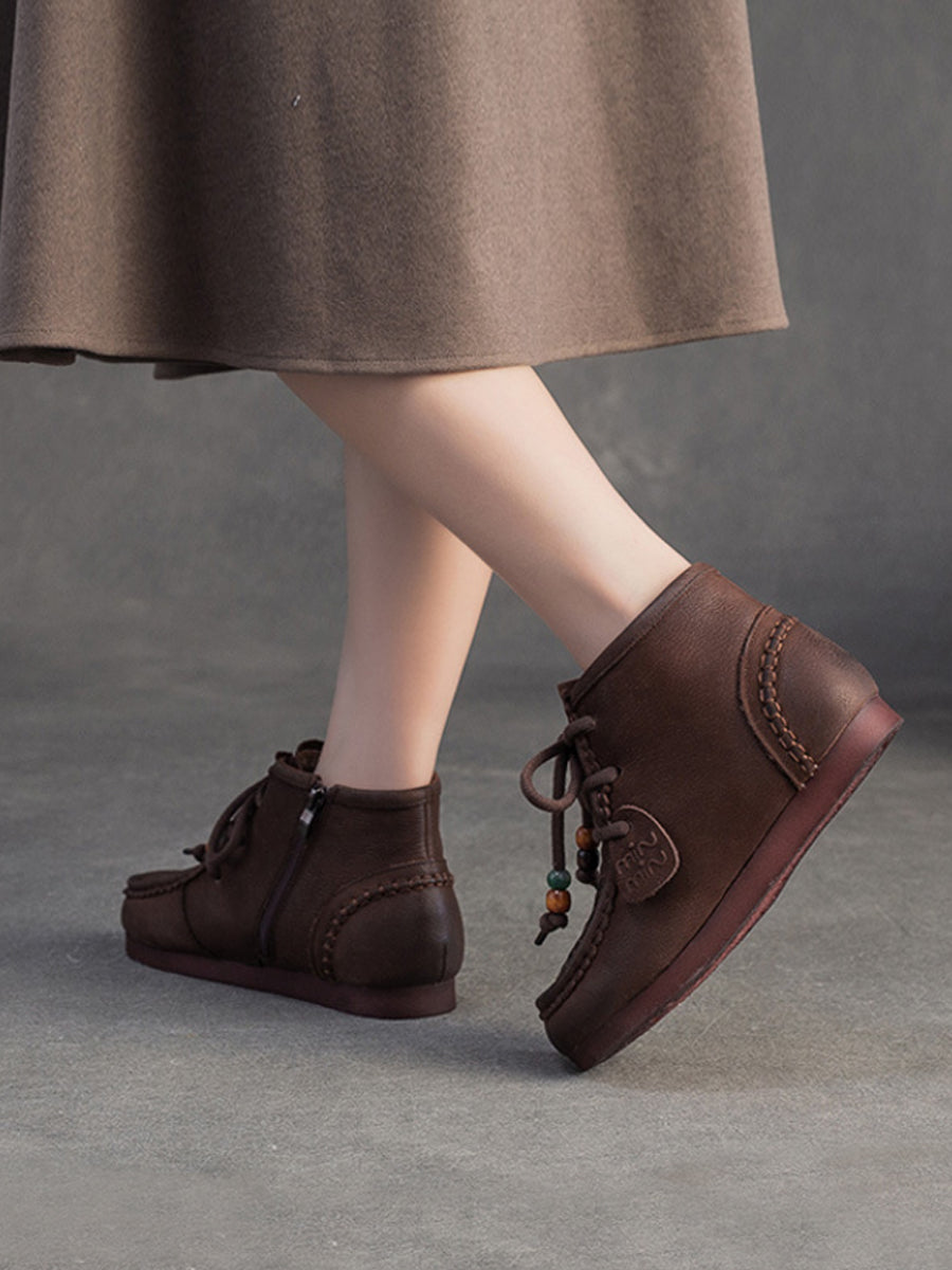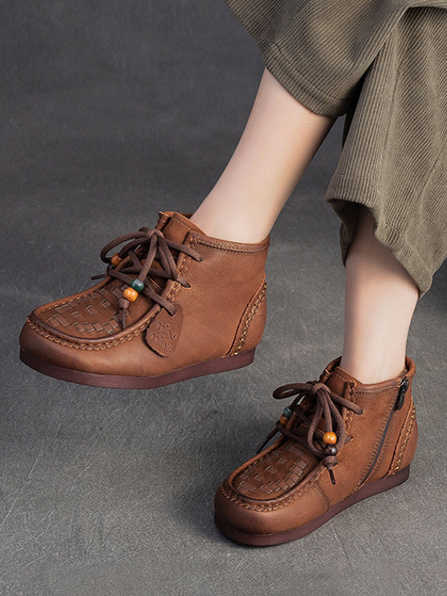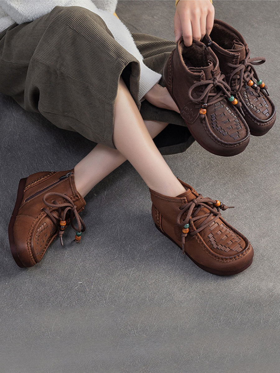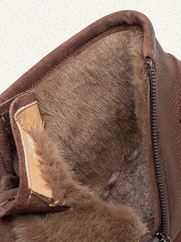 Women Winter Genuine Leather Spliced Fleece-lined Boots
