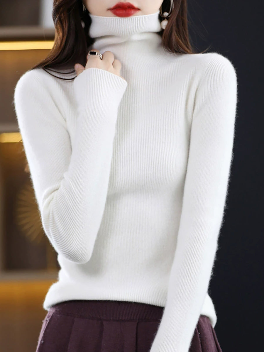 Women Spring Casual Pure Color Turtleneck Sweater