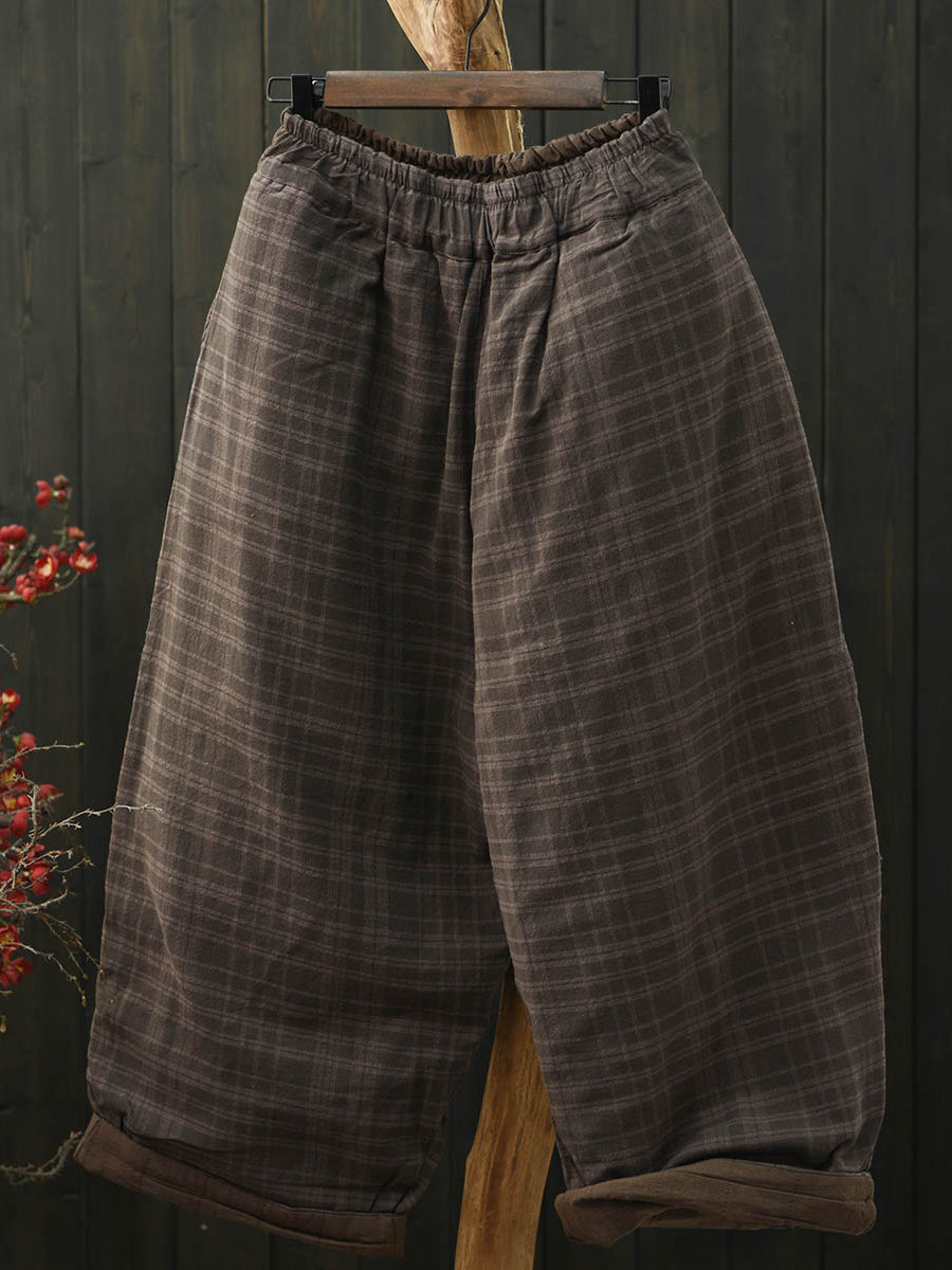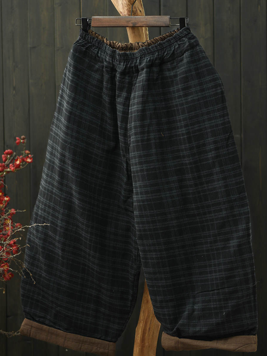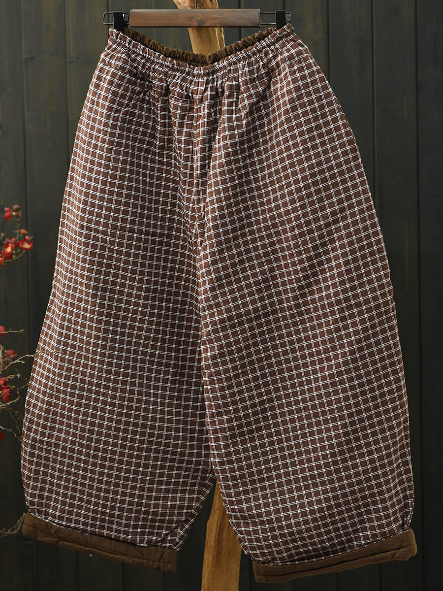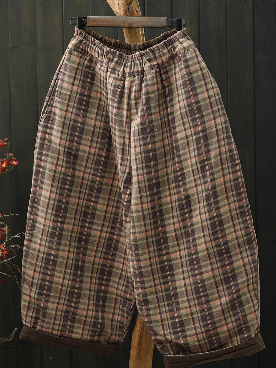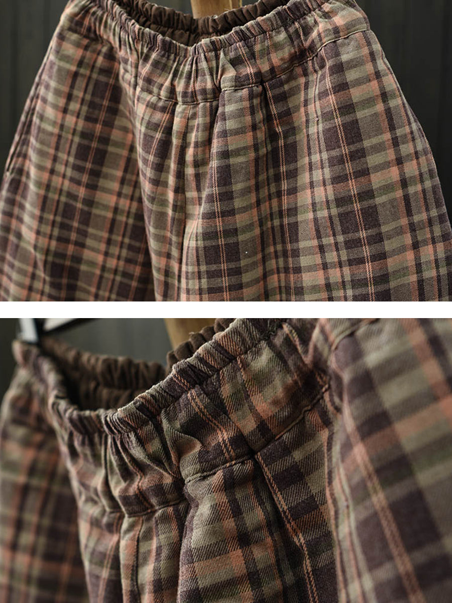 Women Winter Retro Plaid Padded Bloomers