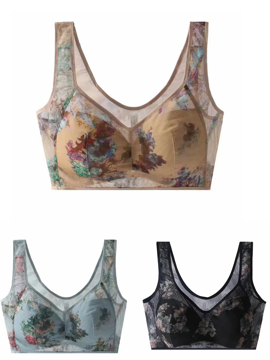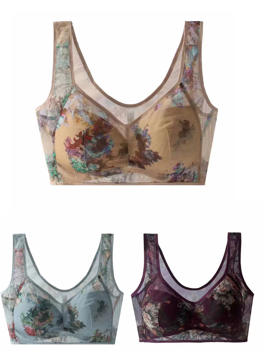 3 Pieces Women Artsy Flower One-piece Flower Bra