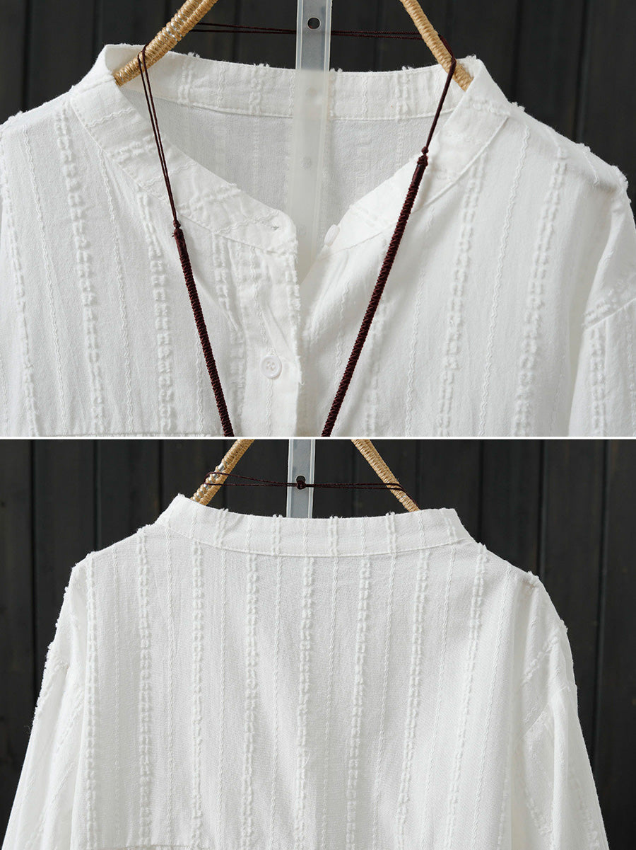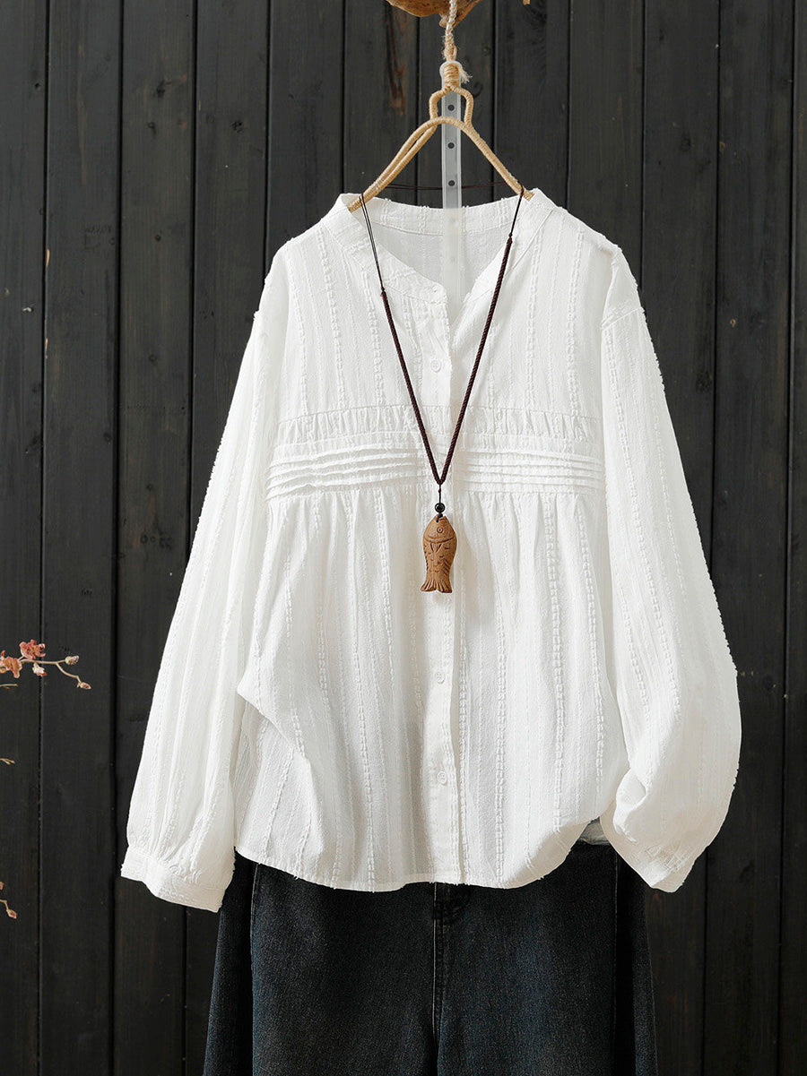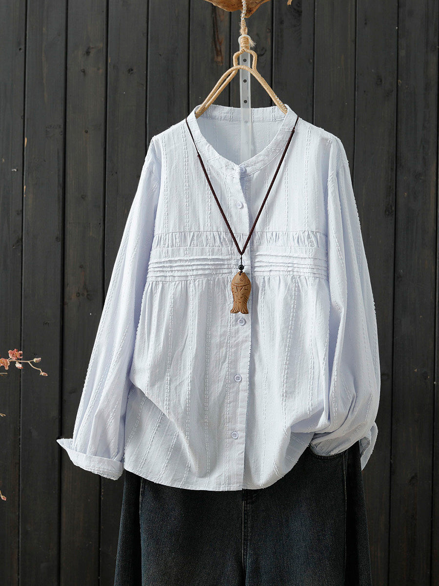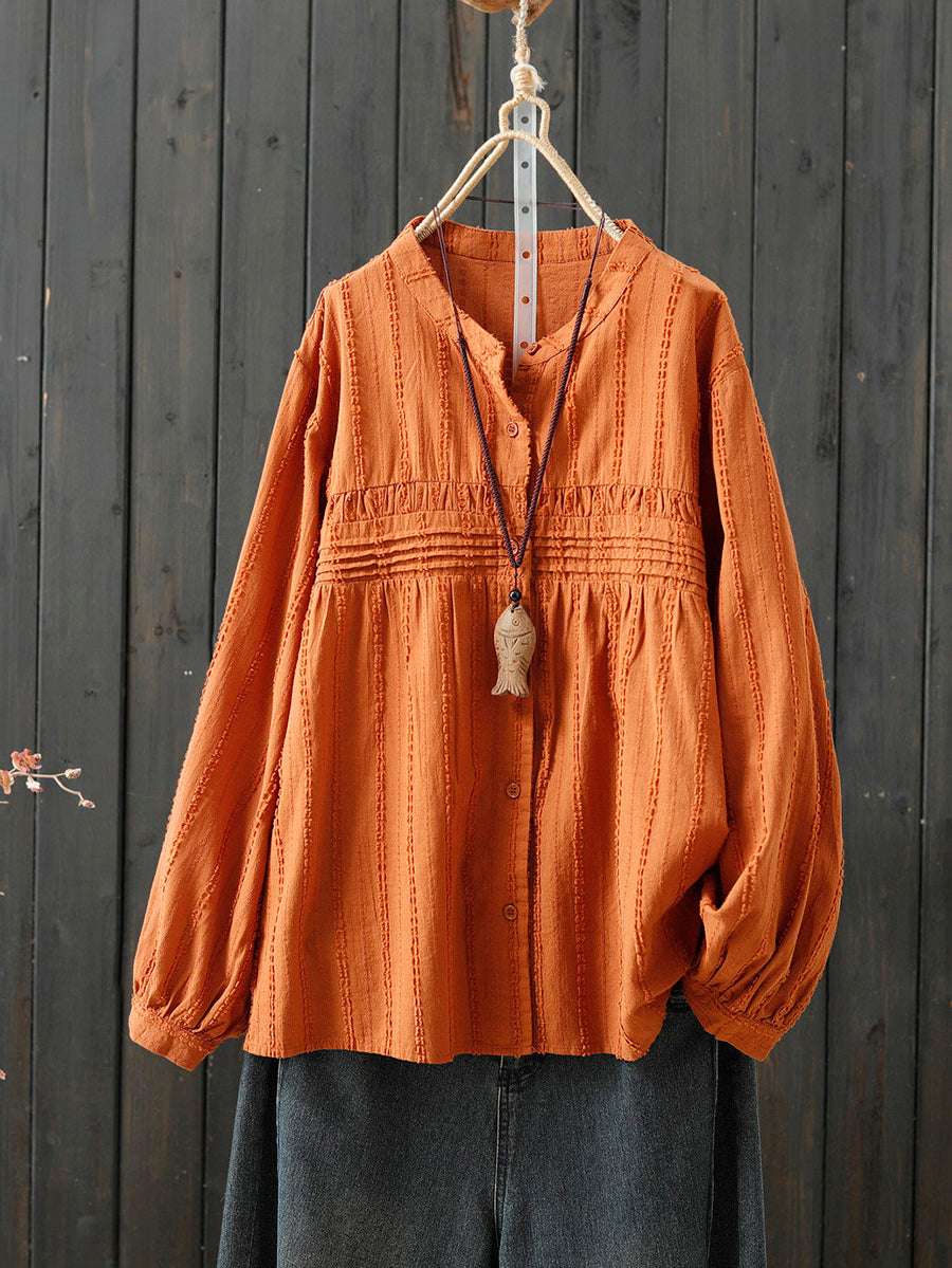 Women Spring Artsy Pure Color 100%Cotton Shirt