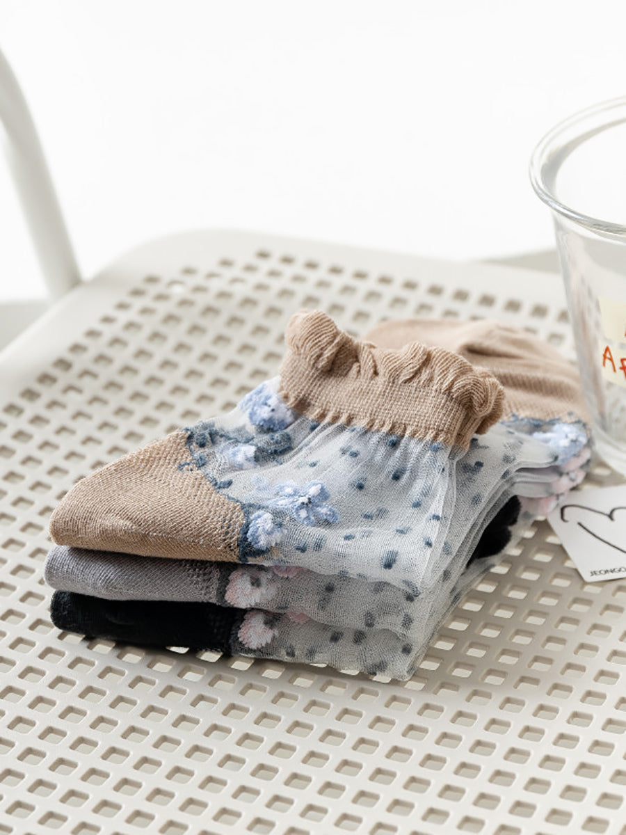3 Pairs Women Artsy Flower Jacquard Lace Socks