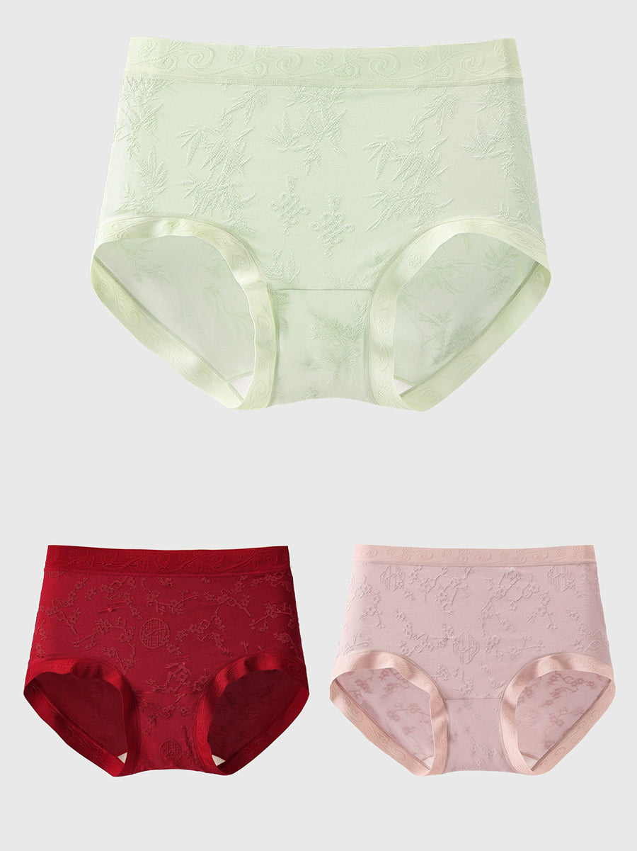 3 Pieces Women Artsy Jacquard High Waist Underwear