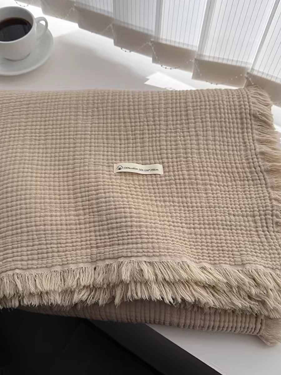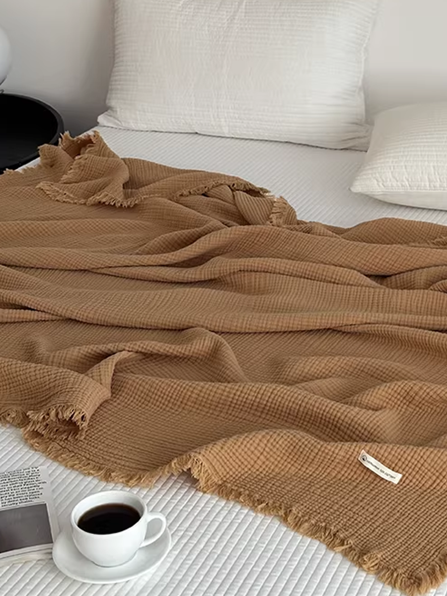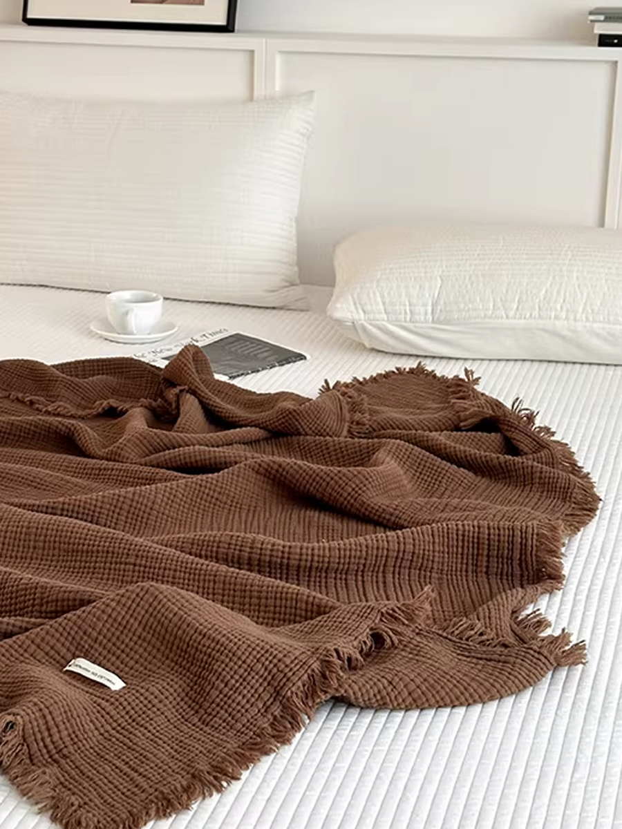 Maillard-style Tassel Four-layer Gauze Cotton Throw Blanket