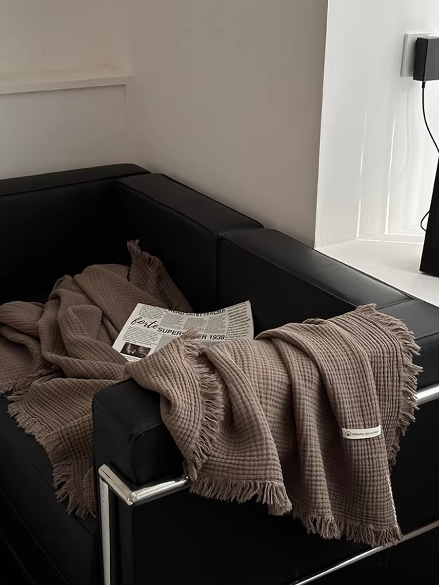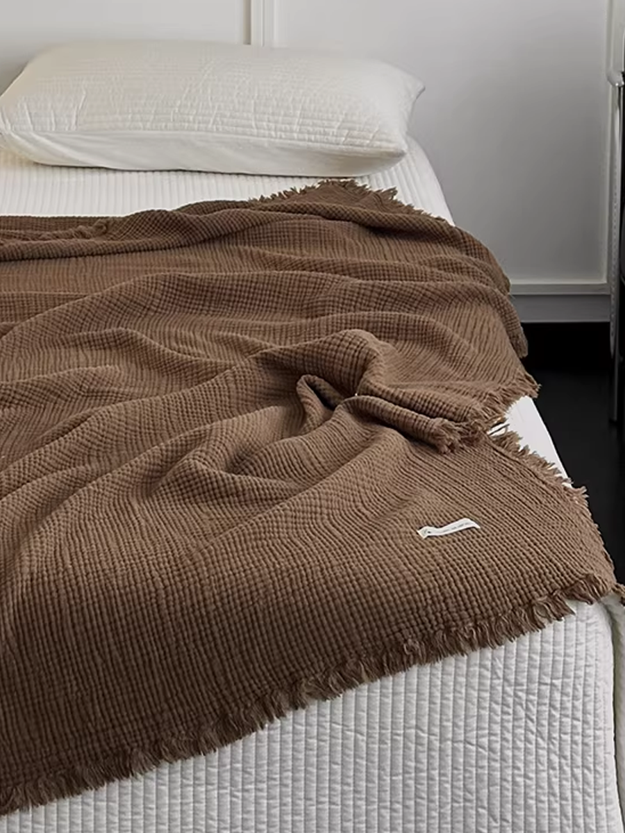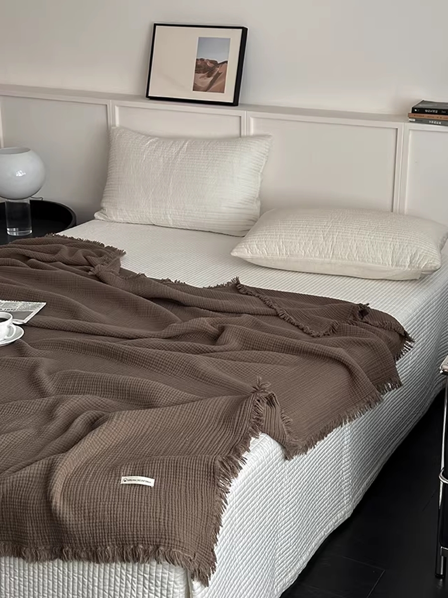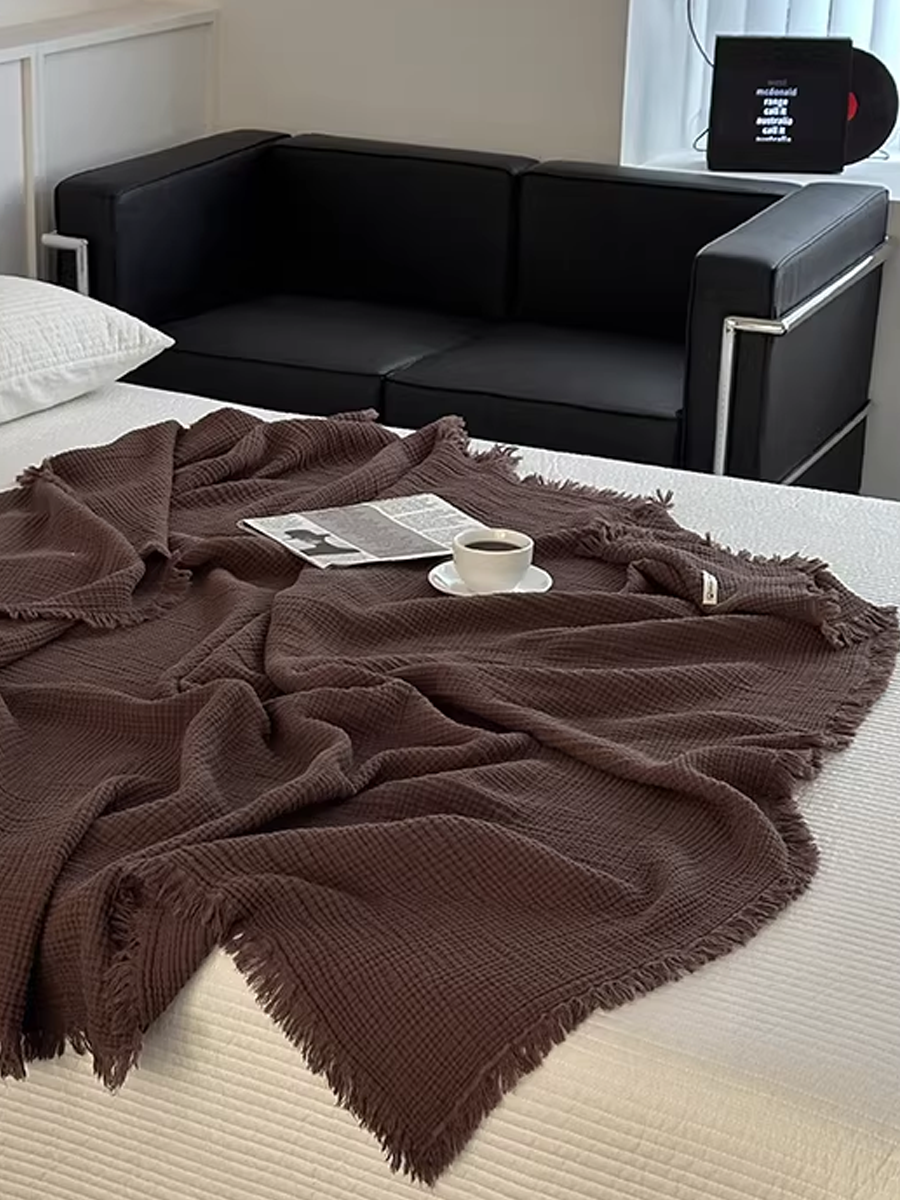 Maillard-style Tassel Four-layer Gauze Cotton Throw Blanket