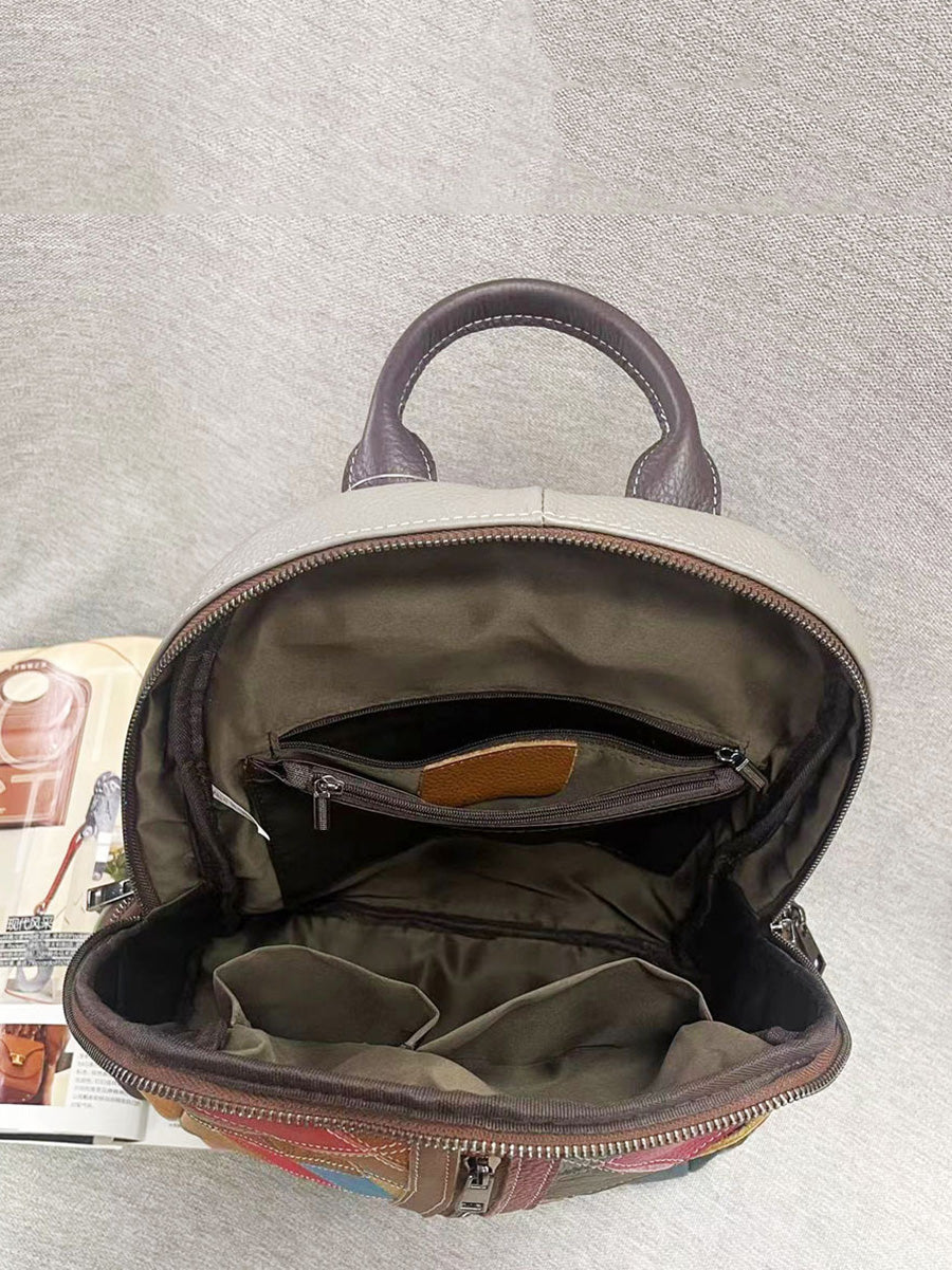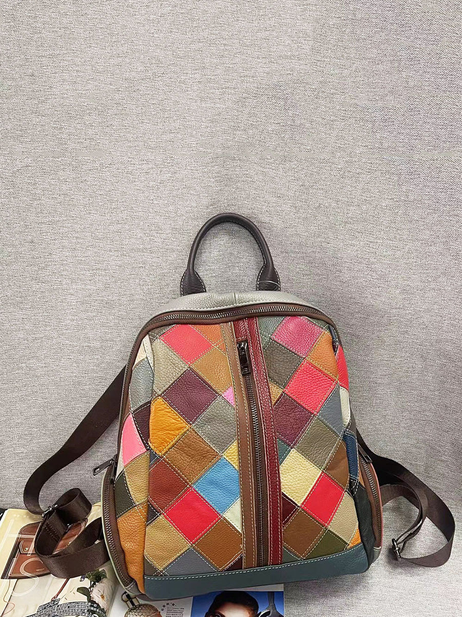 Multicolor Rhomboids Leather Spliced Zipper Backpack