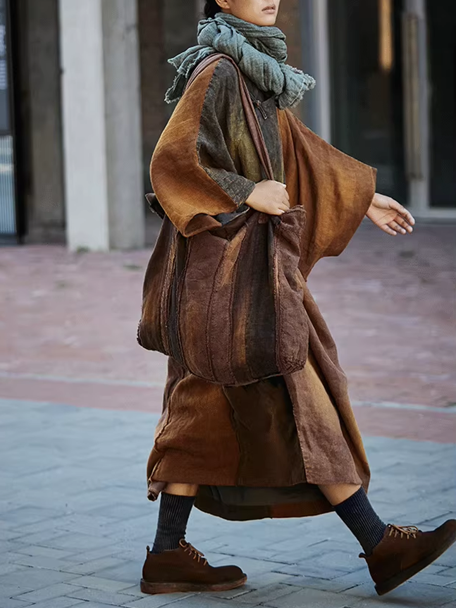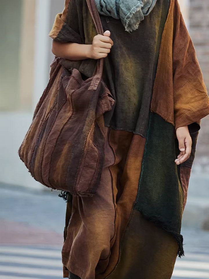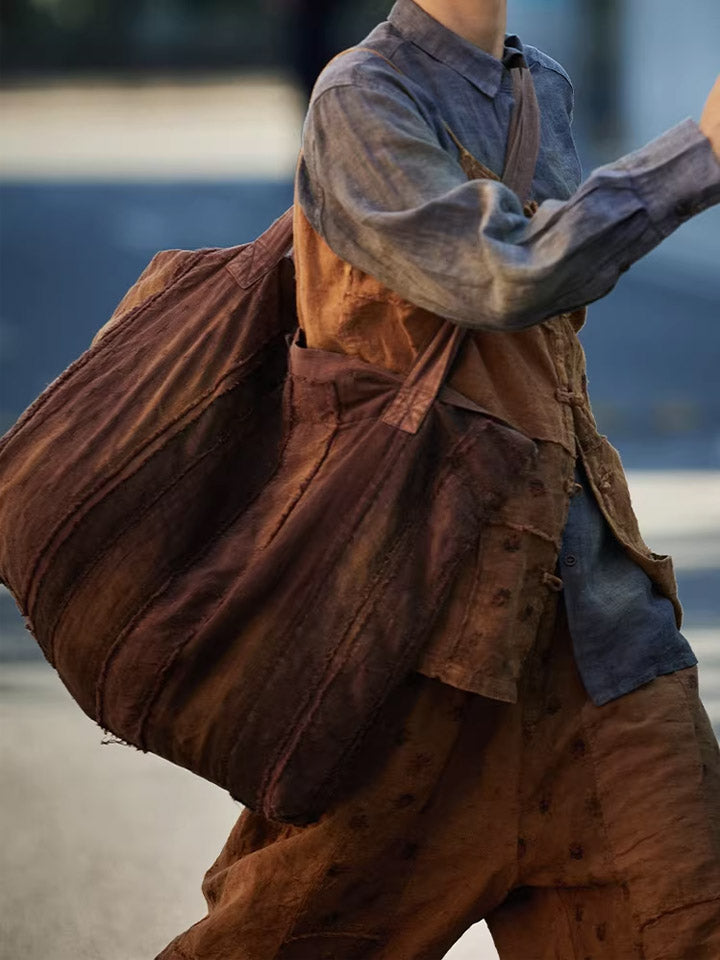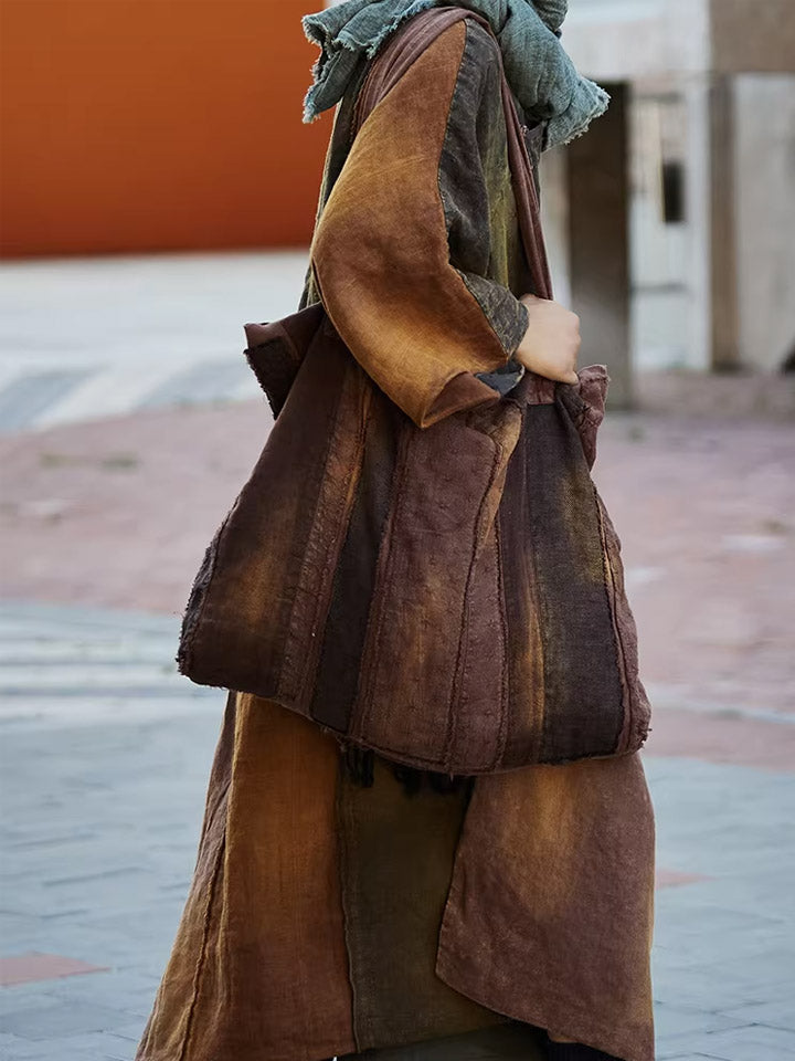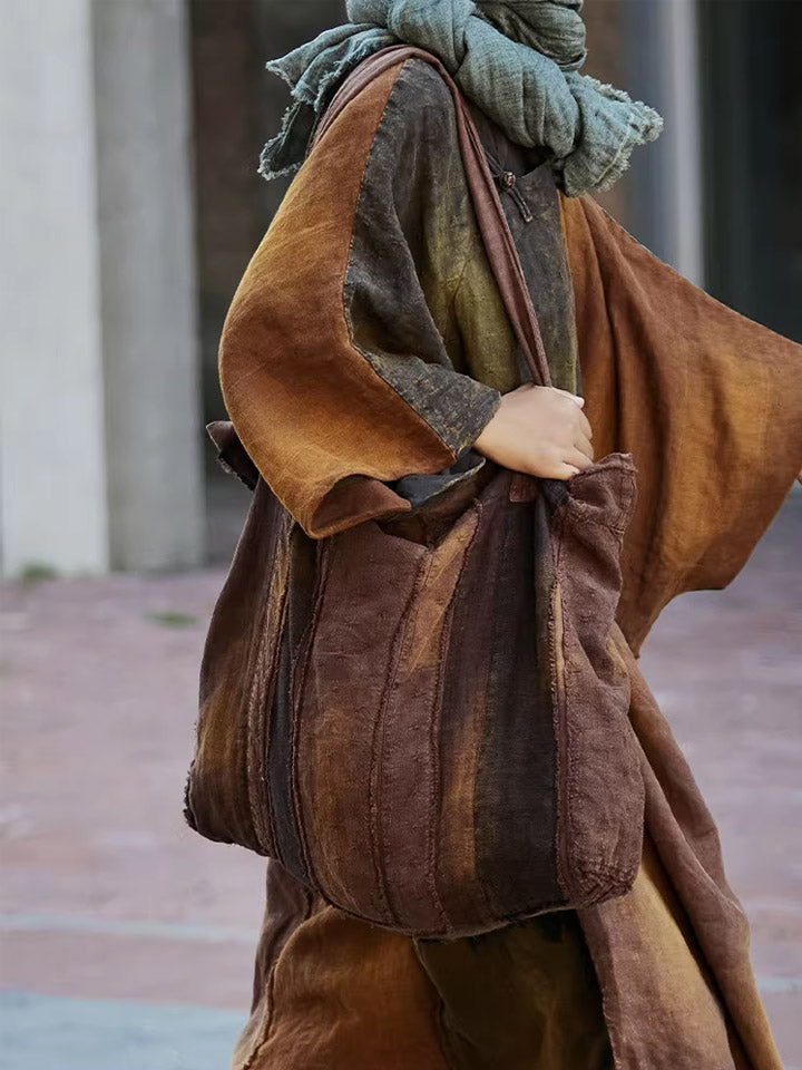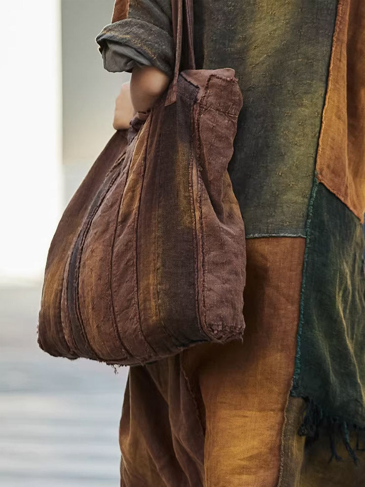 Retro Plant-dyed Linen Stripe Patchwork Shoulder Bag