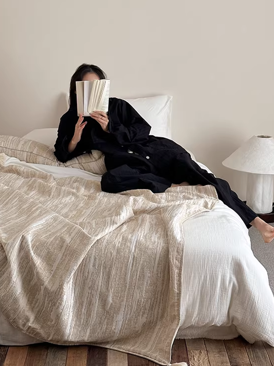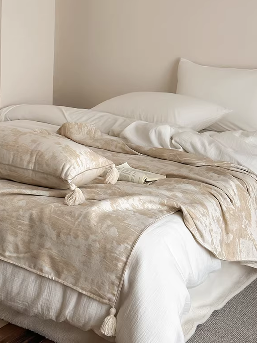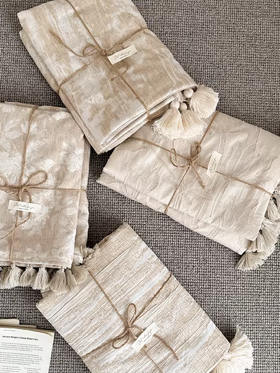 Retro Textured Cotton-Linen Tassel Floral Jacquard Blanket