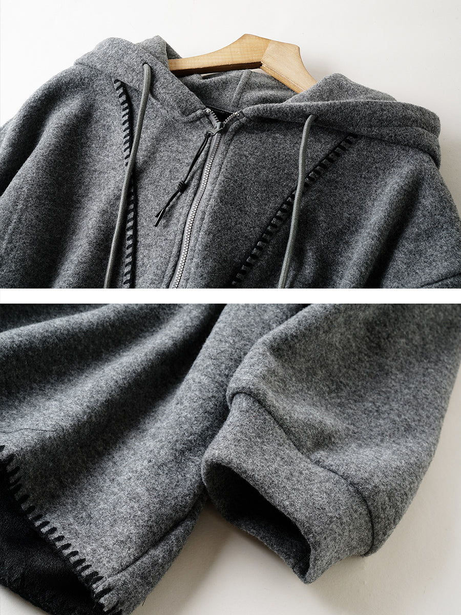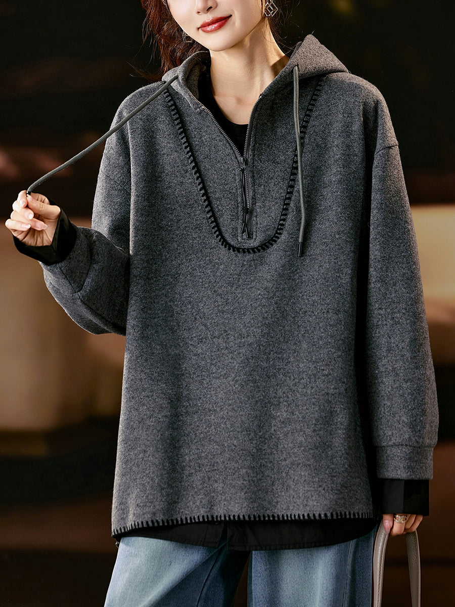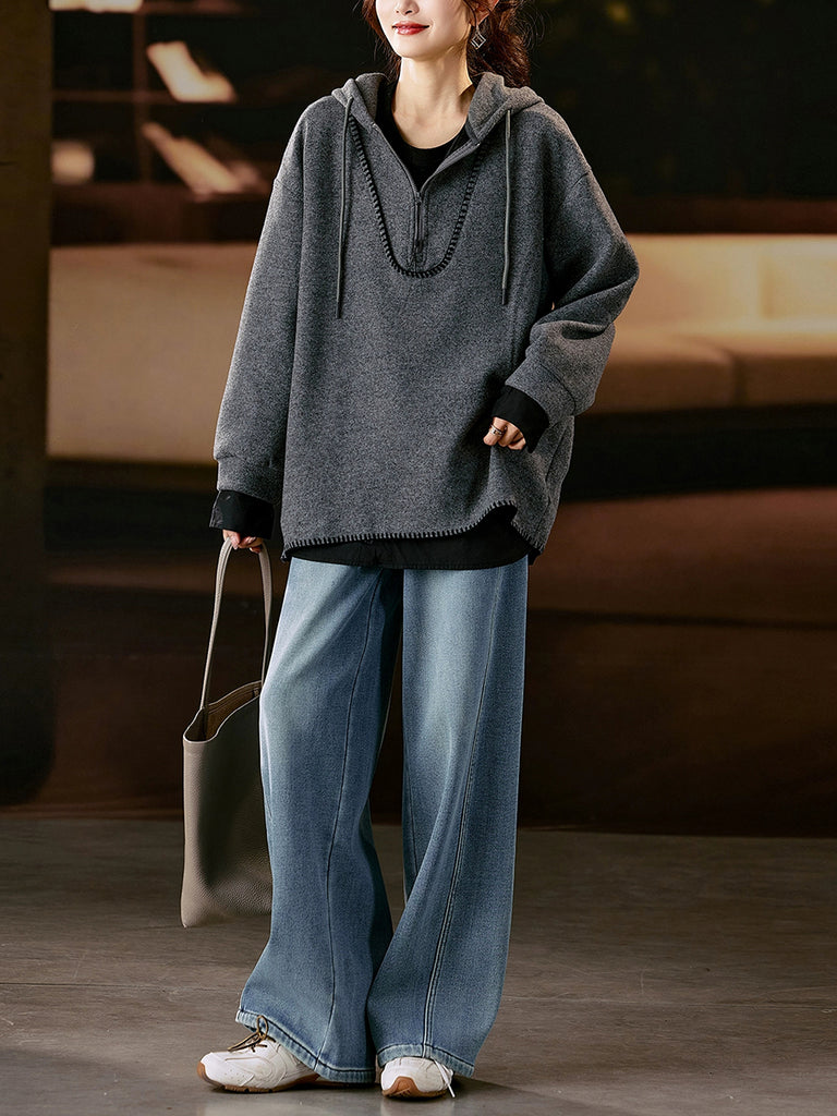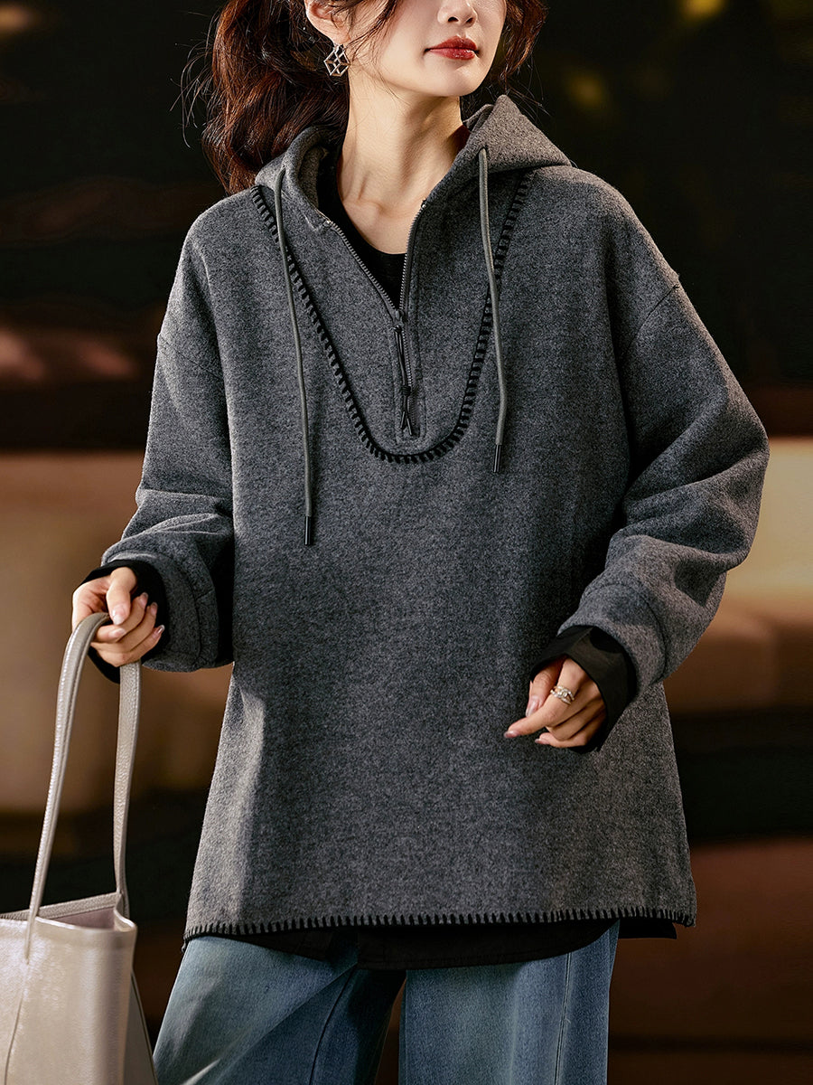Women Artsy Autumn Pure Color Fleece-lined Hoodie