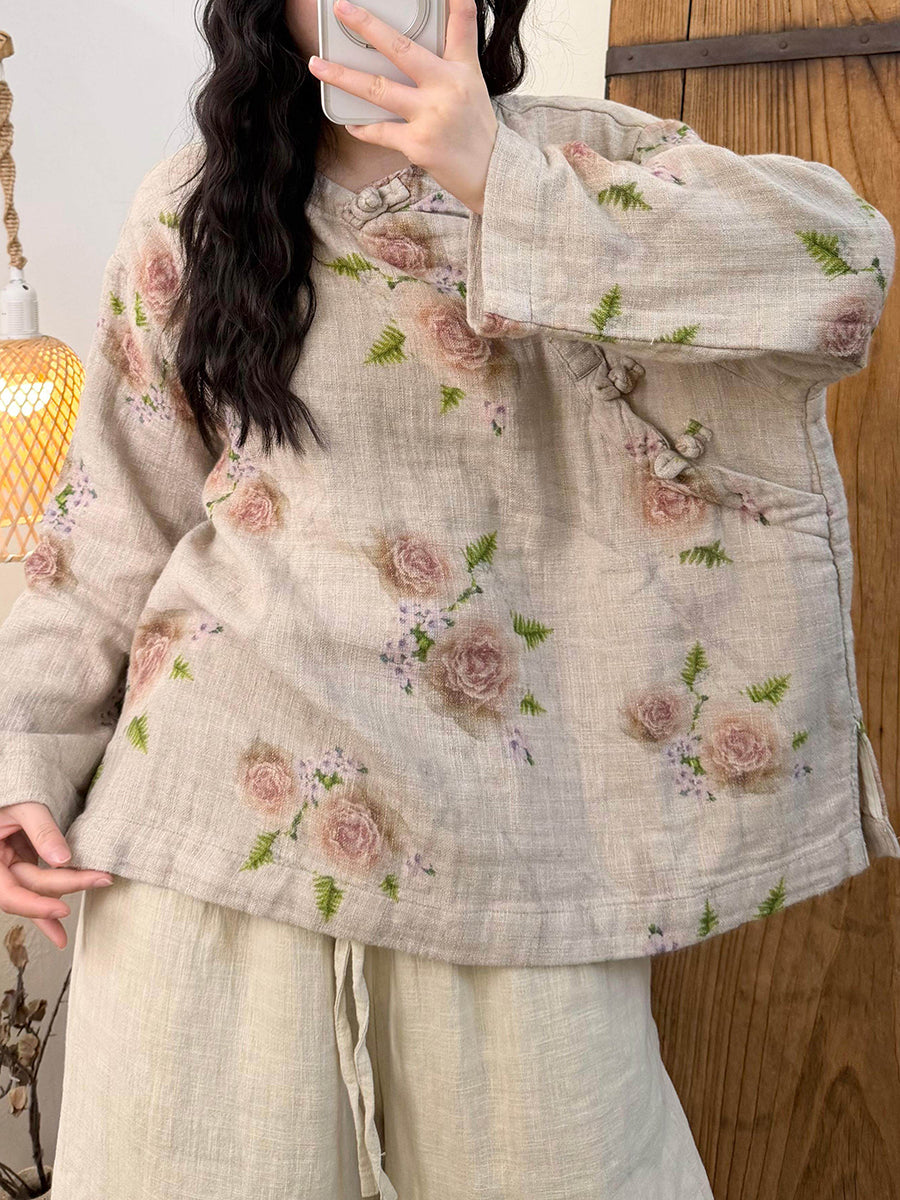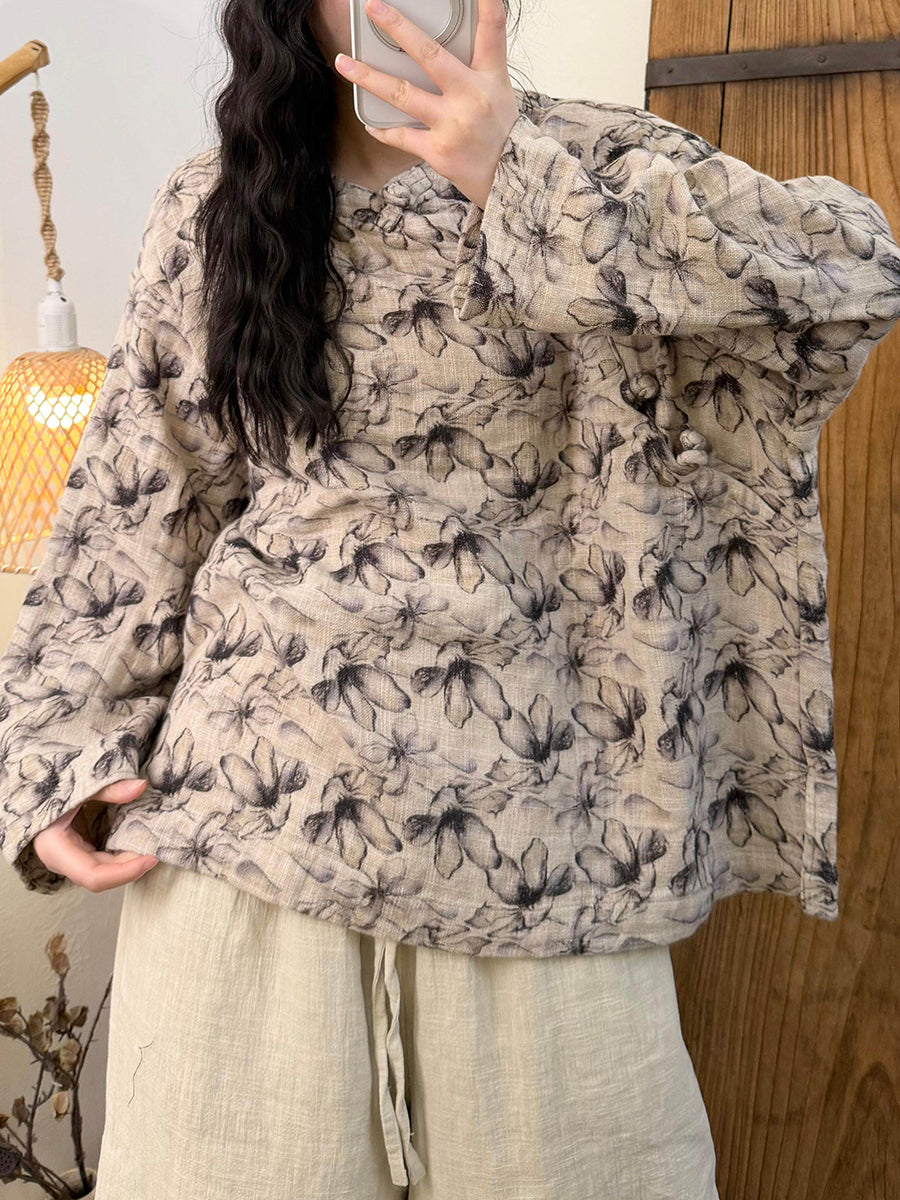 Women Artsy Spring Flower O-Neck Blouse