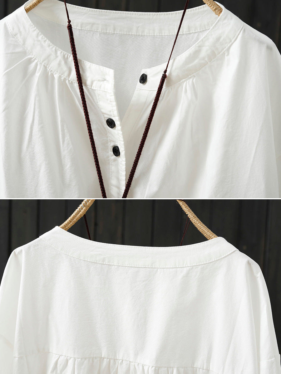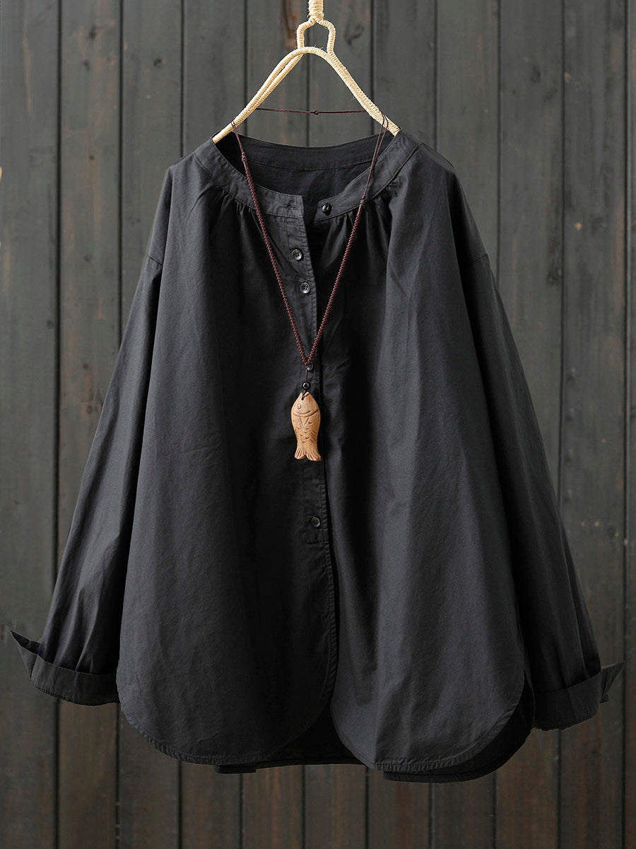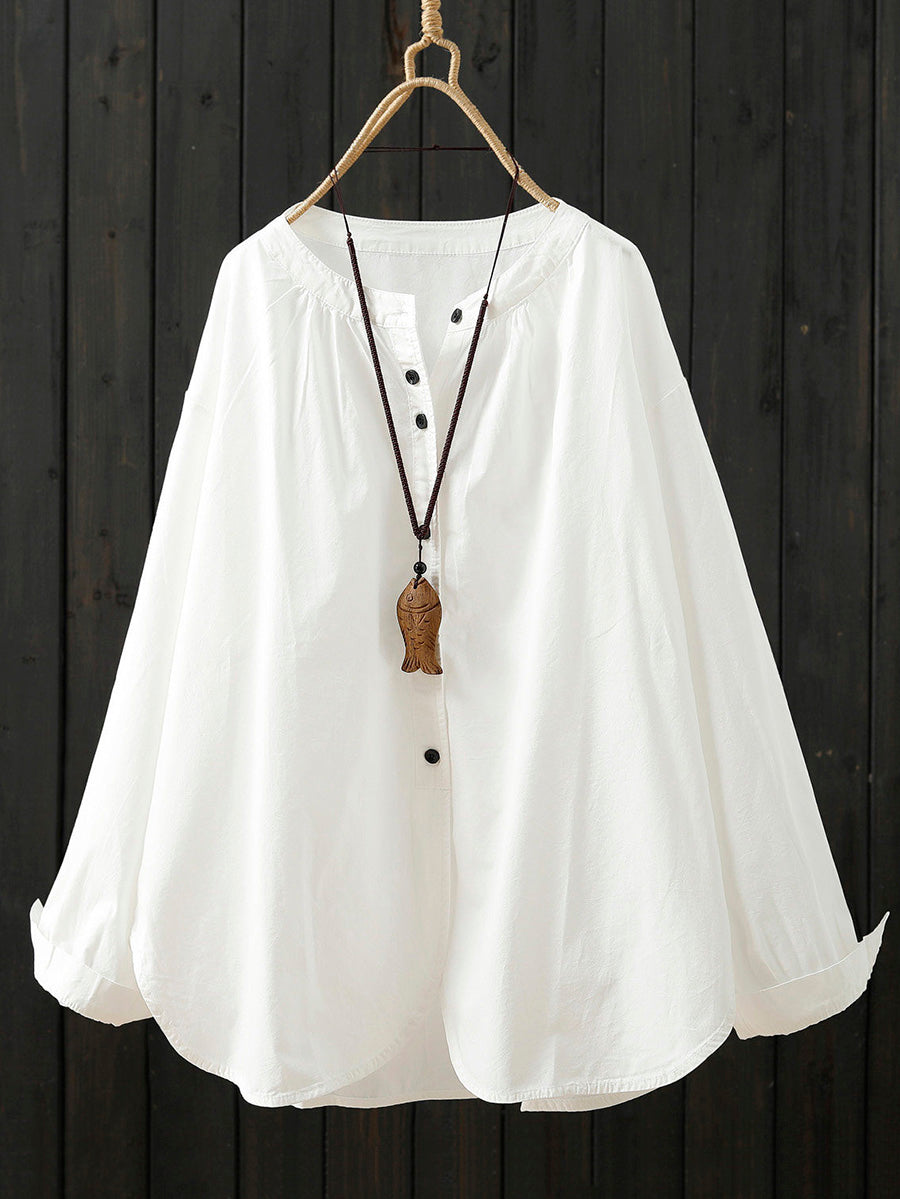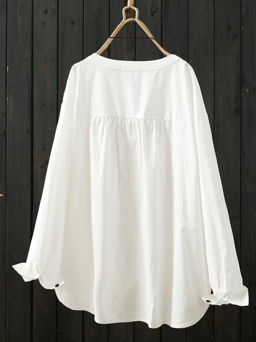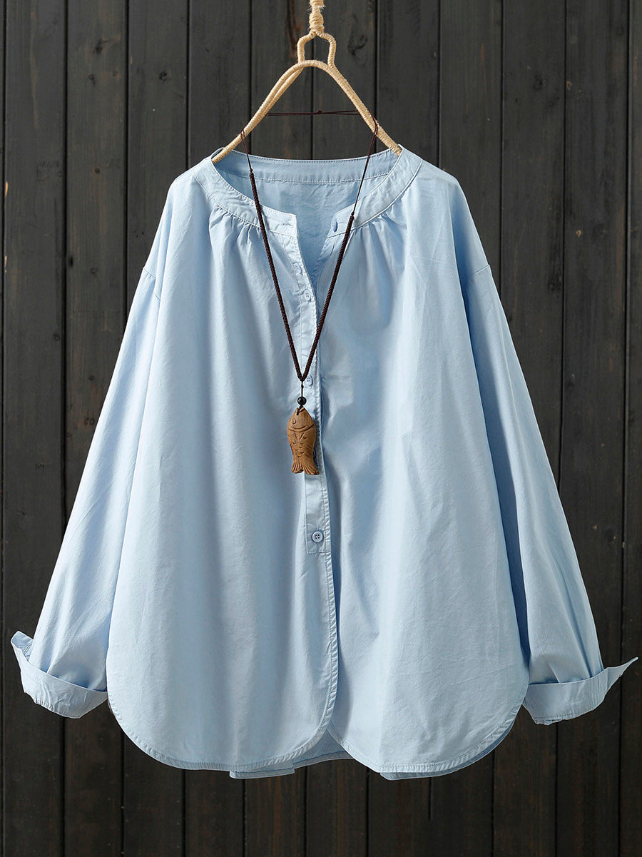 Women Artsy Spring Pure Color 100%Cotton Shirt