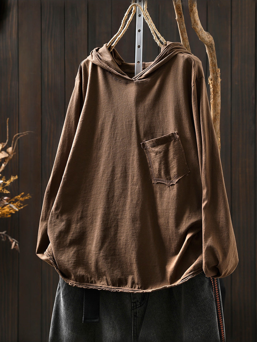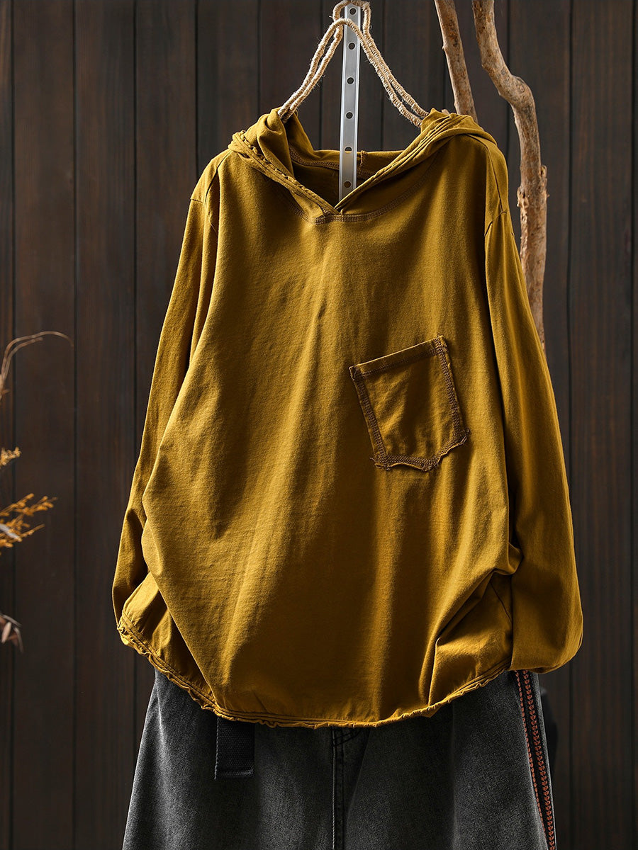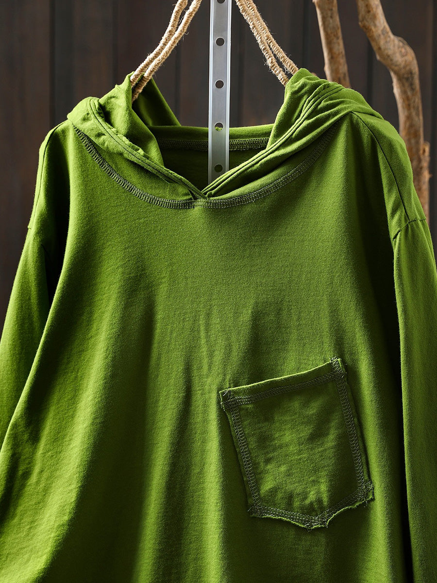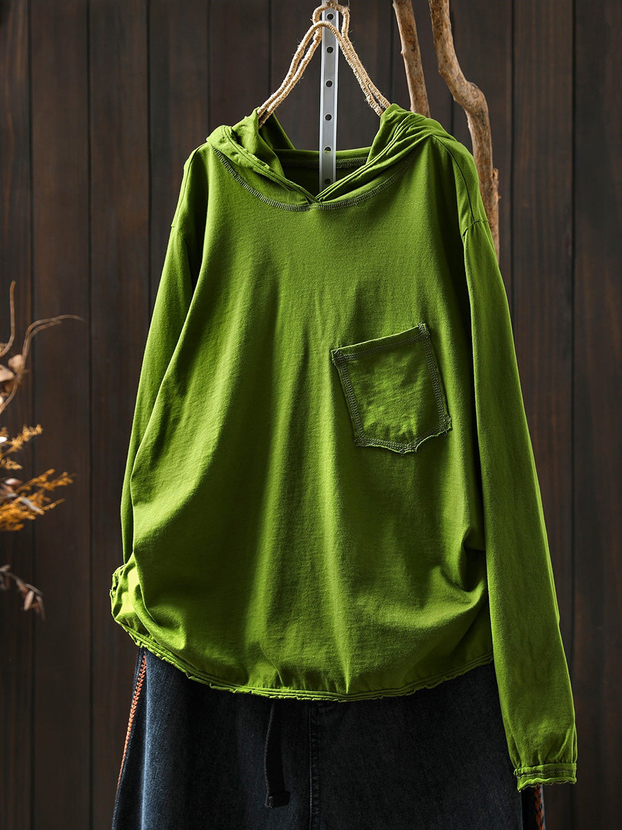 Women Artsy Spring Pure Color Cotton Hoodie