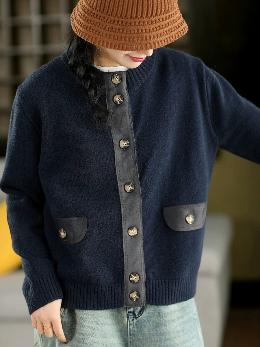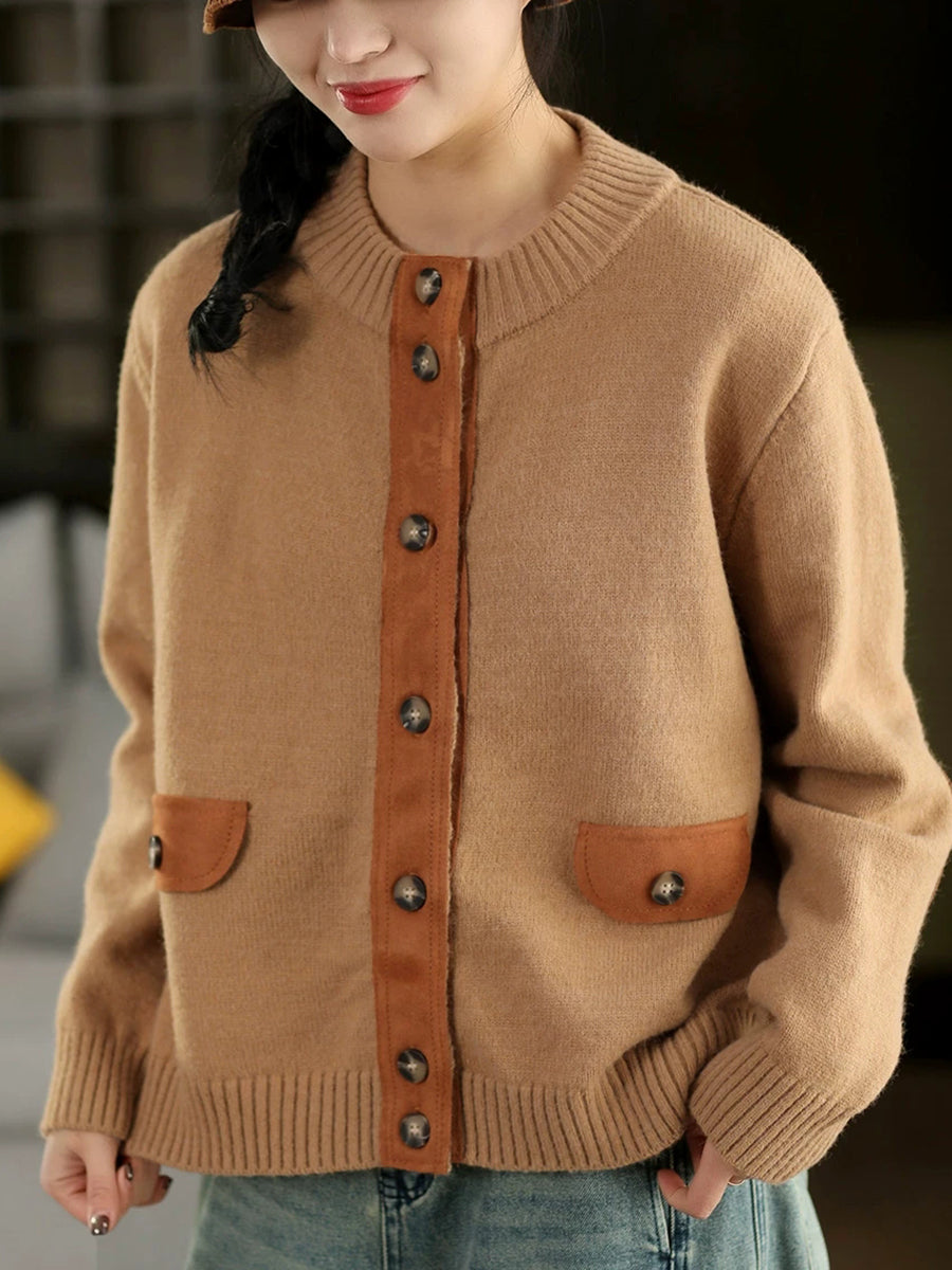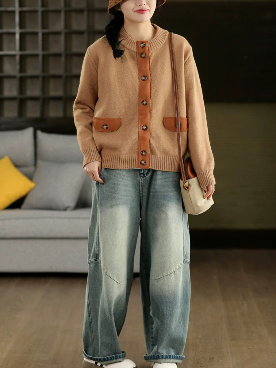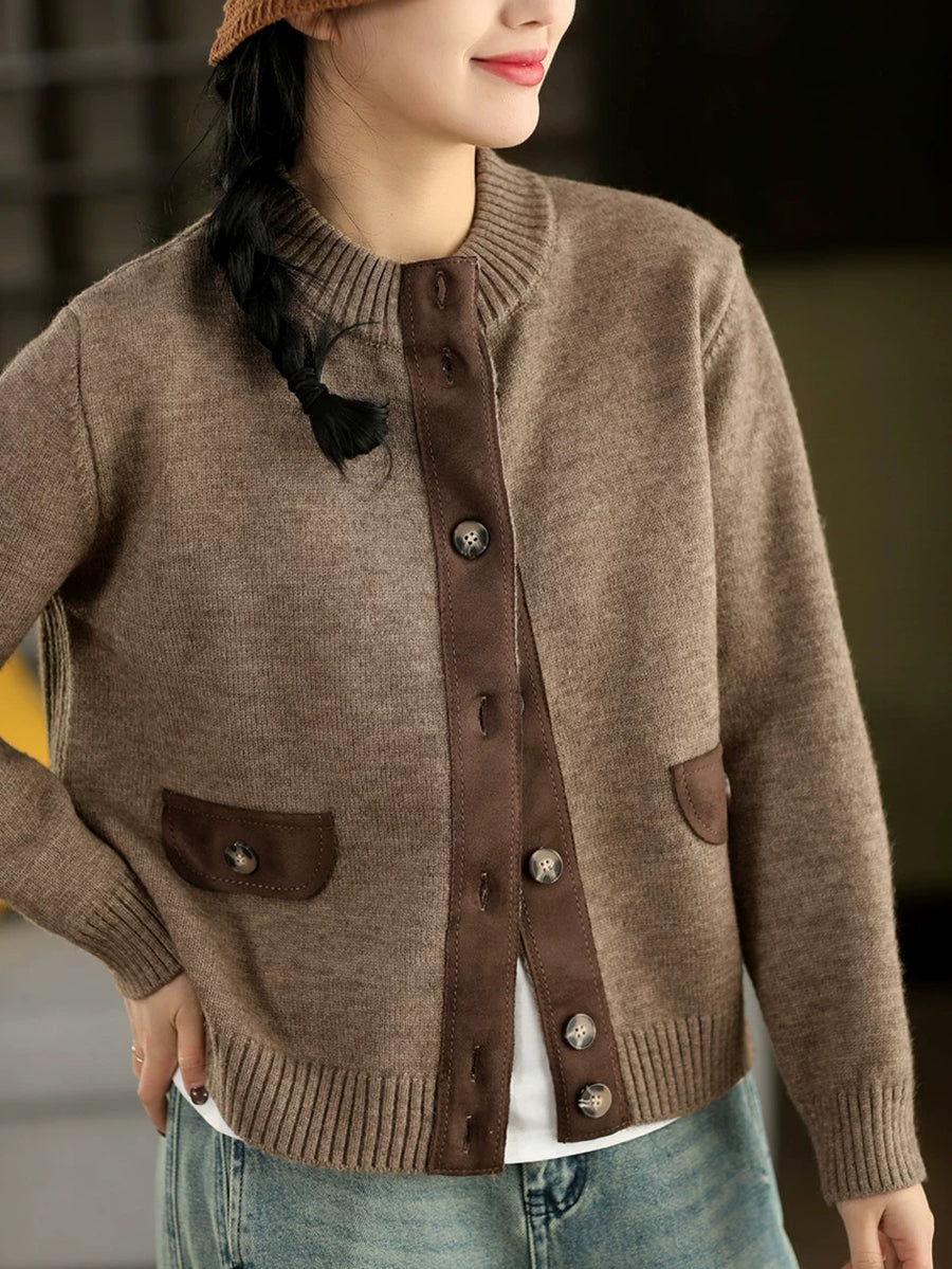 Women Artsy Spring Spliced O-Neck Cardigan Sweater