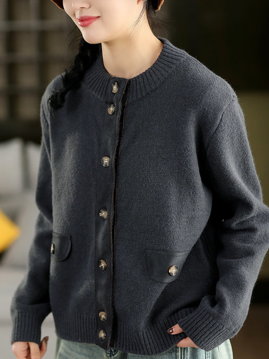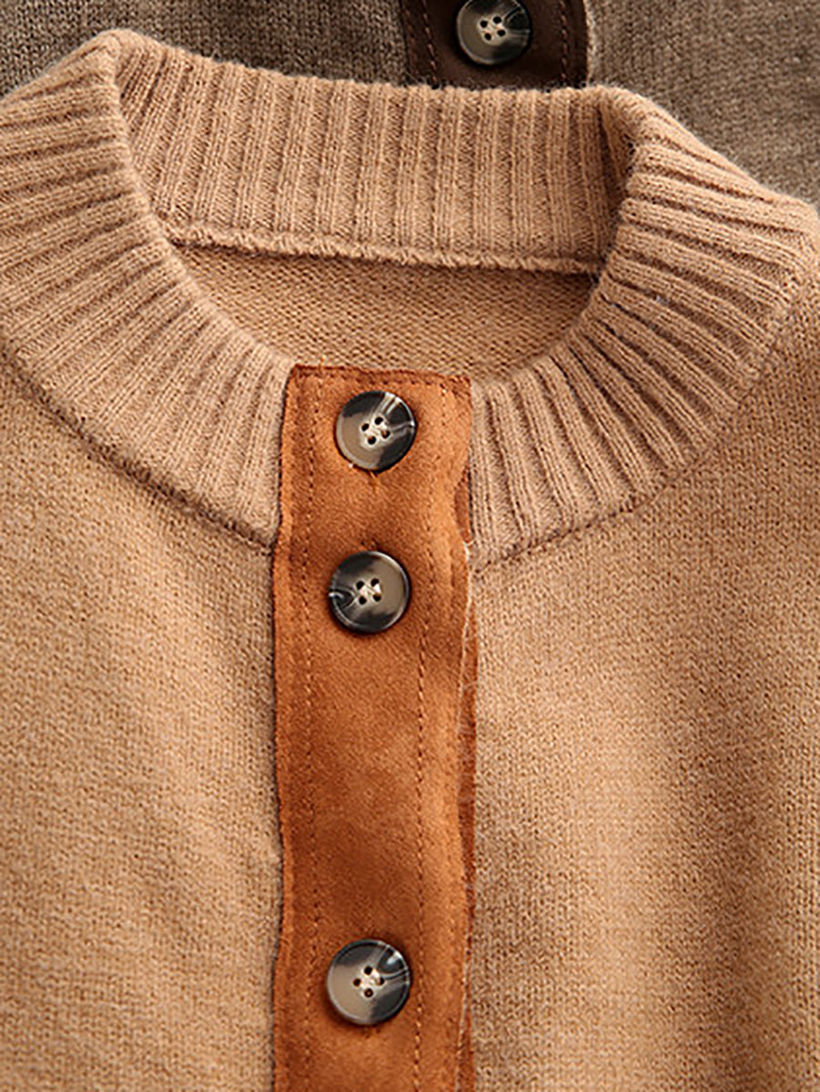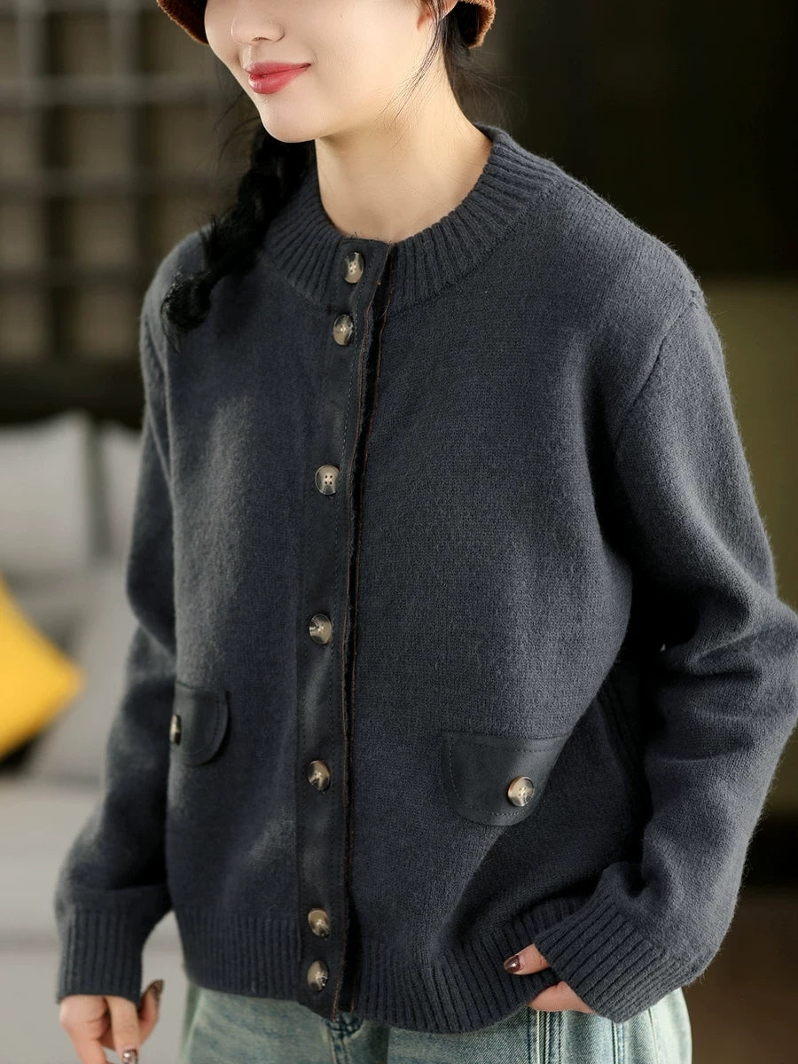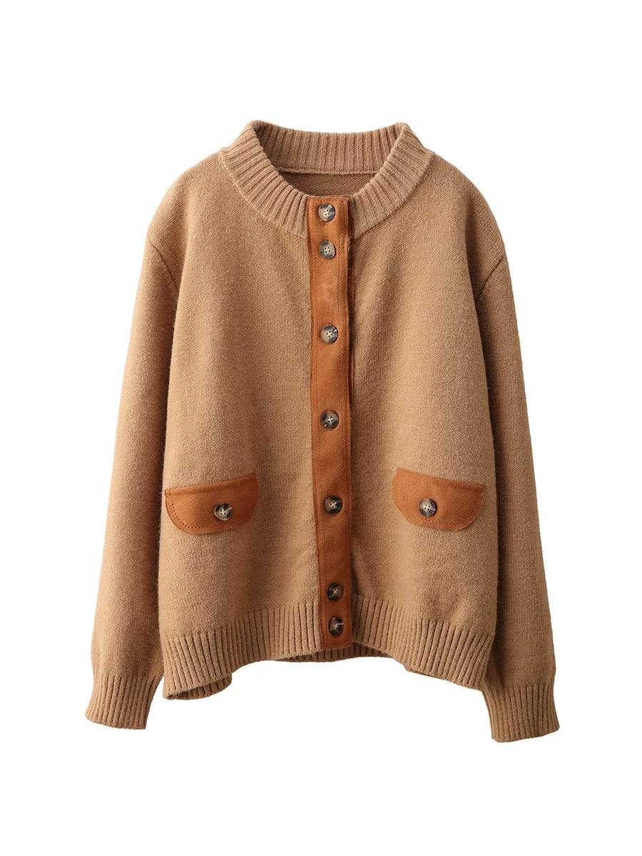Women Artsy Spring Spliced O-Neck Cardigan Sweater