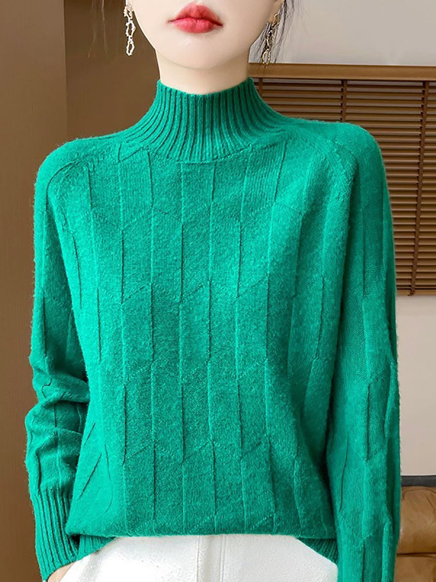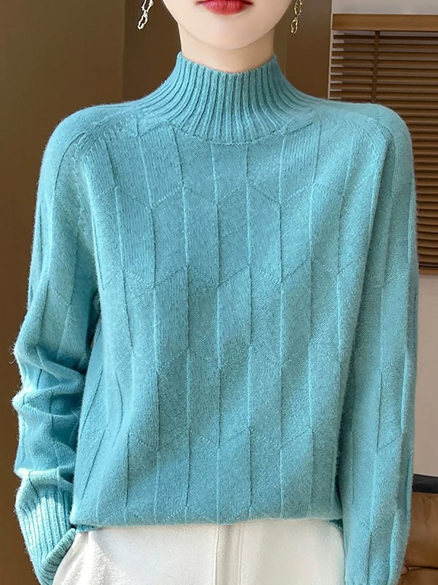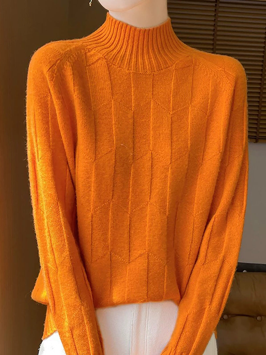 Women Artsy Winter Pure Color Half-Turtleneck Sweater