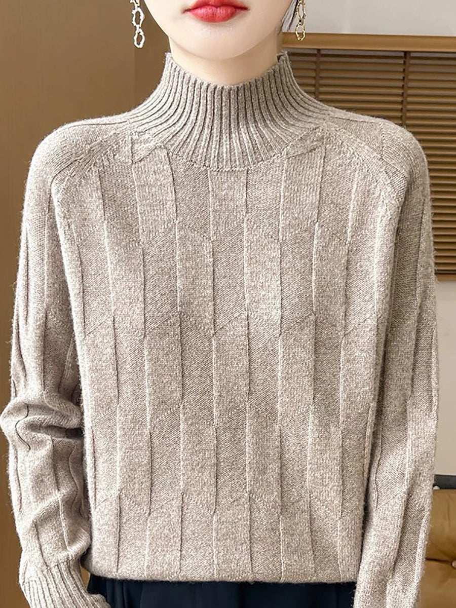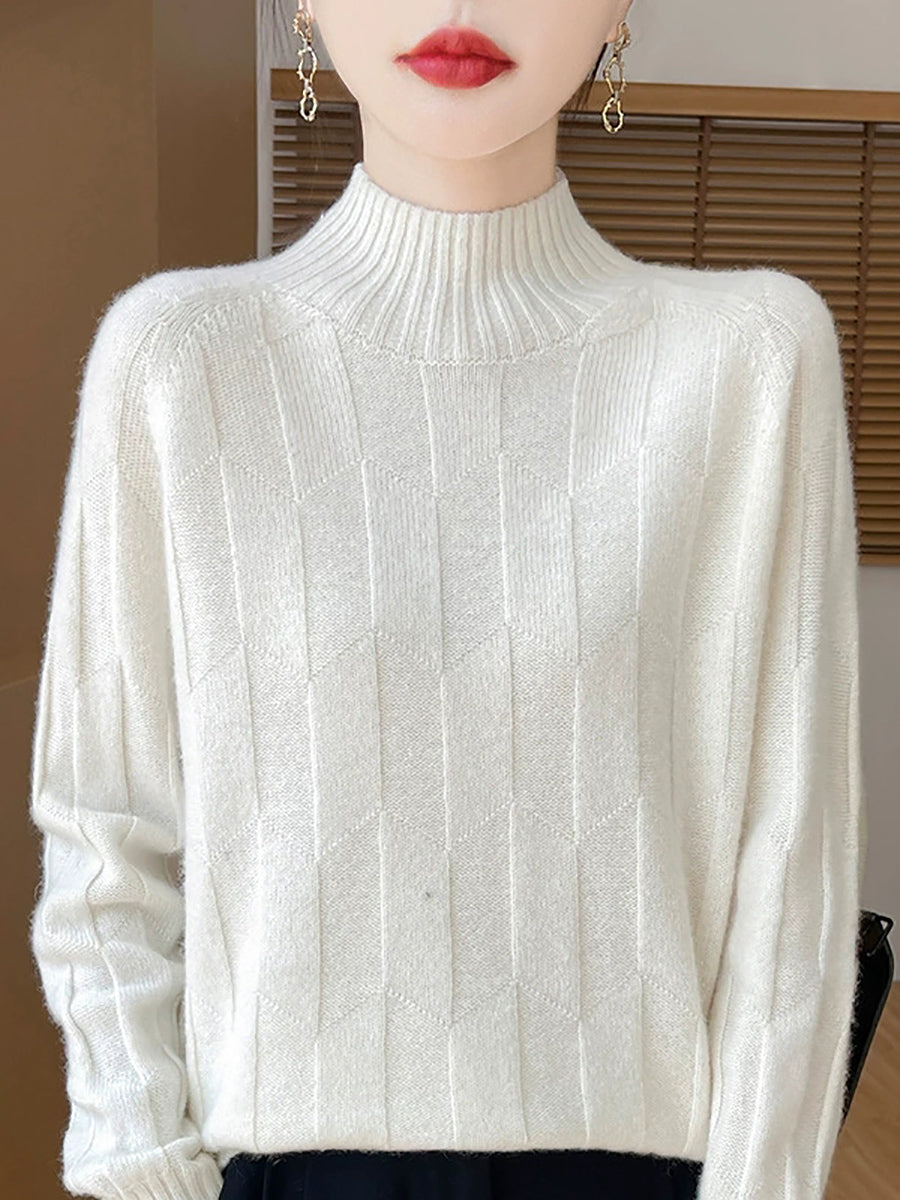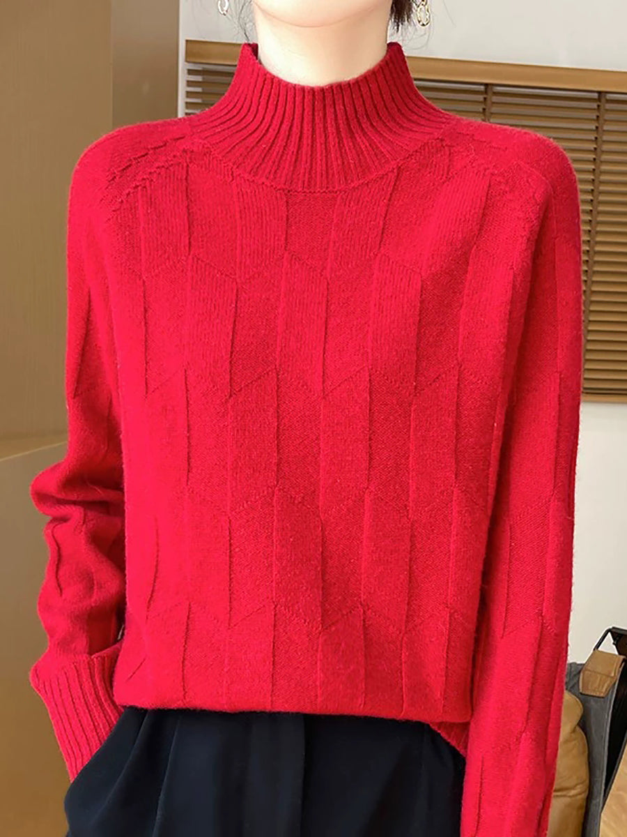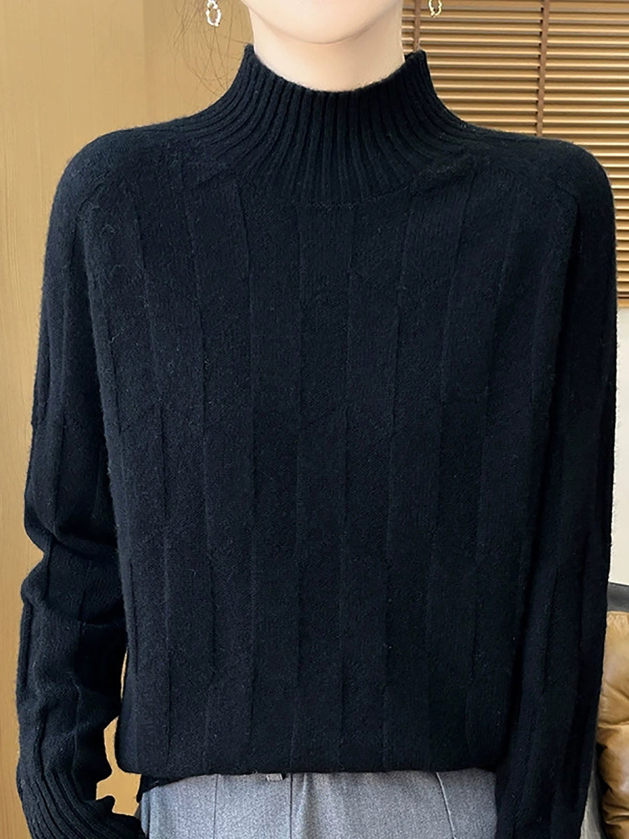Women Artsy Winter Pure Color Half-Turtleneck Sweater