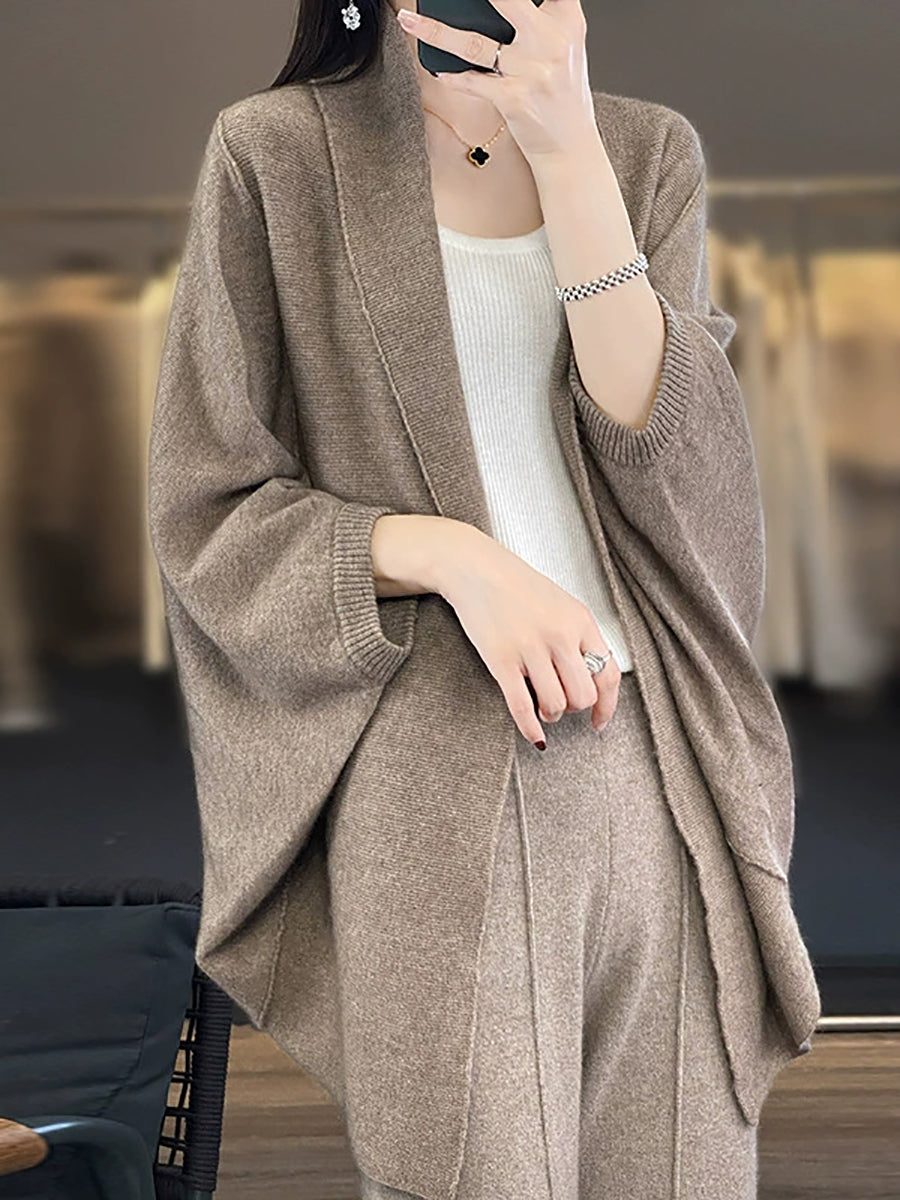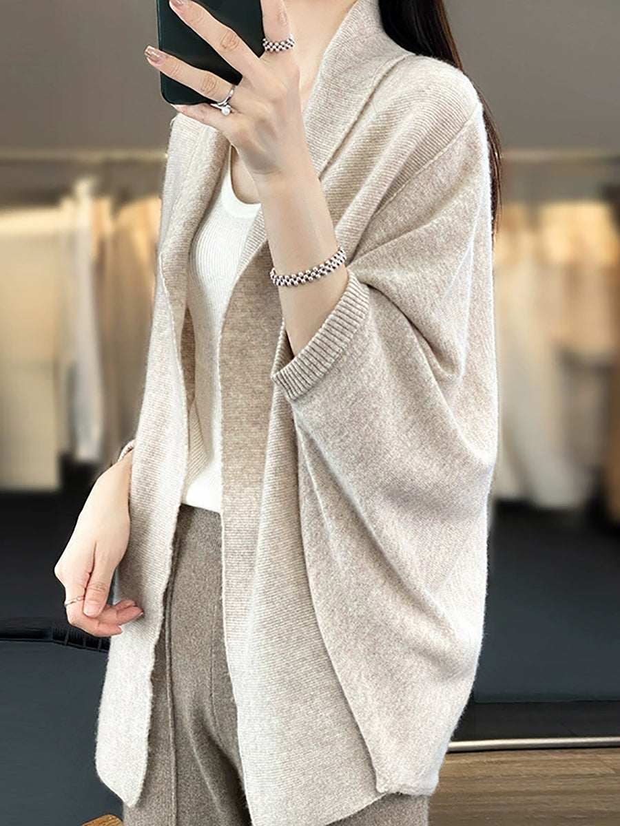 Women Autumn Artsy Pure Color Cardigan Wool Sweater