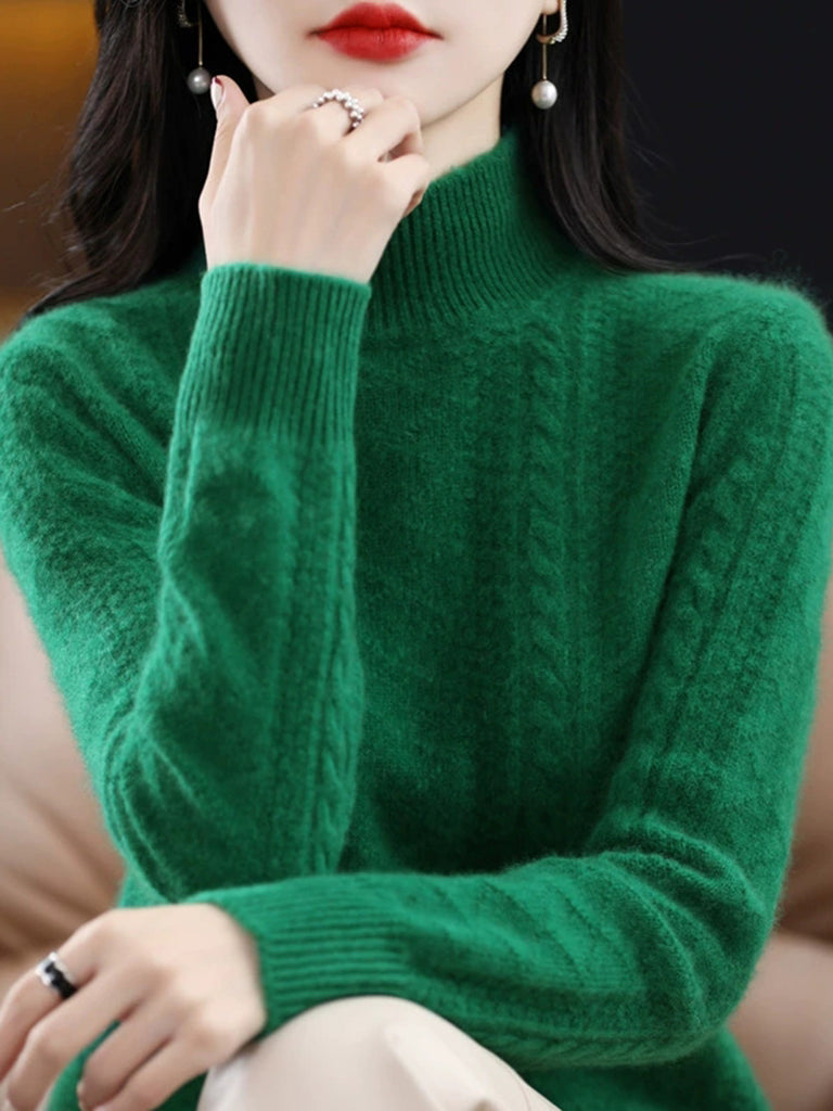 Women Autumn Pure Color Wool Half-Turtleneck Sweater