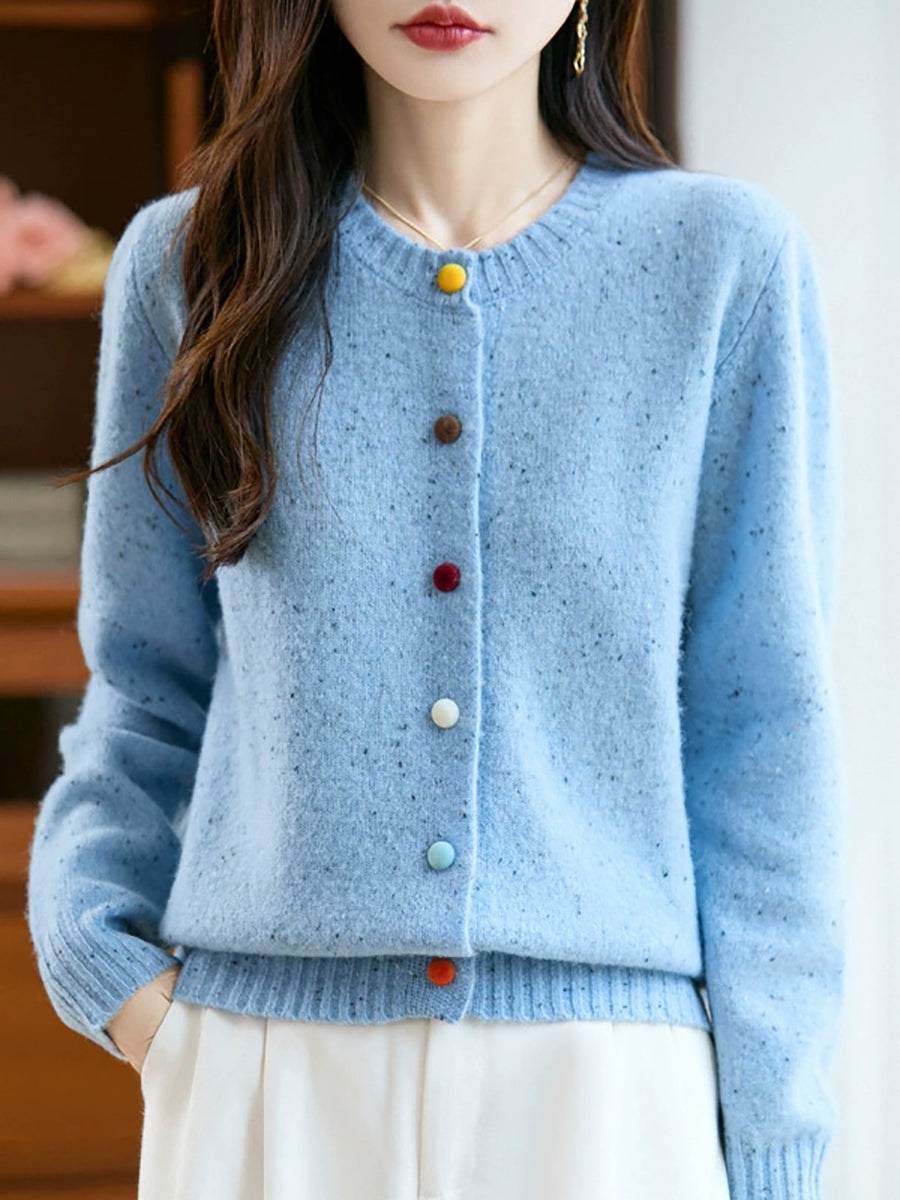 Women Autumn Pure Color Wool O-Neck Cardigan