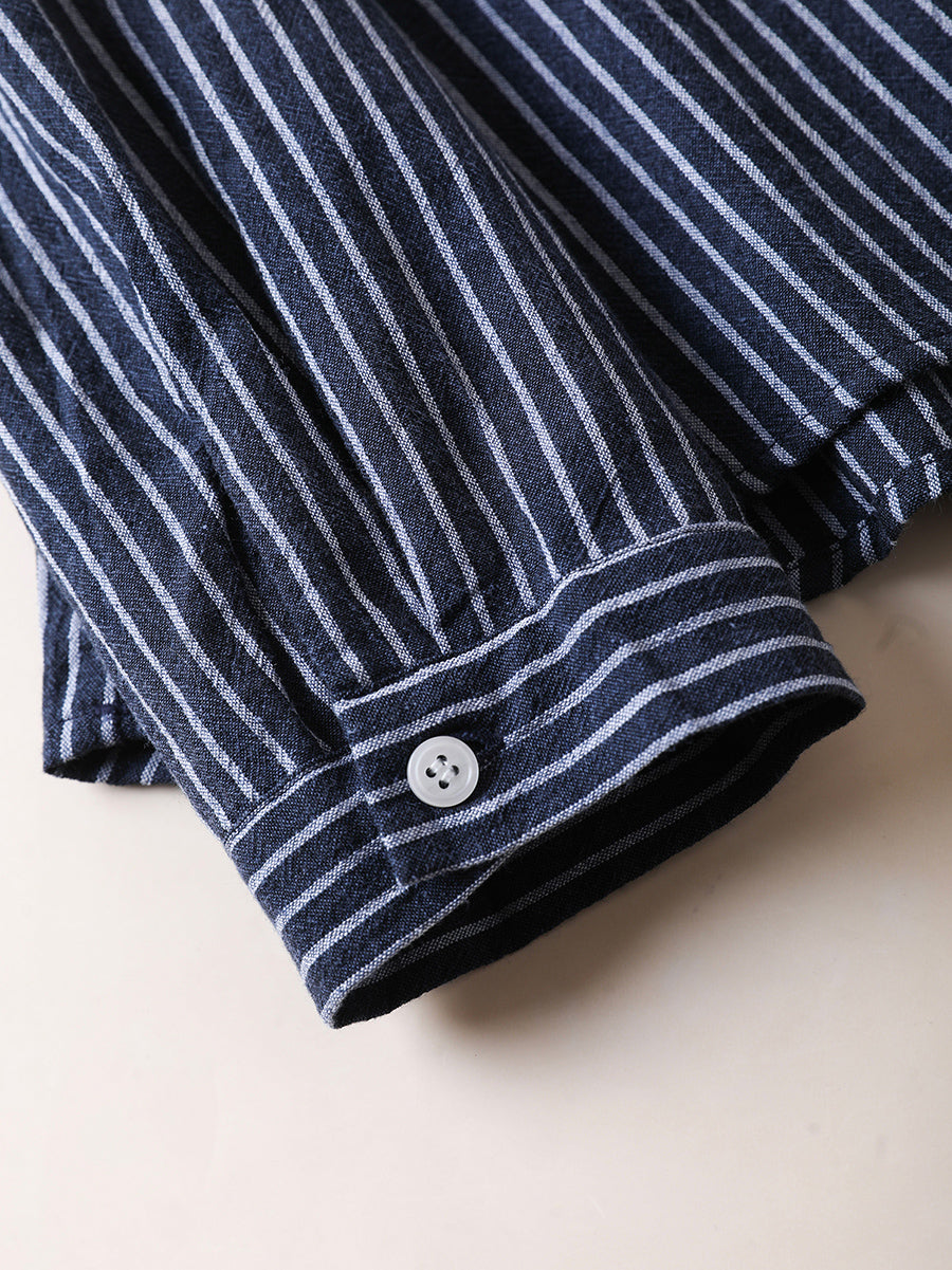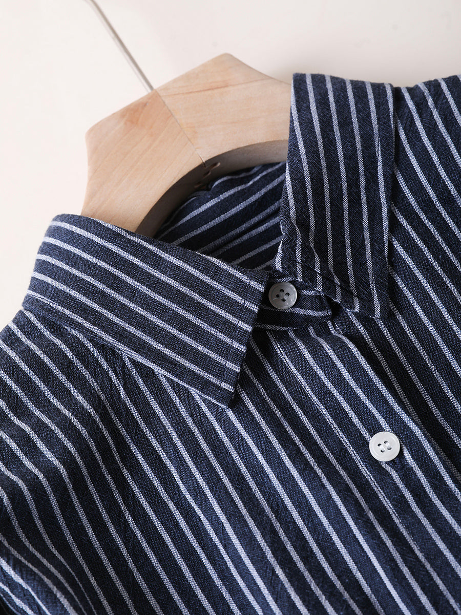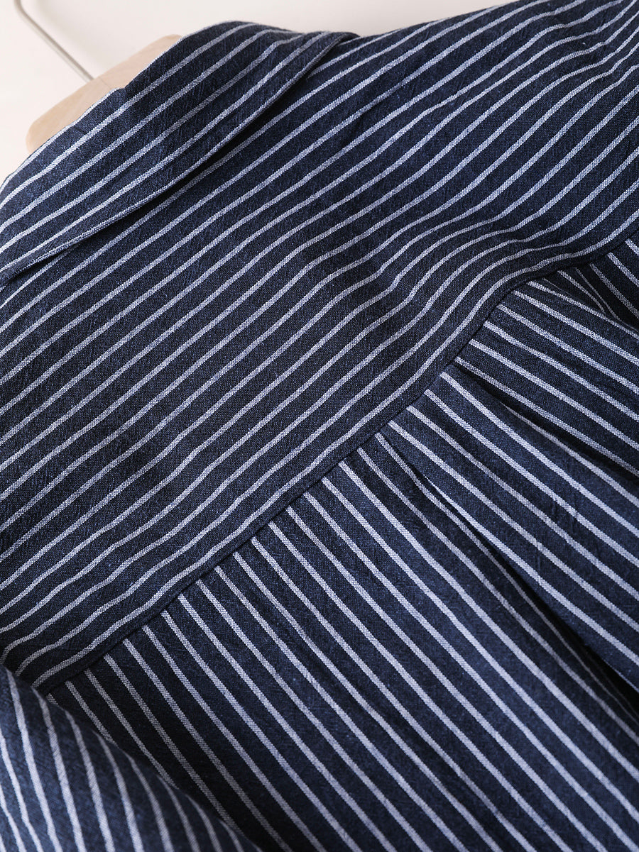 Women Autumn Stripe Turn-down Collar 100%Cotton Shirt