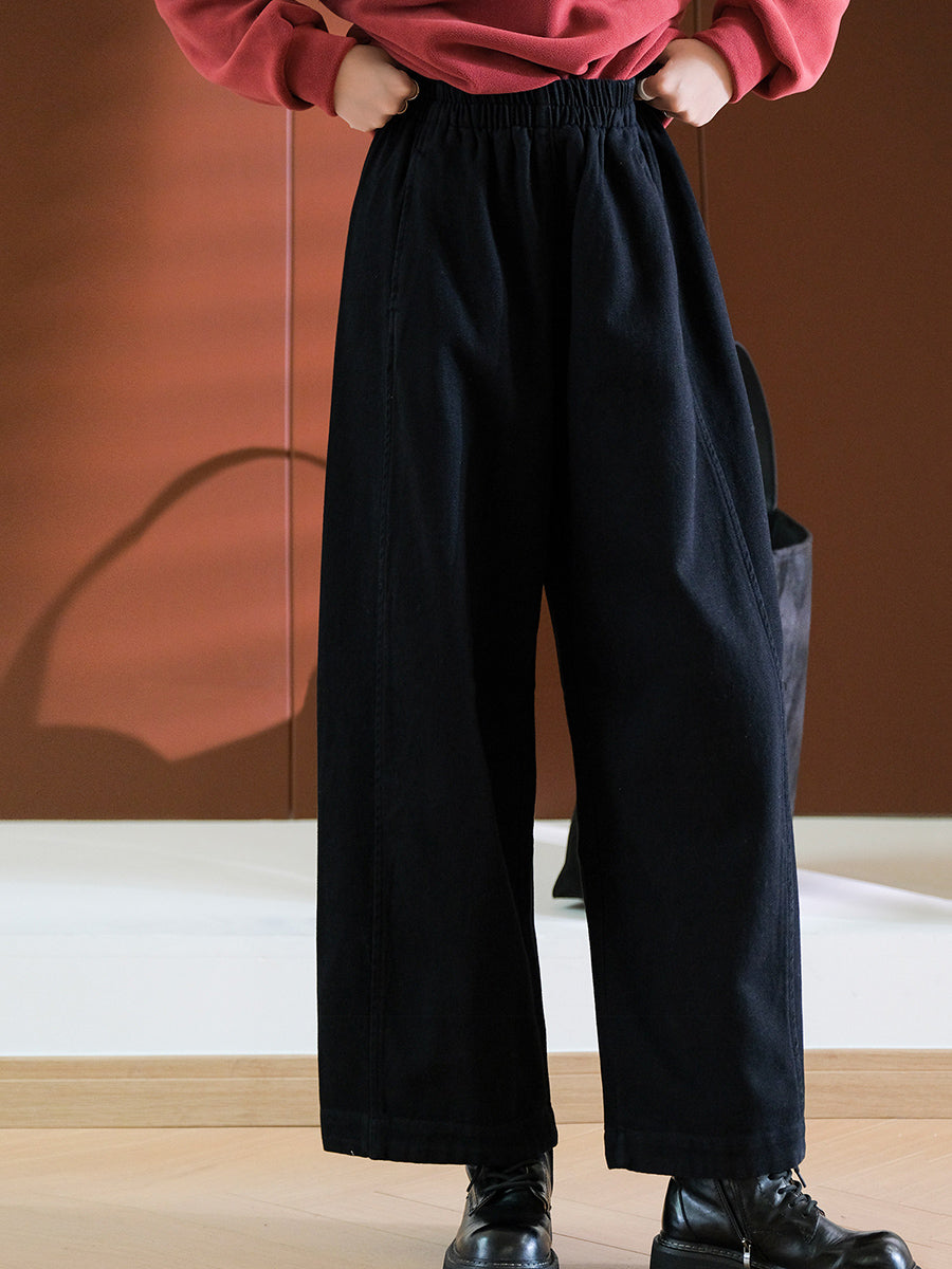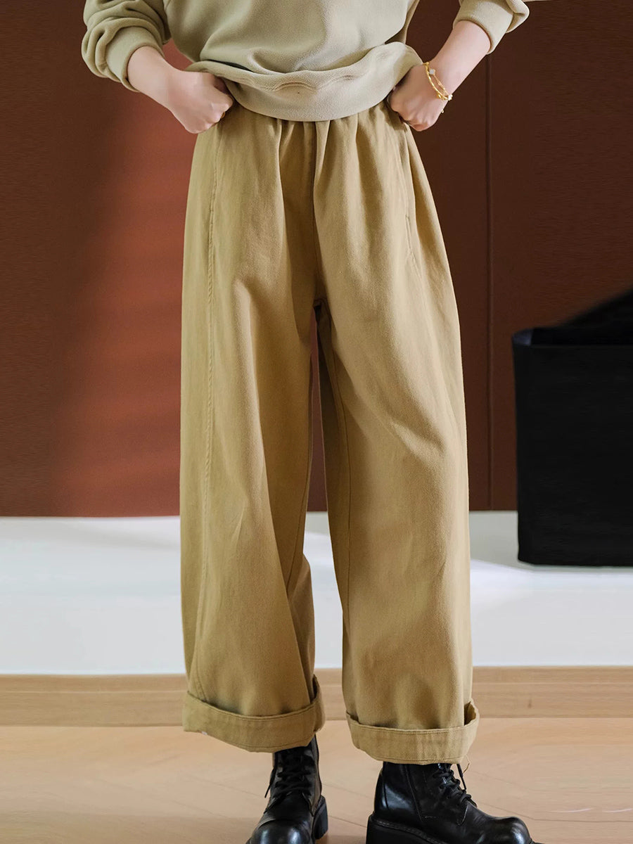 Women Spring Pure Color 100%Cotton Wide-leg Pants