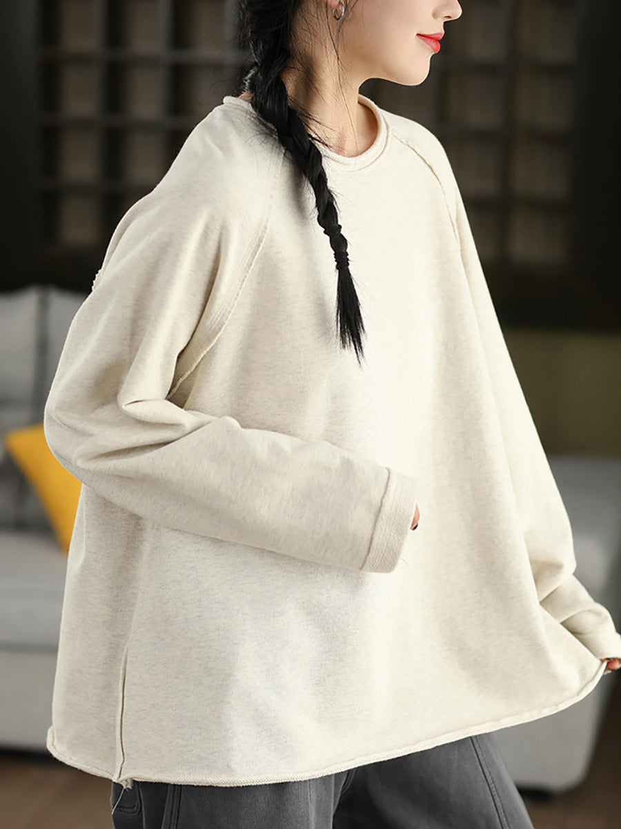 Women Casual Spring Pure Color 100%Cotton O-Neck Blouse