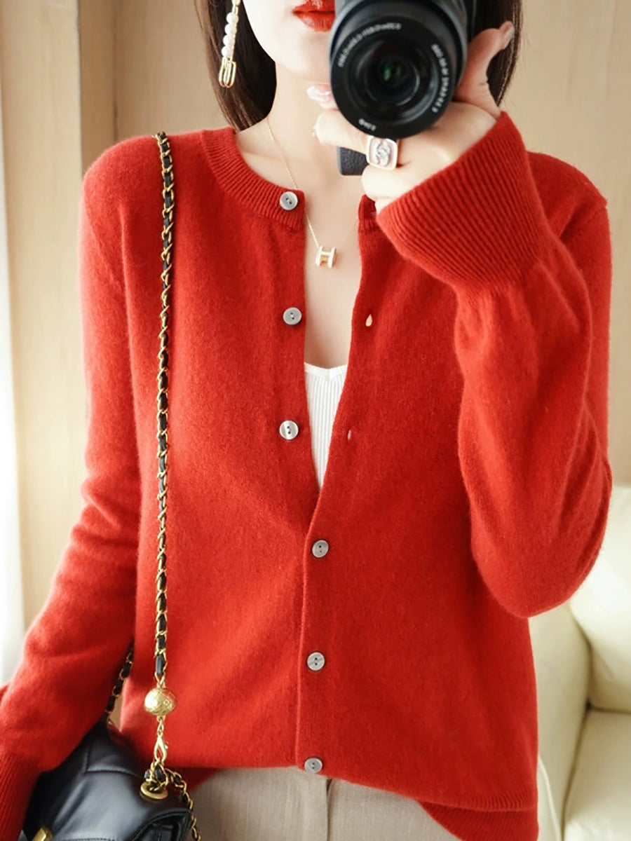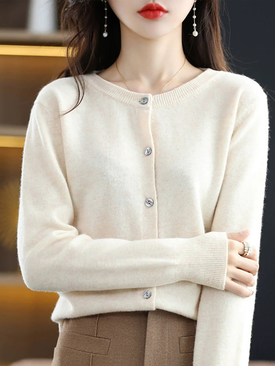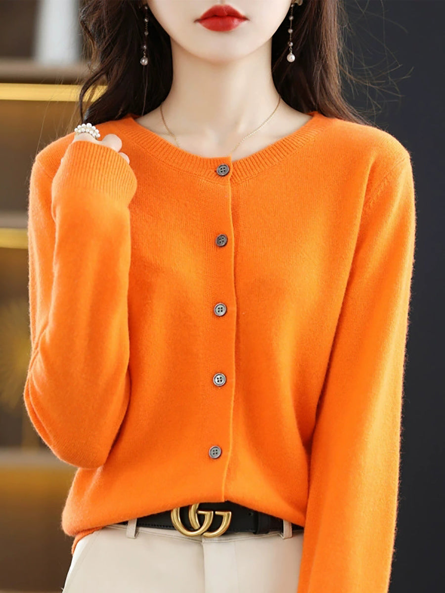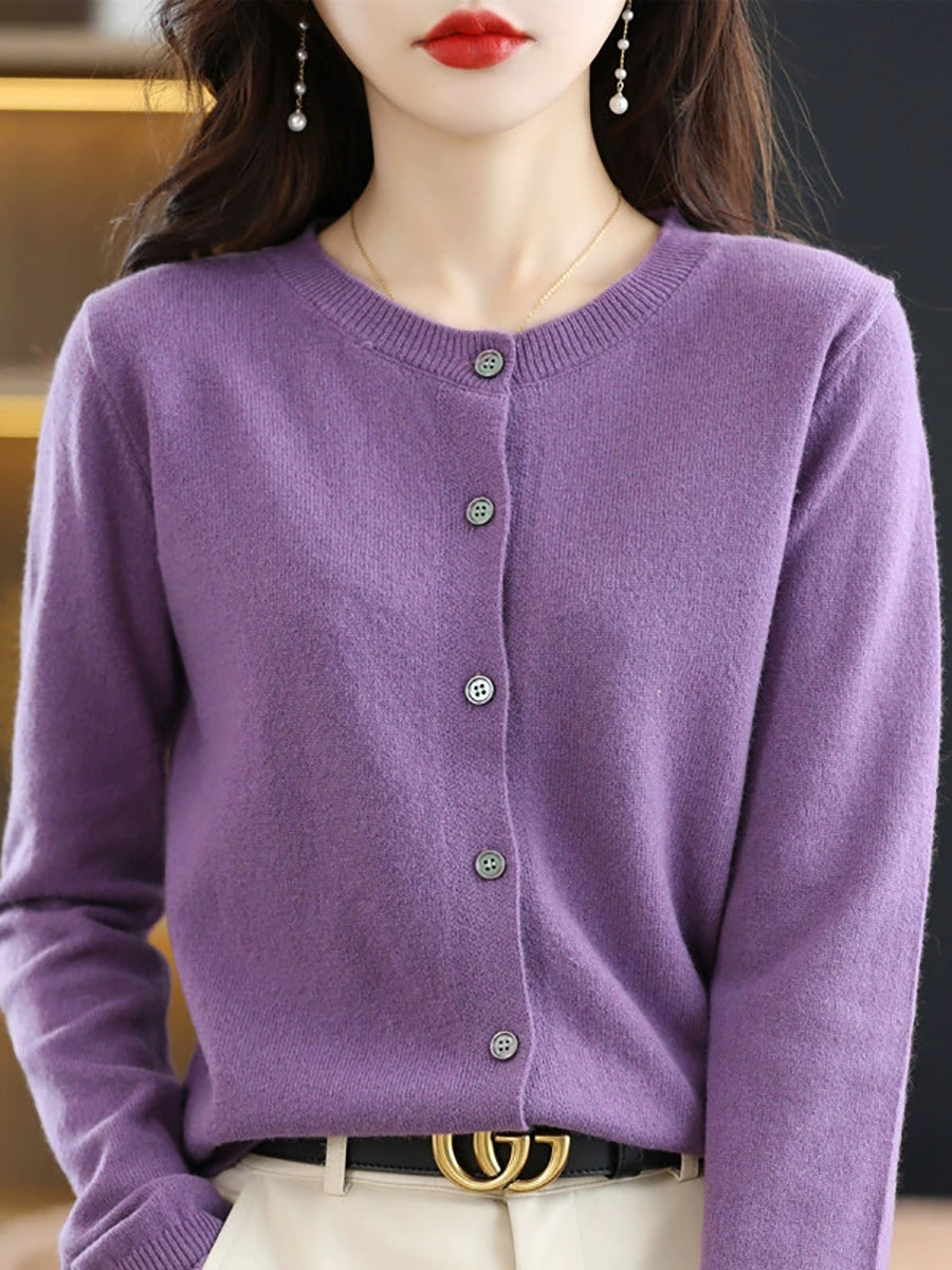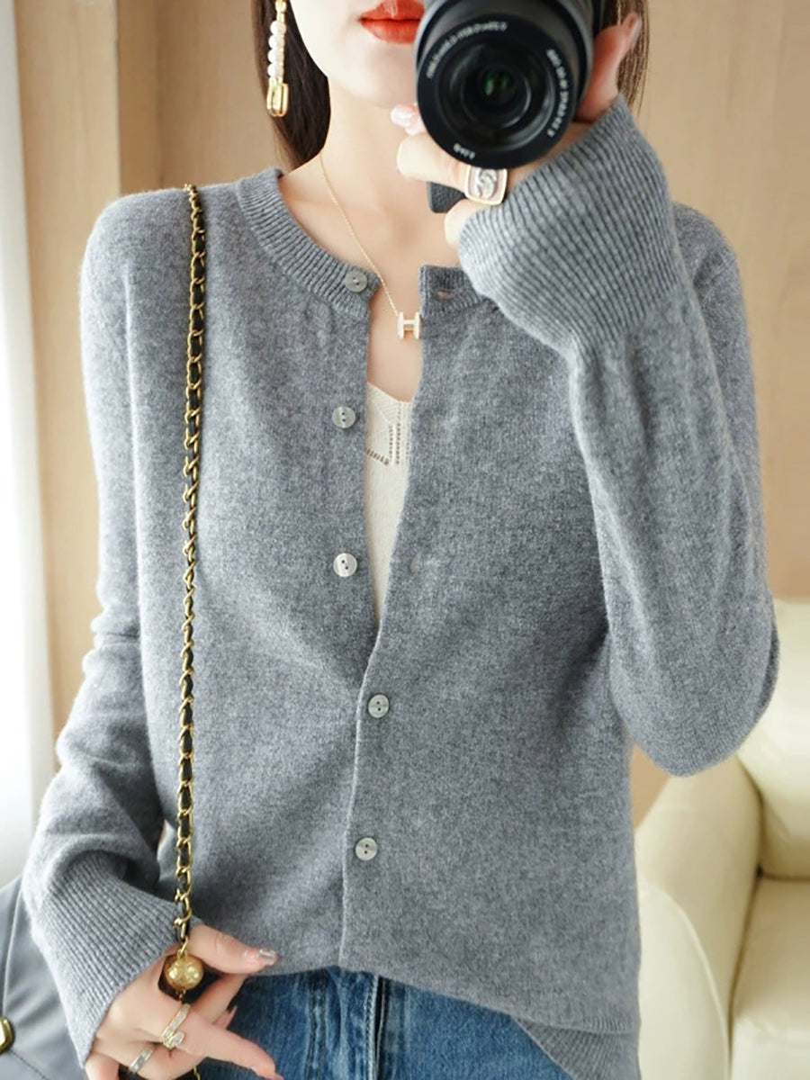 Women Casual Spring Pure Color O-Neck Sweater