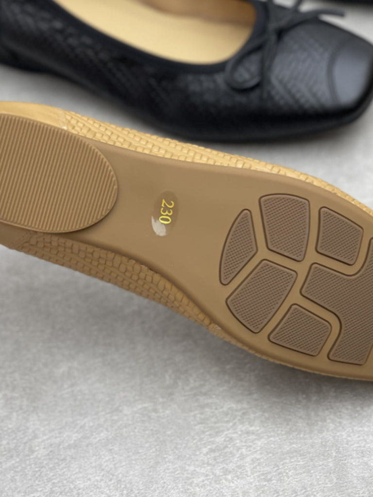 Women Elegant Leather Bowknot Square-Toe Low Heel Shoes
