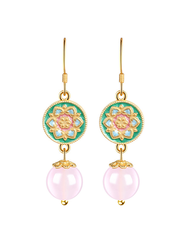 Women Ethnic Cloisonne Flower Jade Earrings