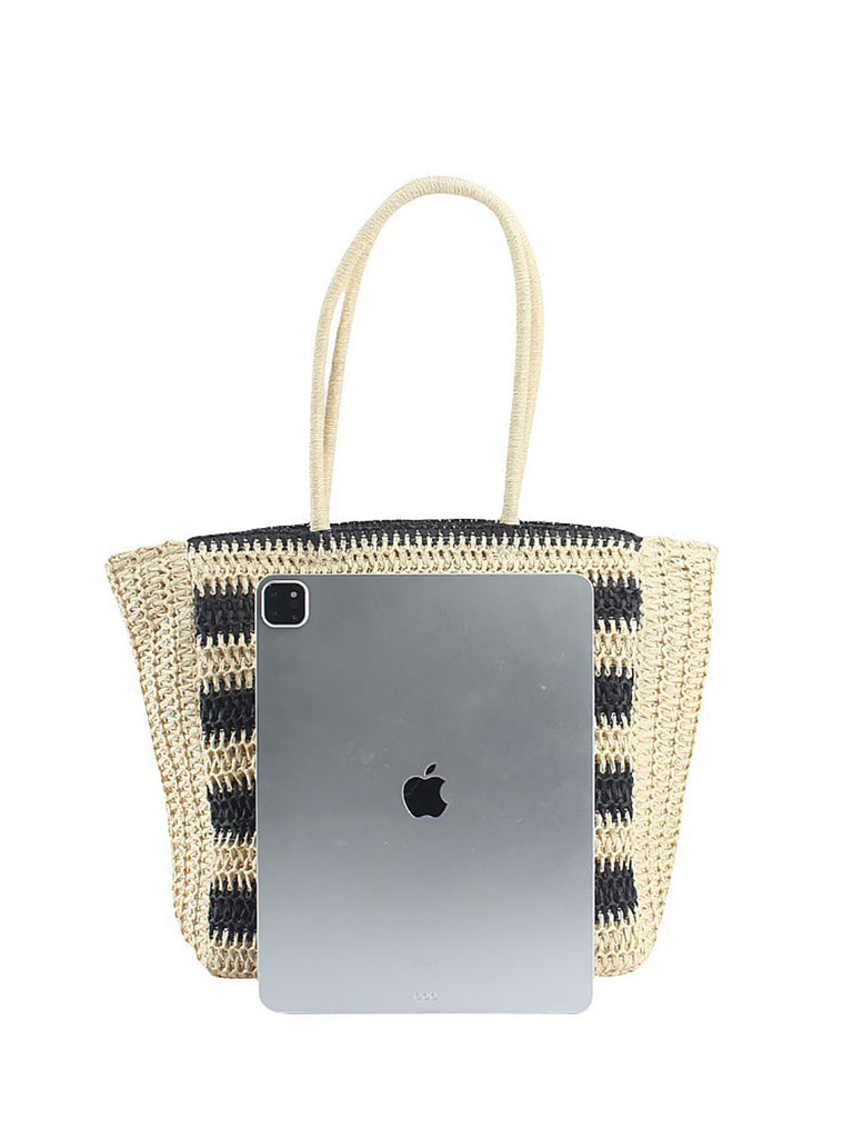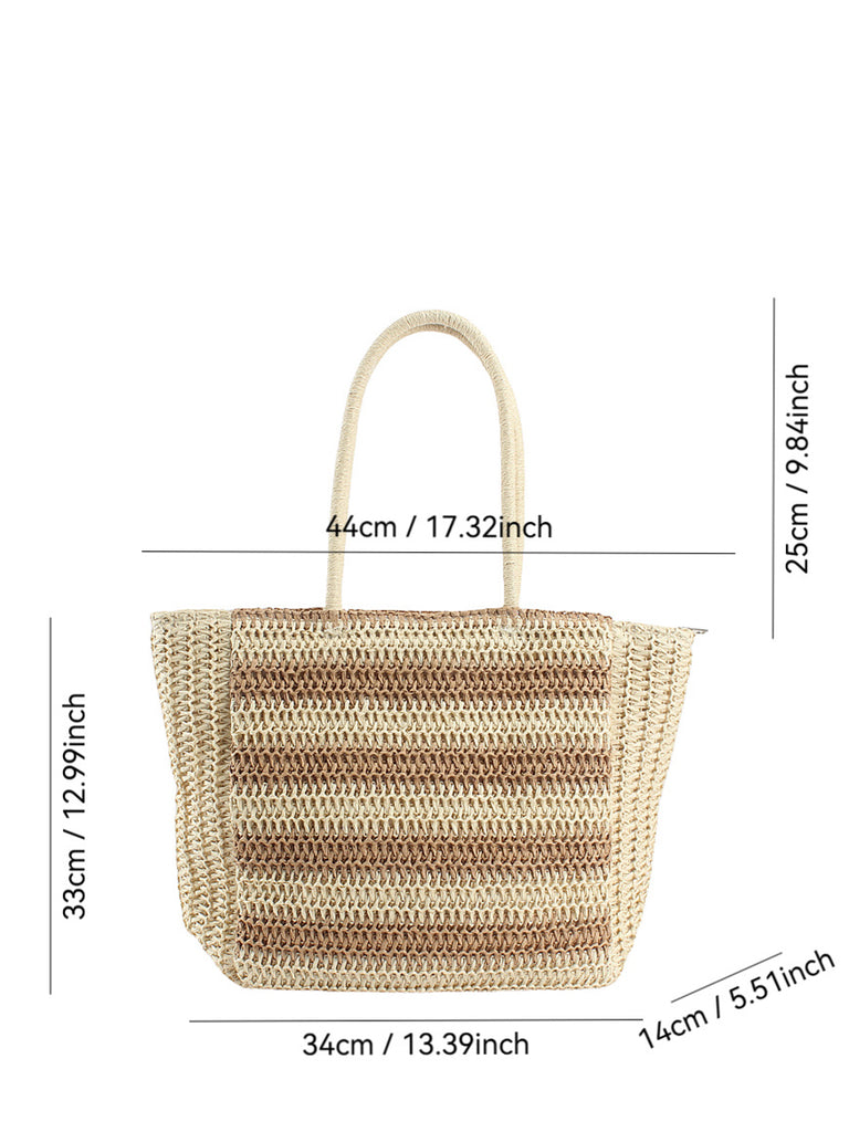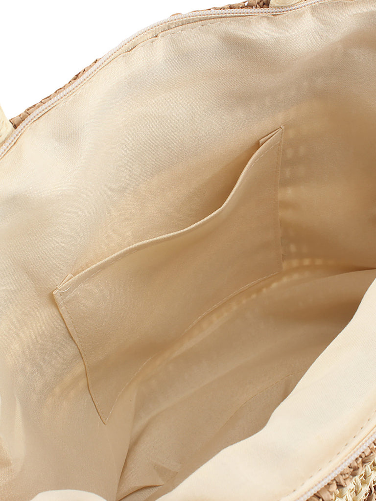 Women Fashion Colorblock Straw Weave Shoulder Bag