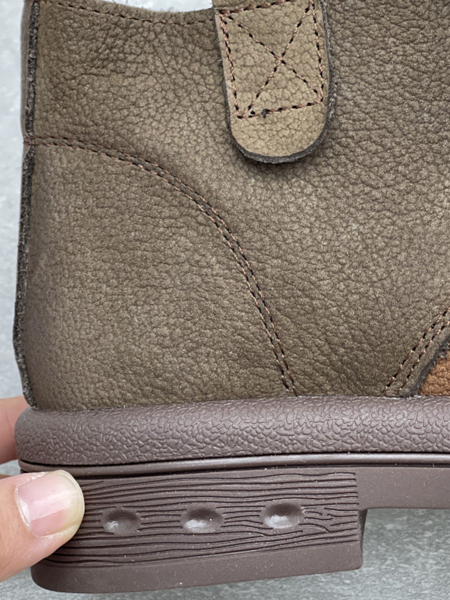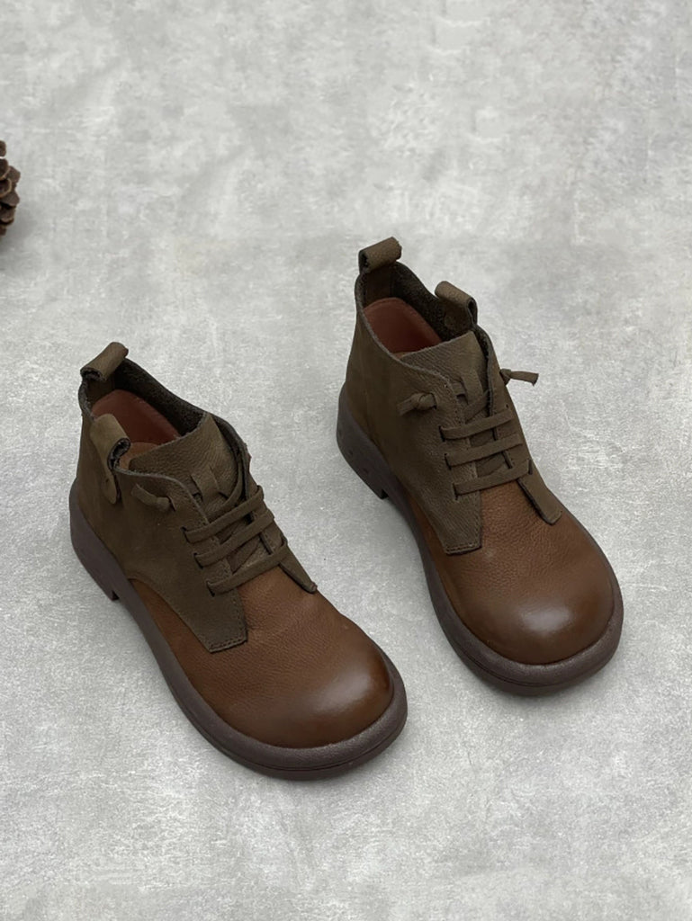 Women Retro Colorblock Leather Low Heel Boots