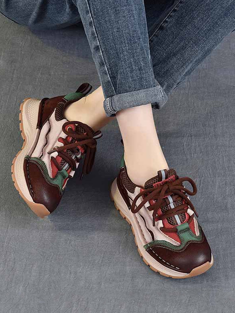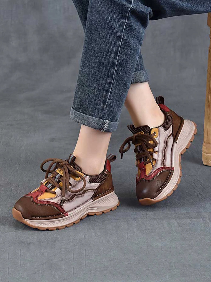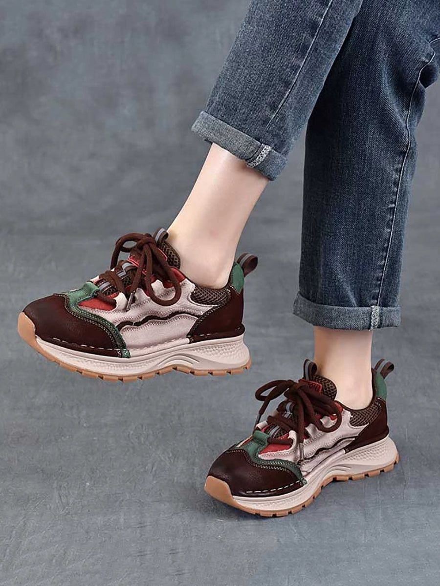 Women Retro Colorblock Leather Sport Platform Shoes