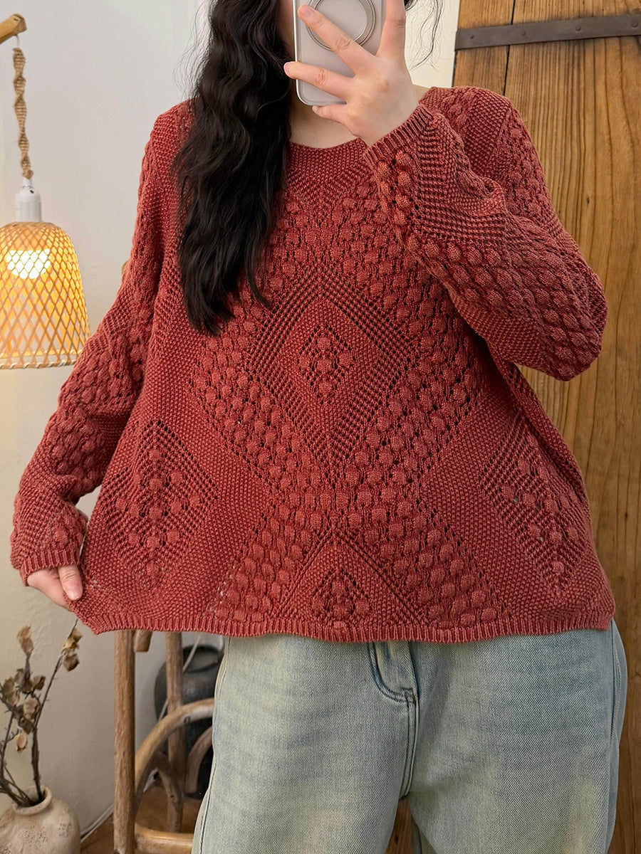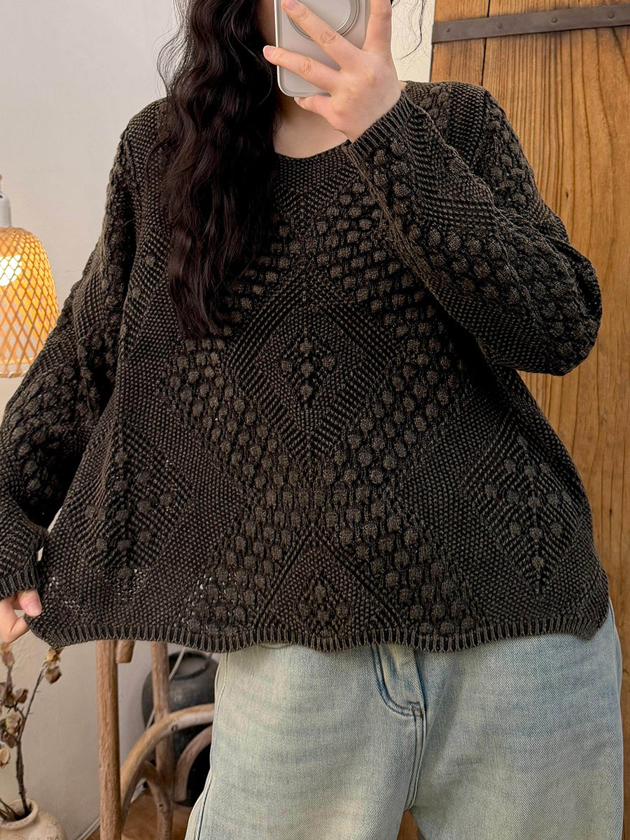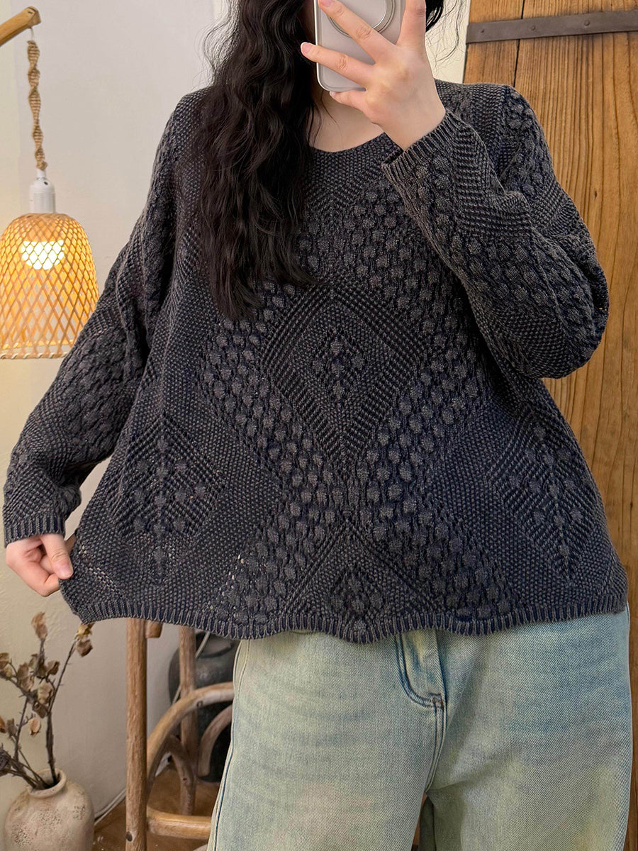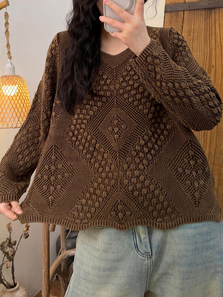 Women Retro Spring Cable Knitted V-Neck Sweater
