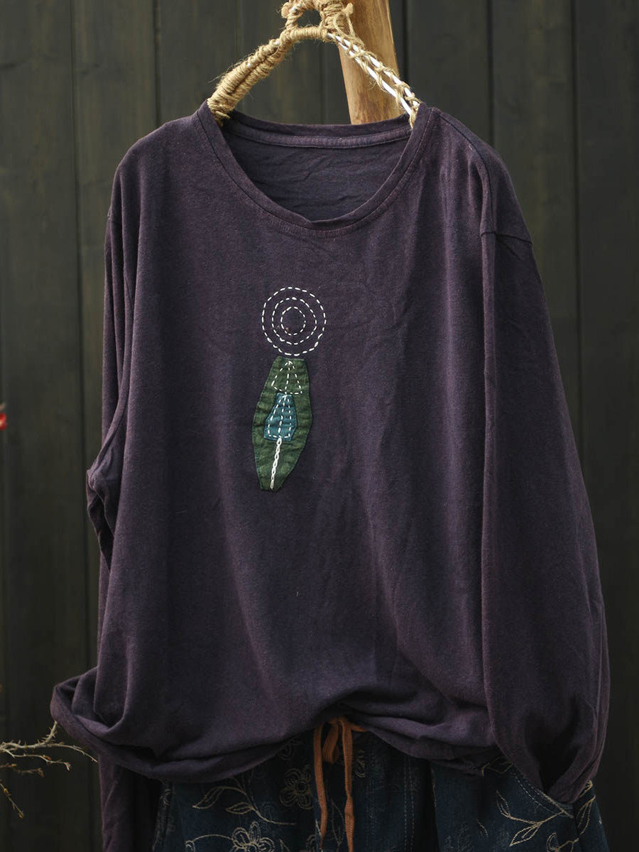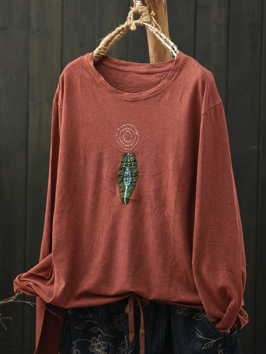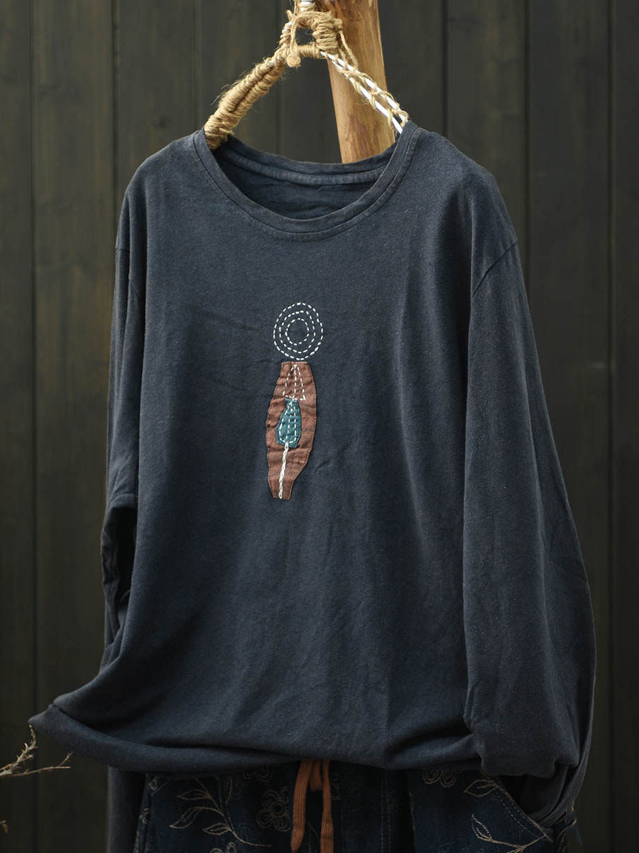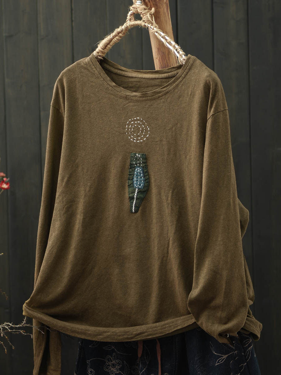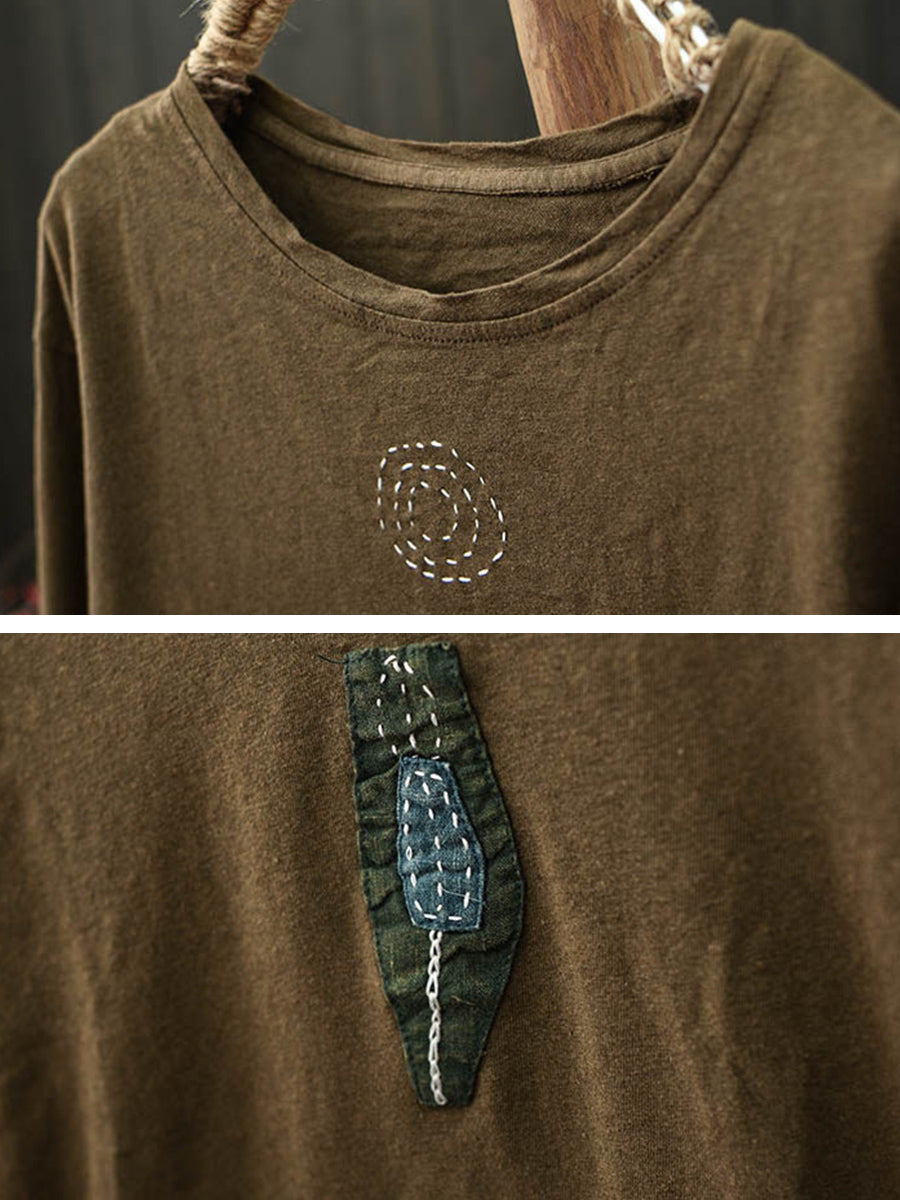 Women Retro Spring Patchwork Cotton O-Neck Blouse