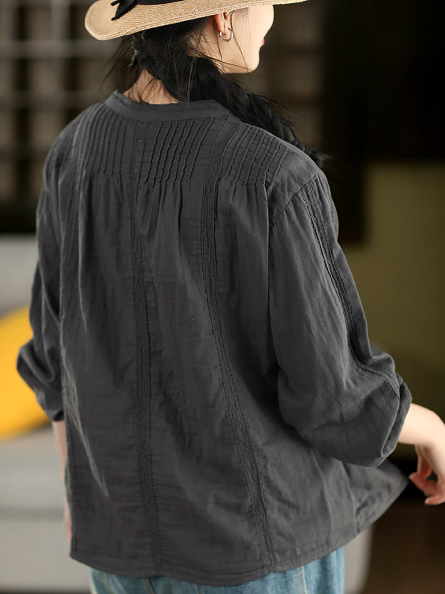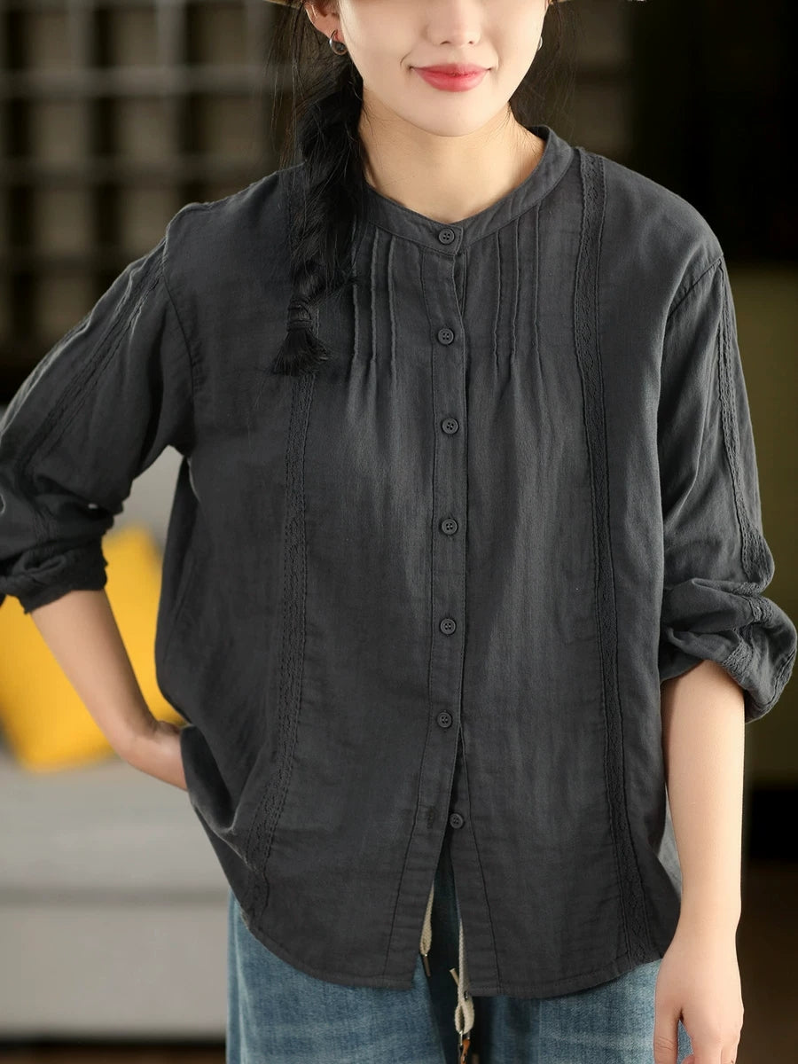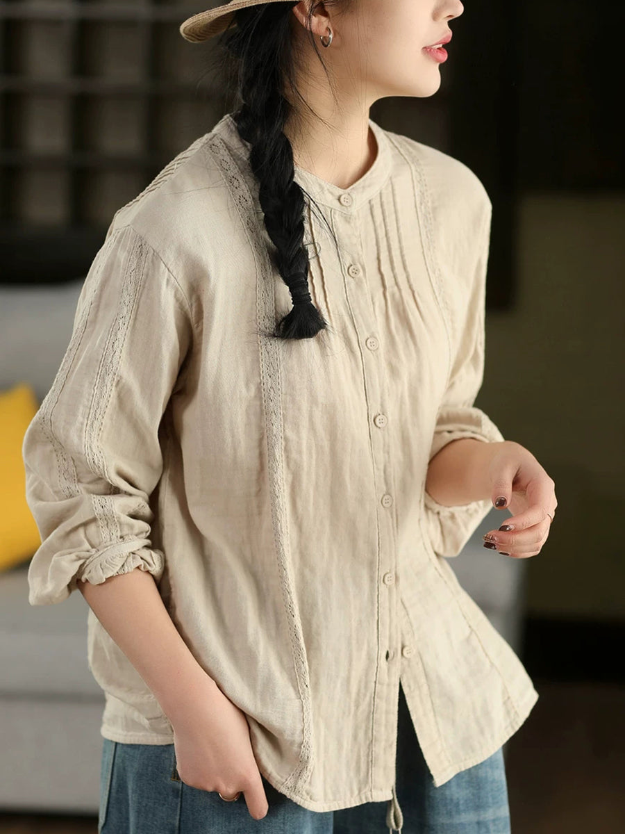 Women Spring Artsy Lace Spliced 100%Cotton Shirt