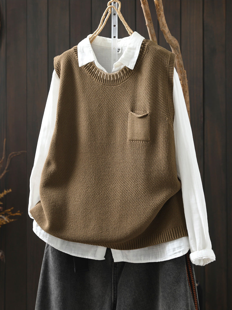 Women Spring Artsy O-Neck Colorblock Knitted Vest