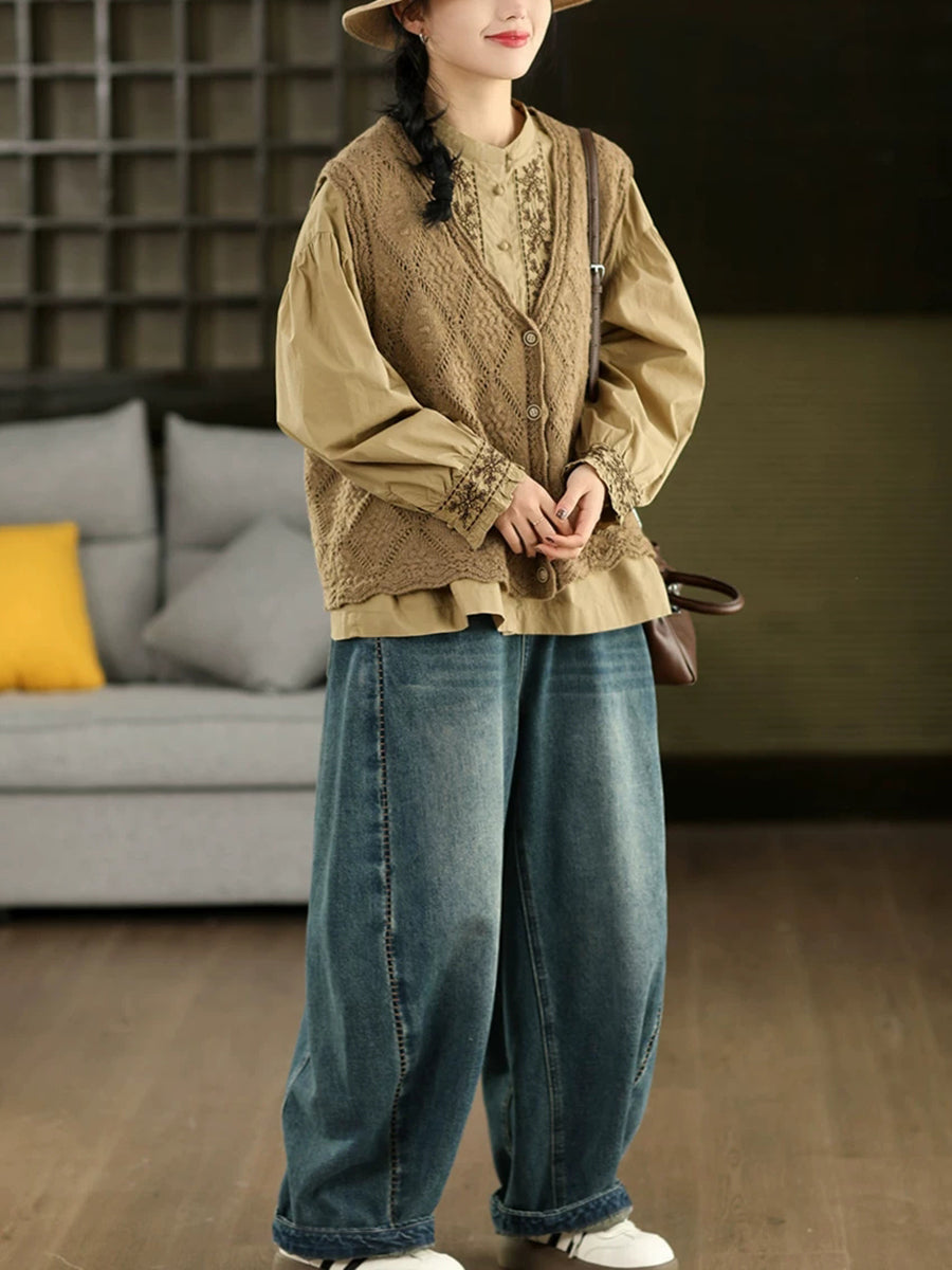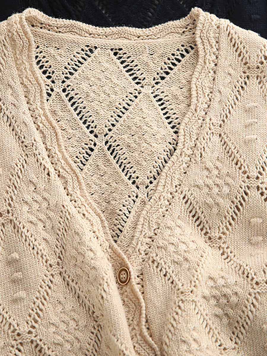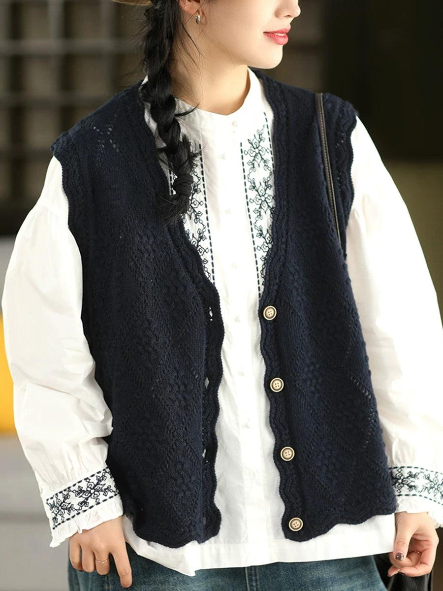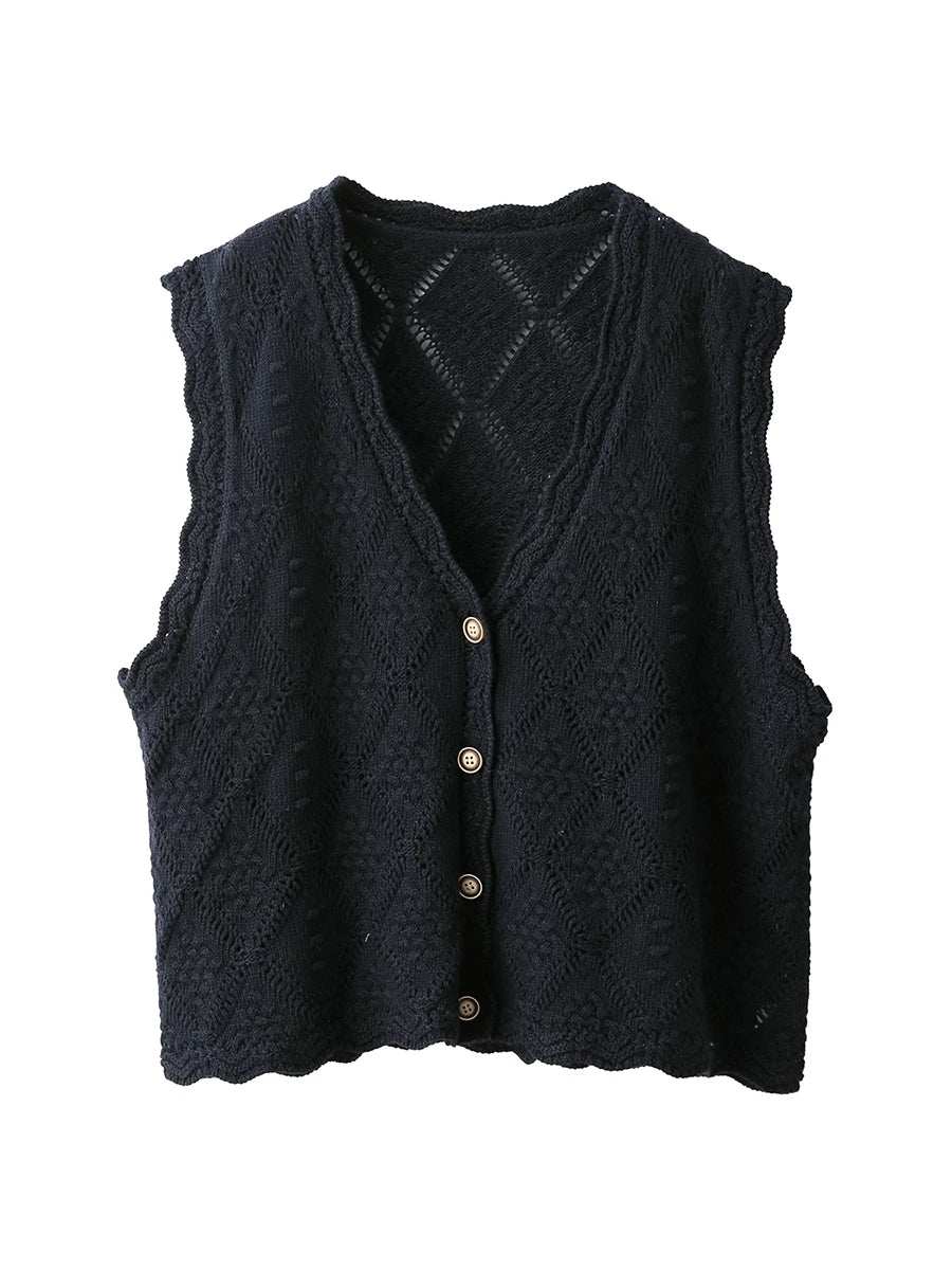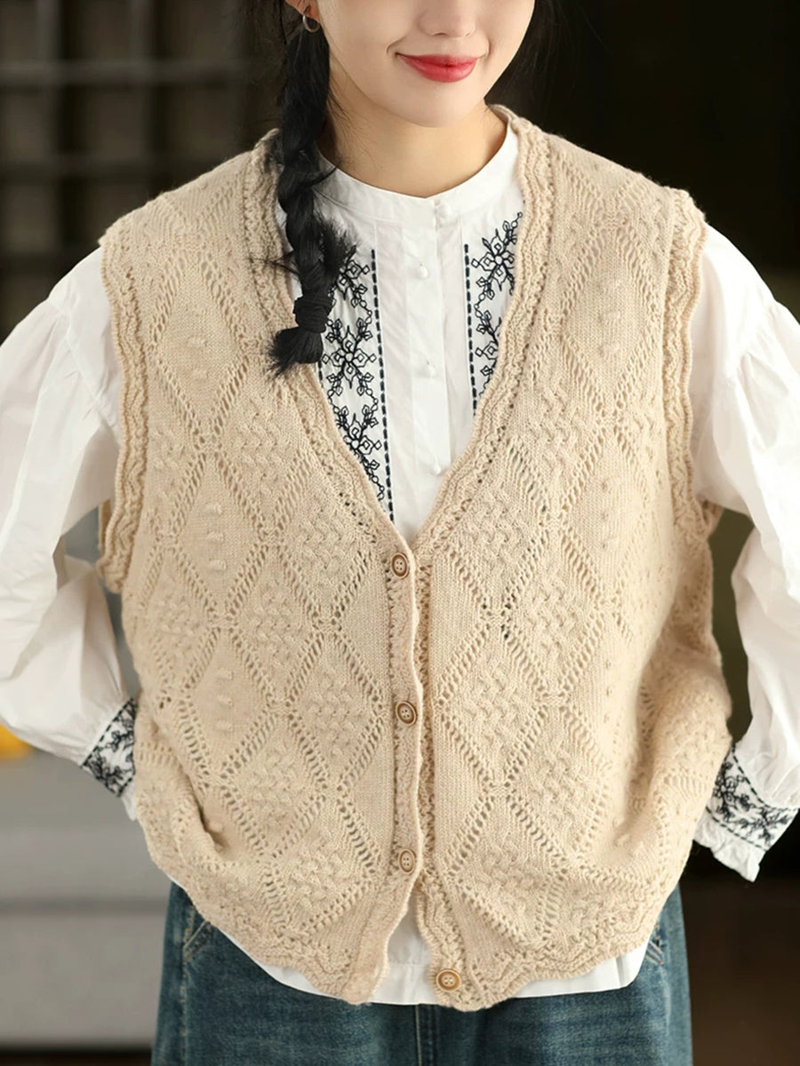 Women Spring Artsy Rhomboids Knitted V-Neck Vest