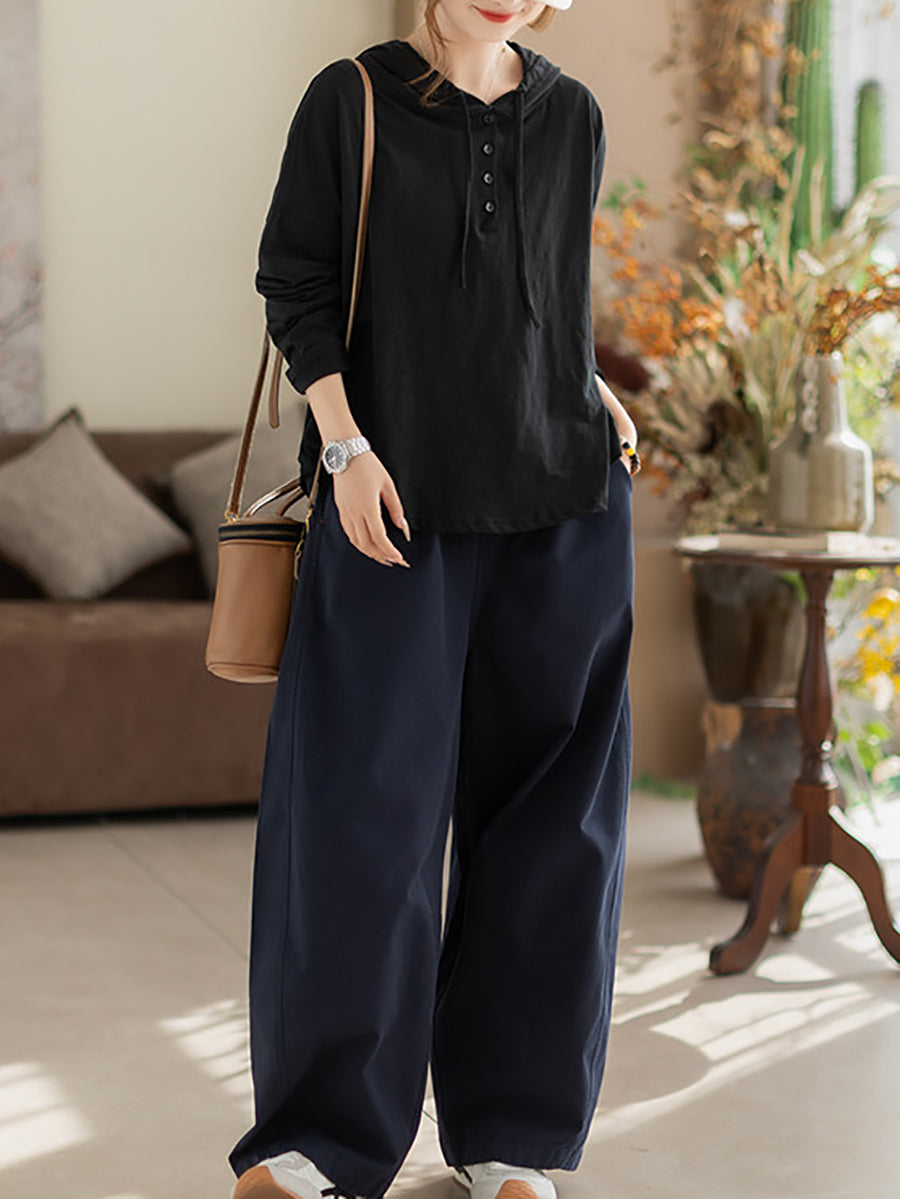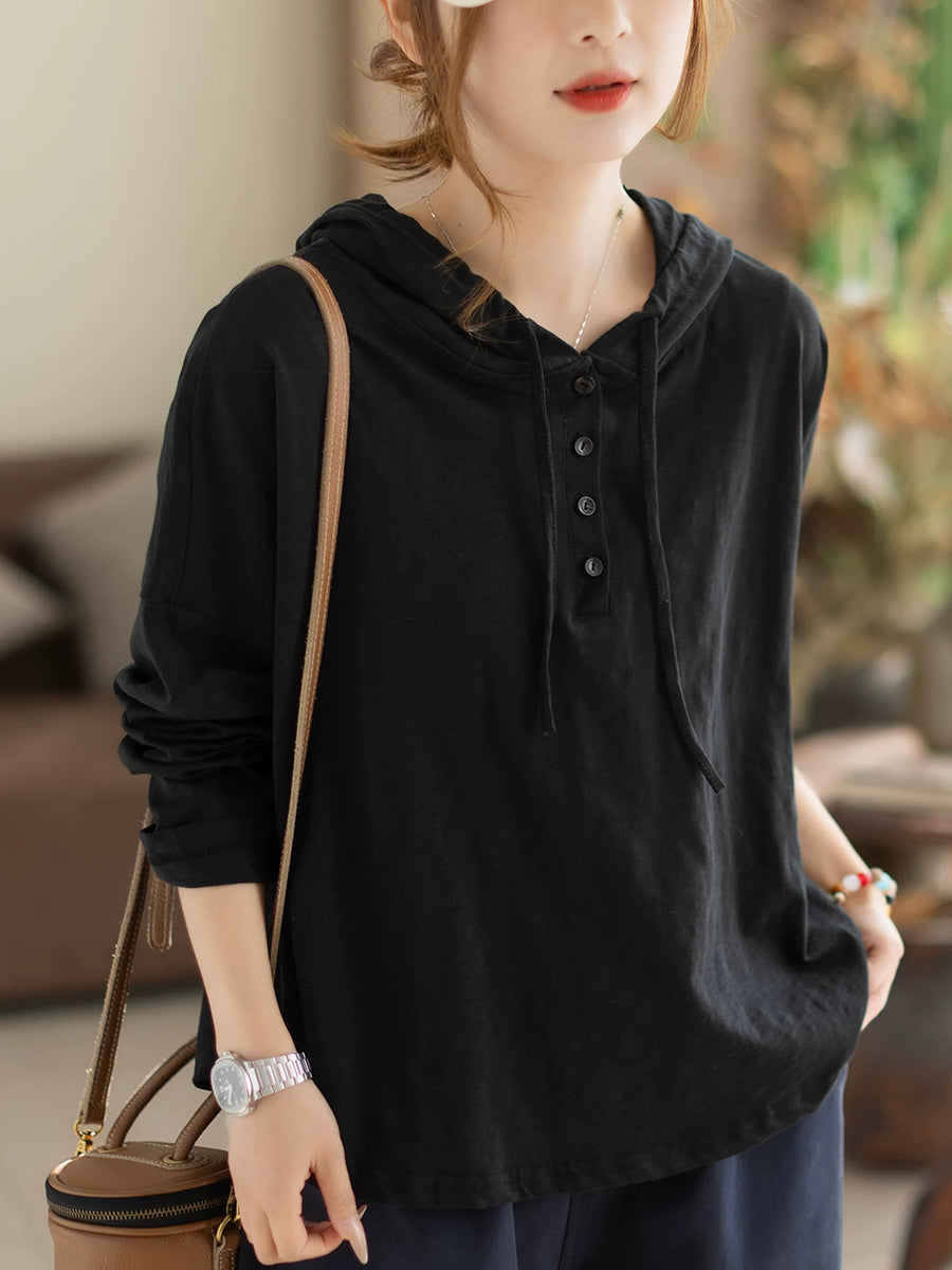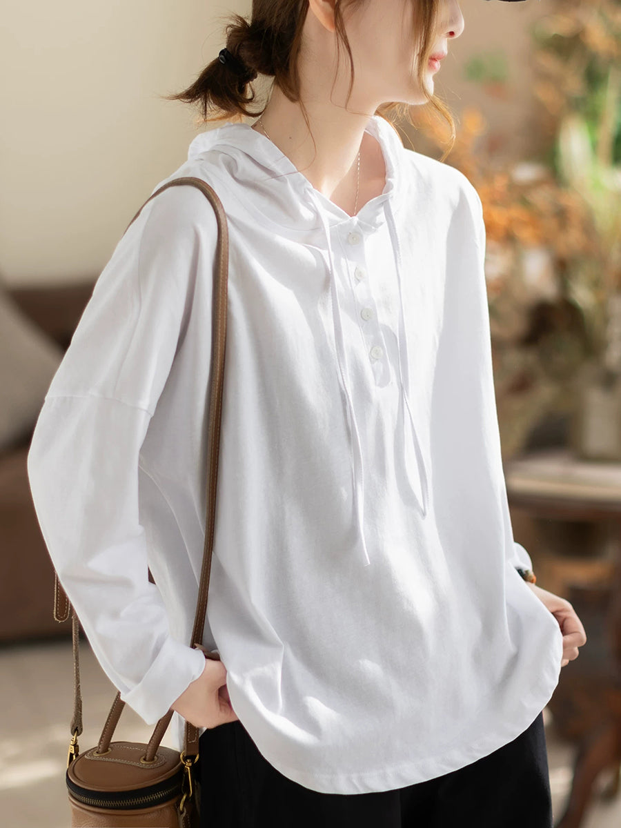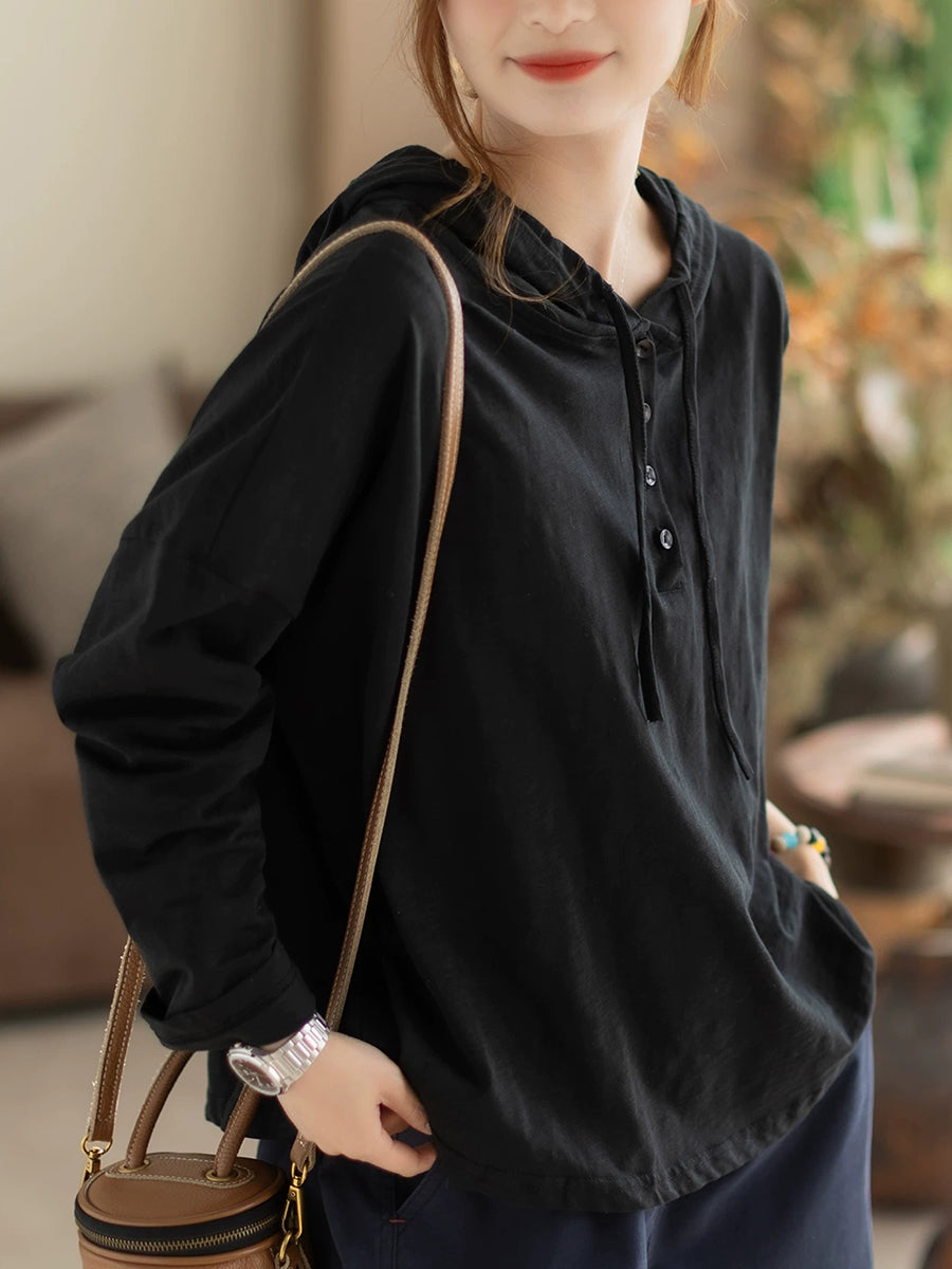 Women Spring Casual Pure Color Cotton Hoodie