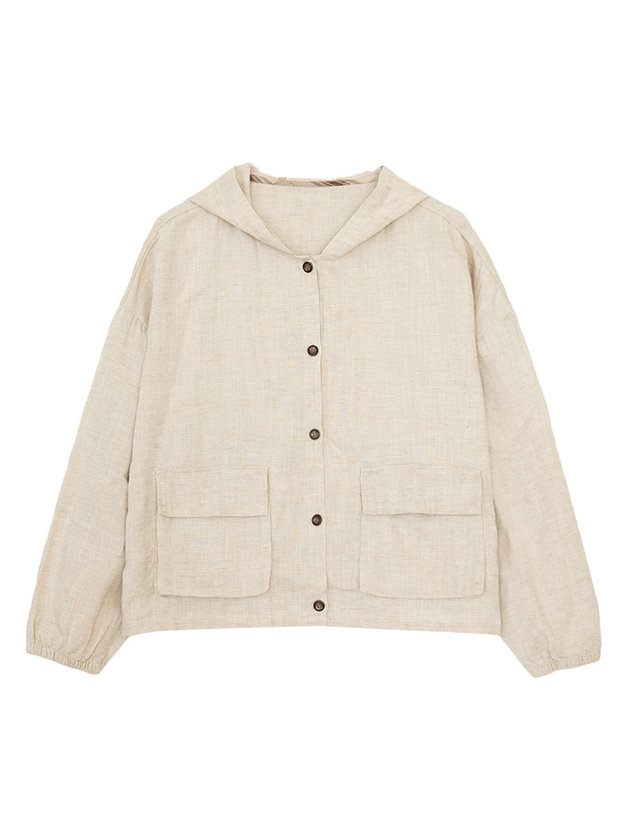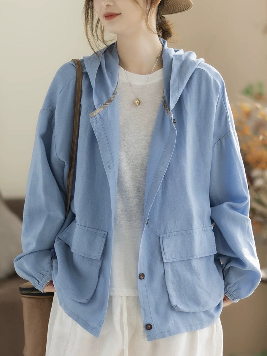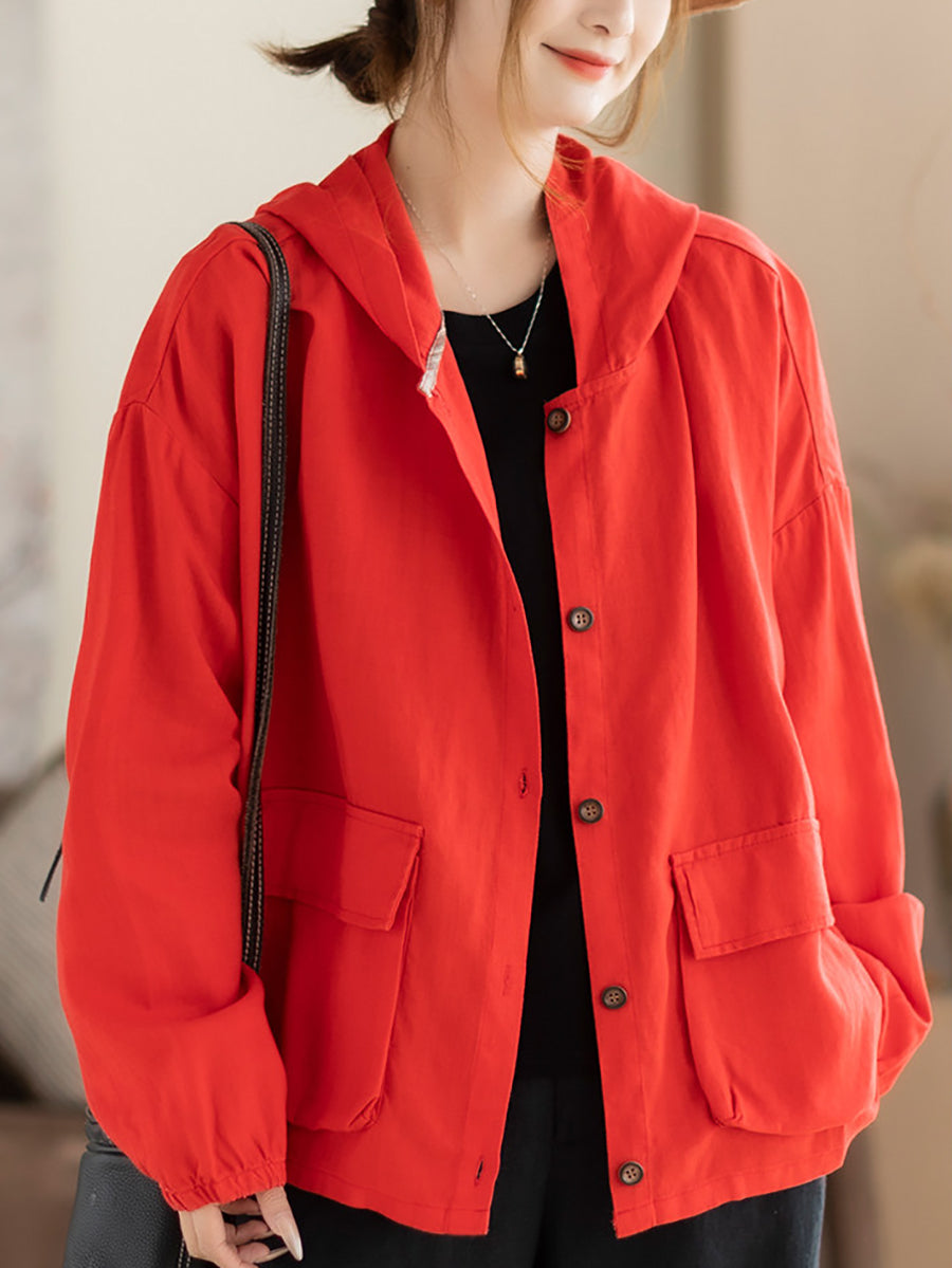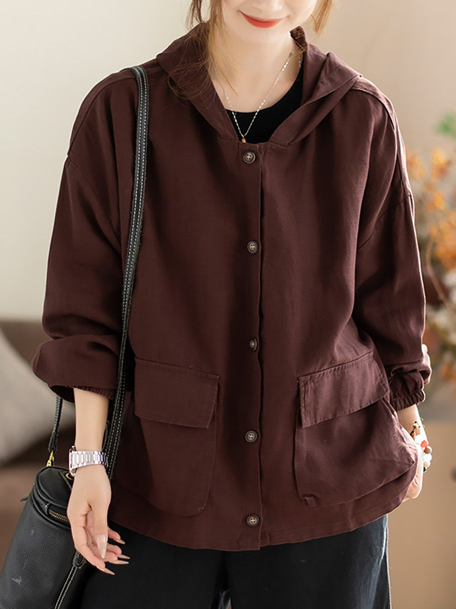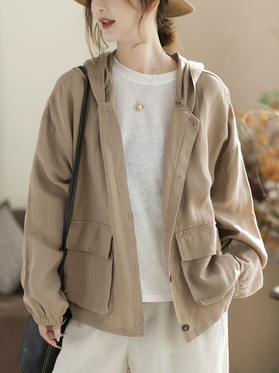 Women Spring Casual Pure Color Hooded Coat