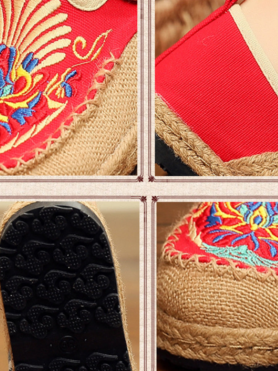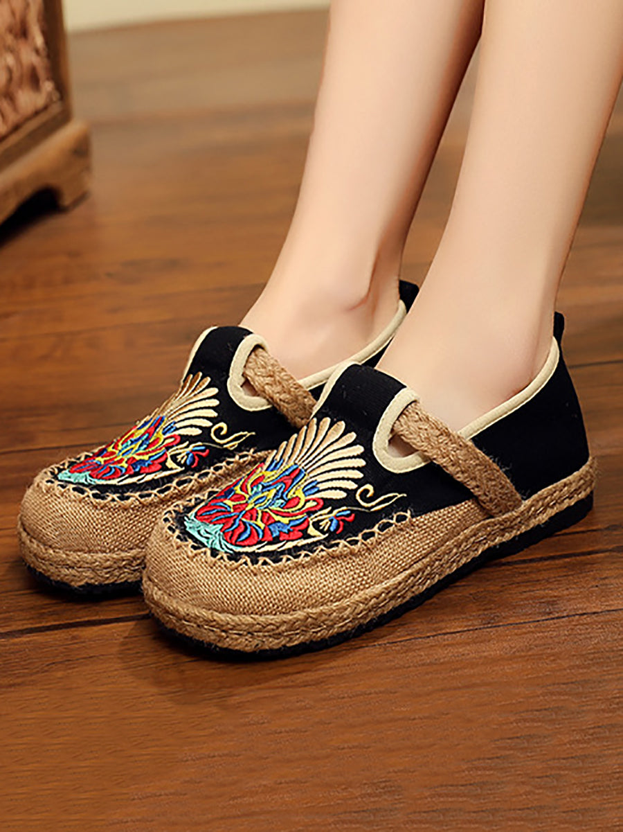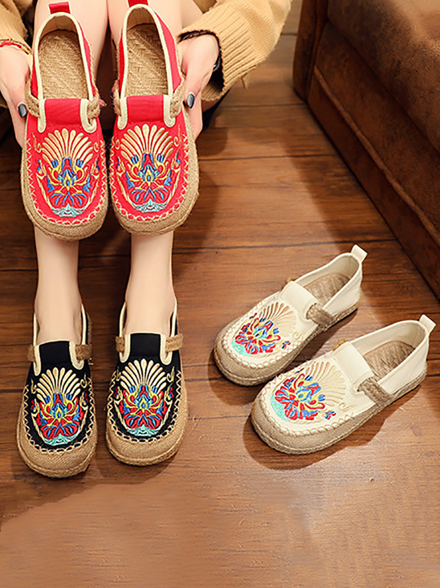 Women Spring Embroidery Linen Canvas Shoes