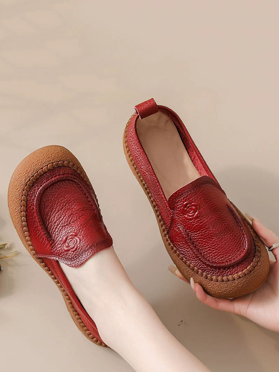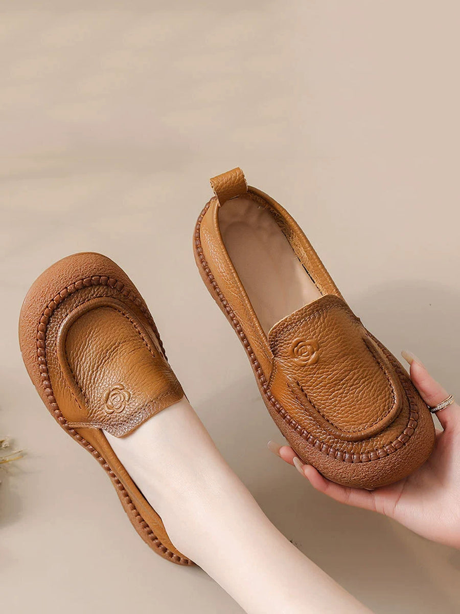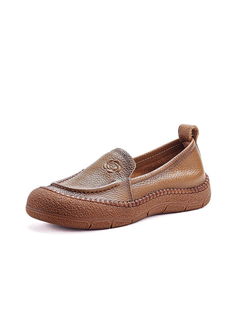 Women Spring Genuine Leather Flower Embossing Flat Shoes