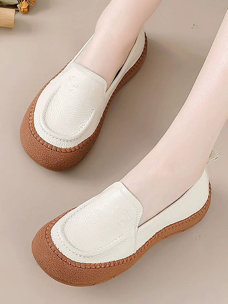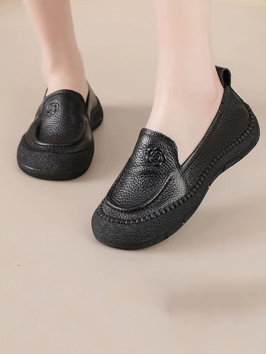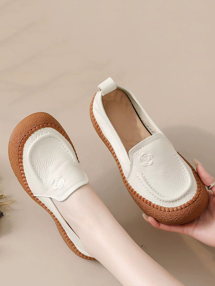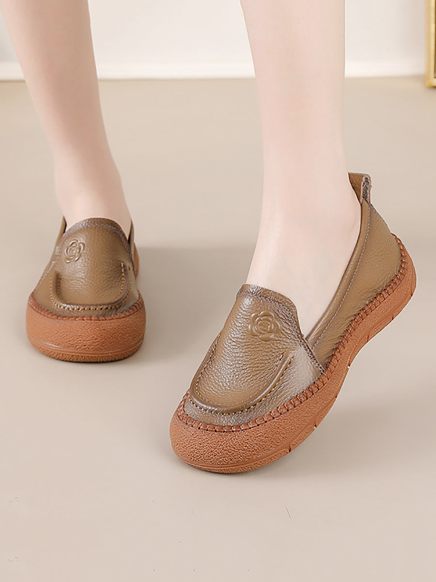 Women Spring Genuine Leather Flower Embossing Flat Shoes