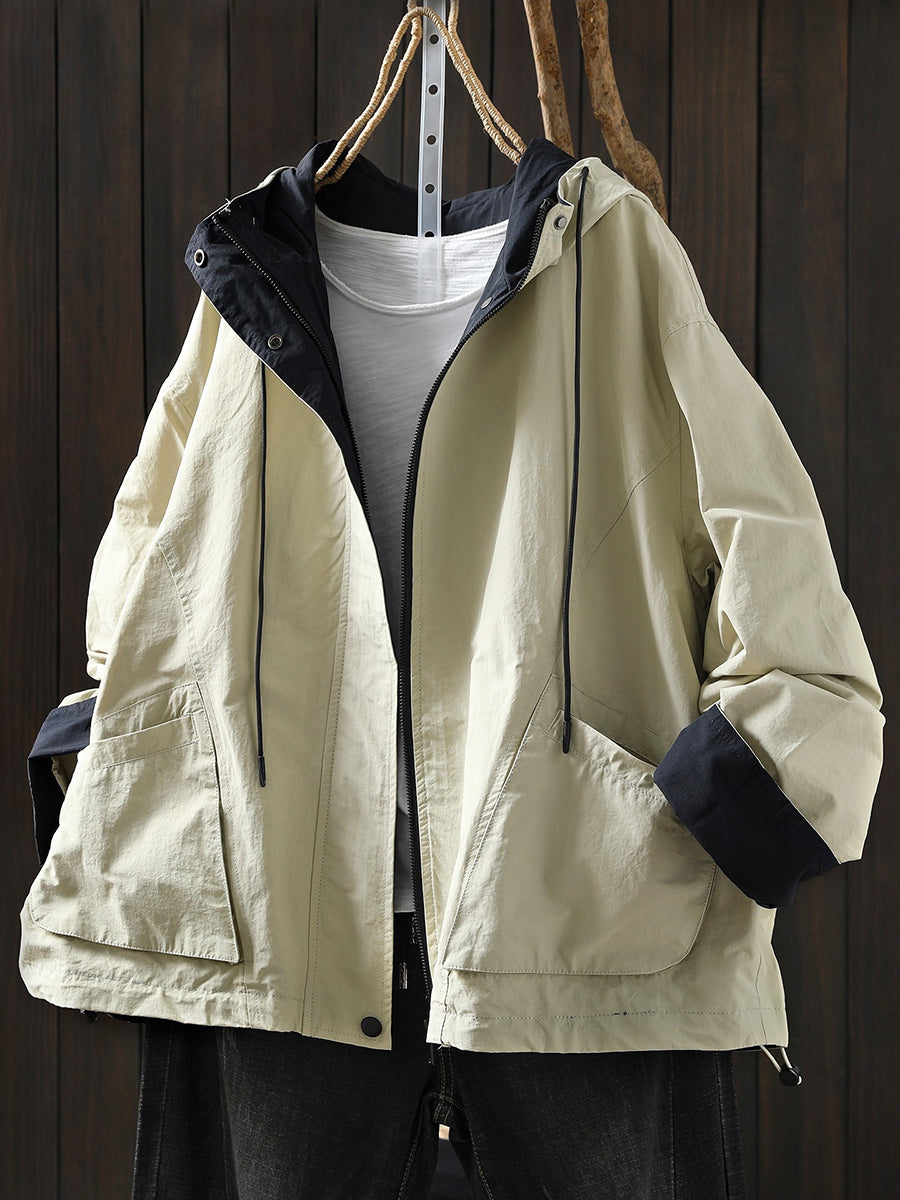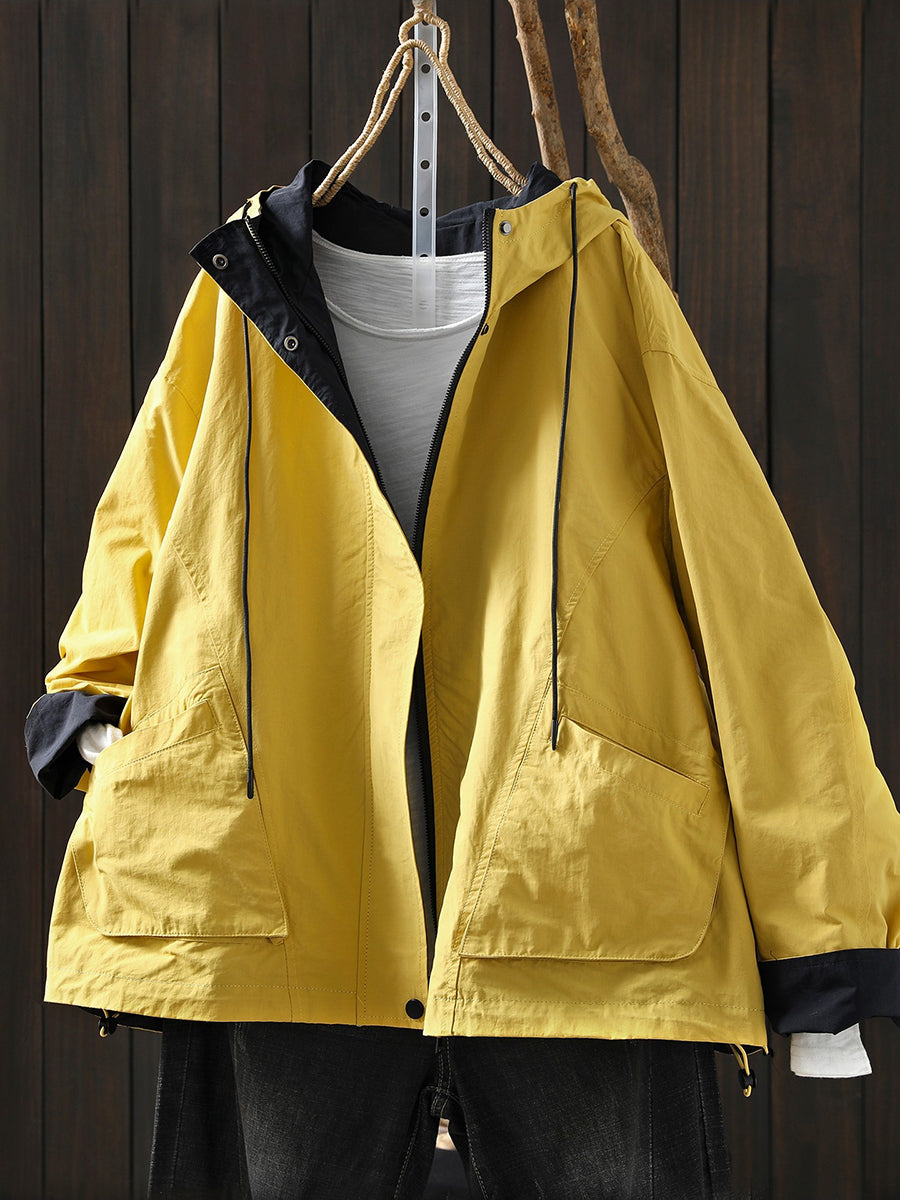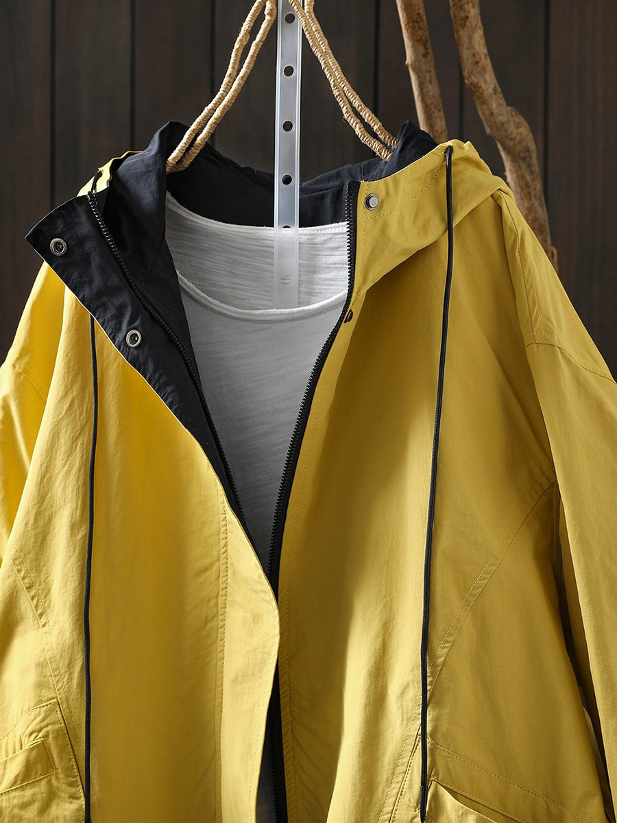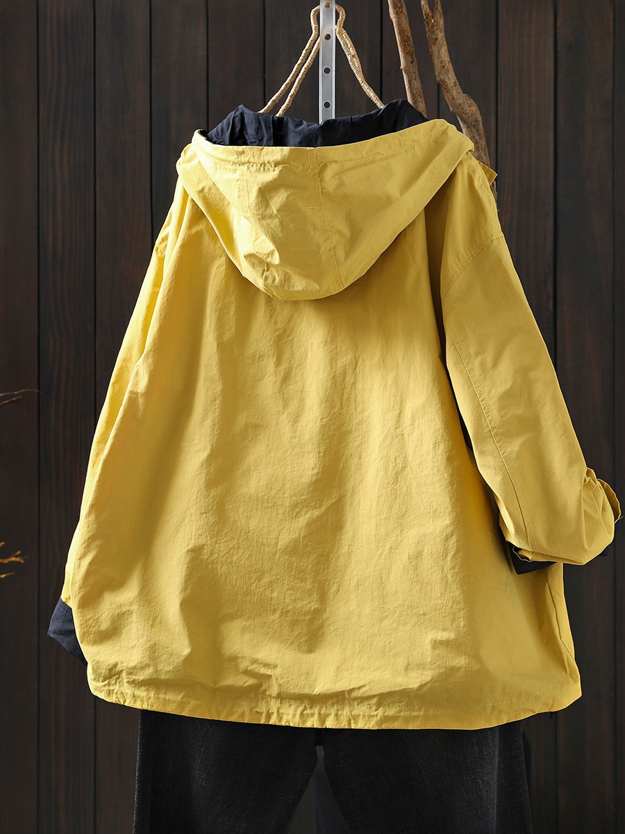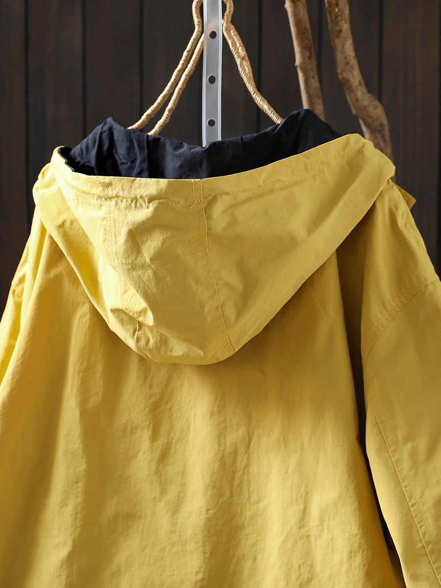 Women Spring Pure Color Cotton Hooded Coat