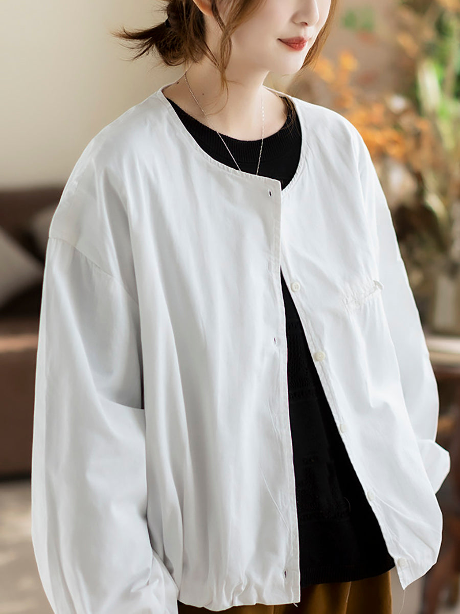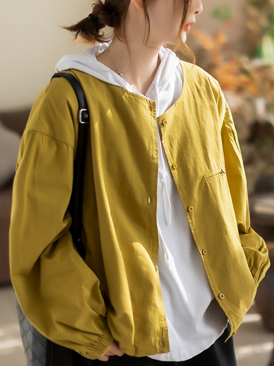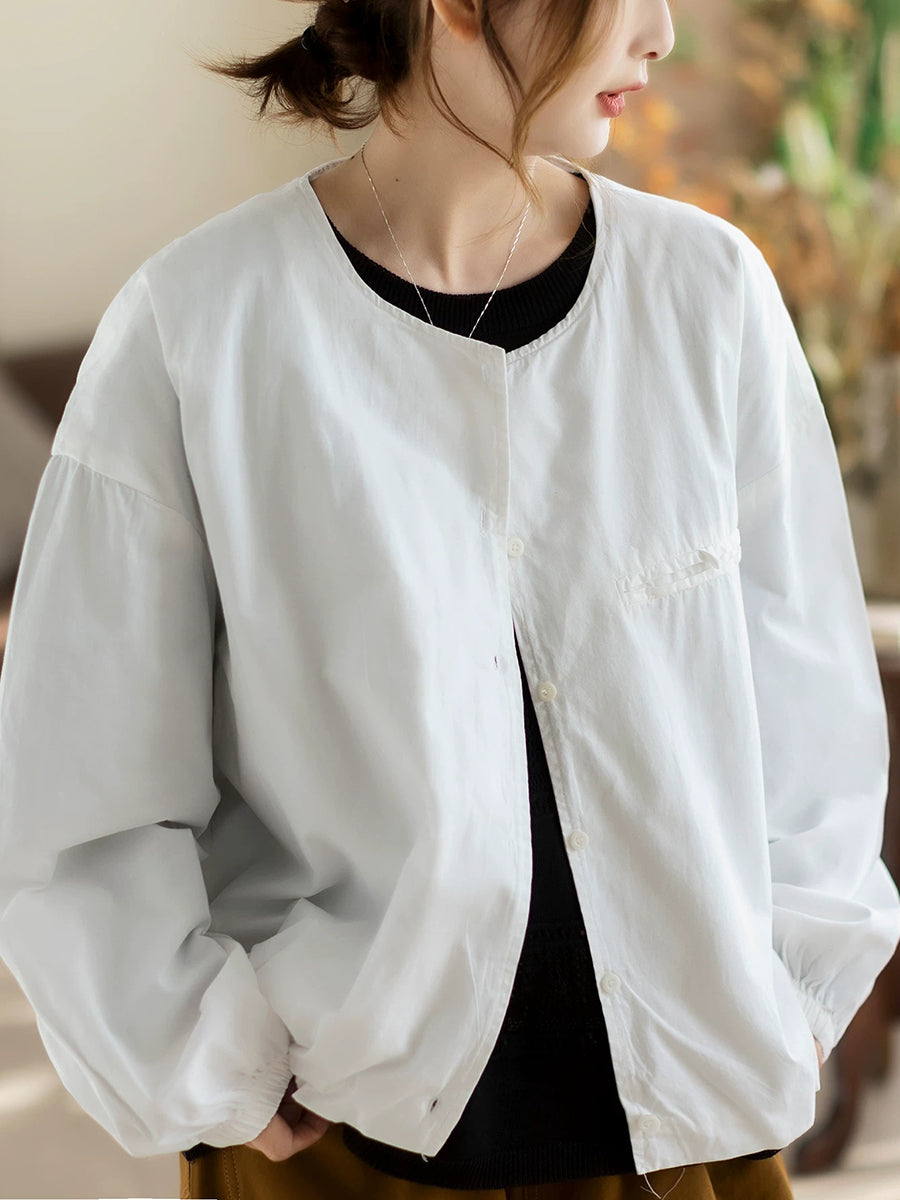 Women Spring Pure Color Cotton O-Neck Shirt Coat