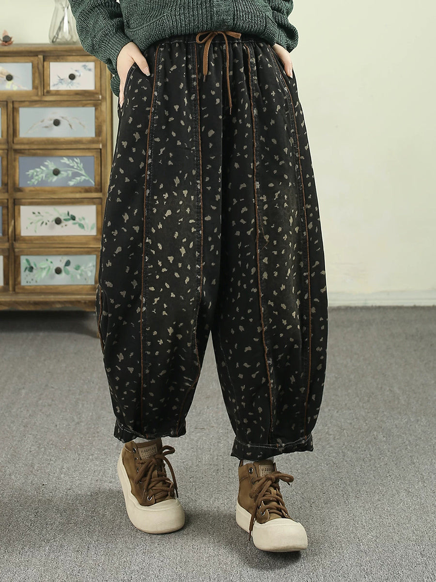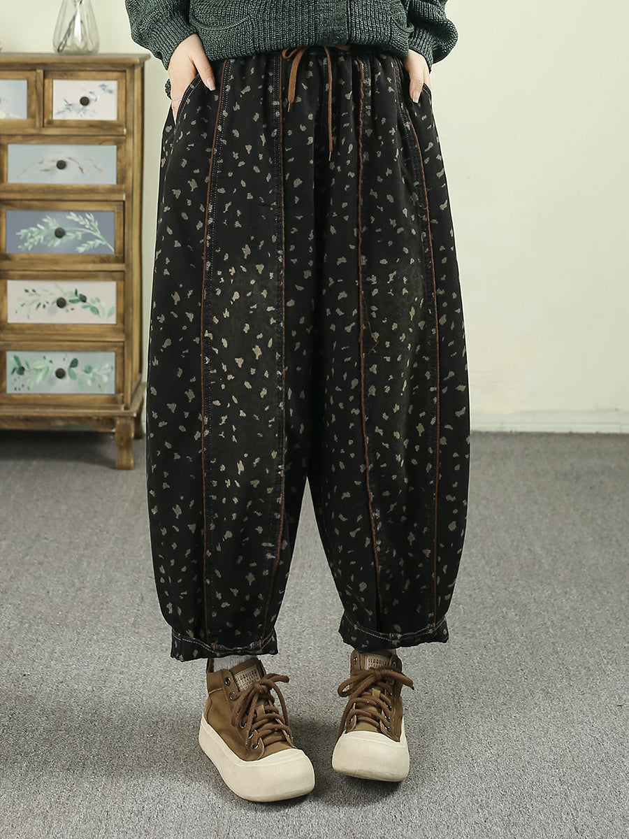 Women Spring Vintage Denim Leopard Harem Pants