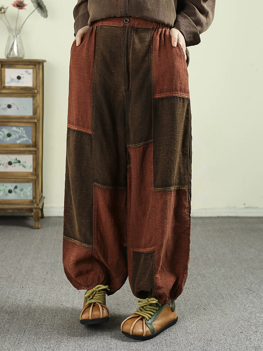 Women Spring Vintage Patchwork 100%Linen Bloomers