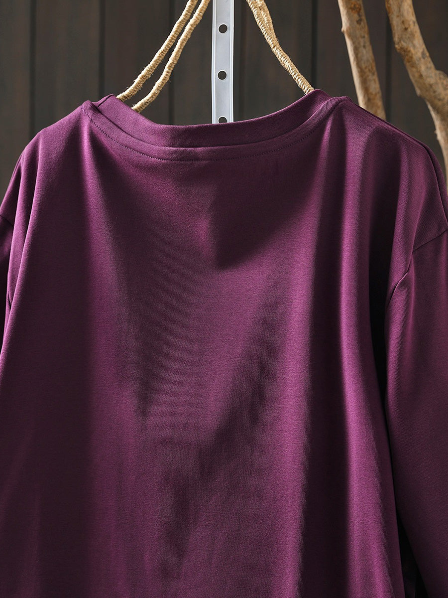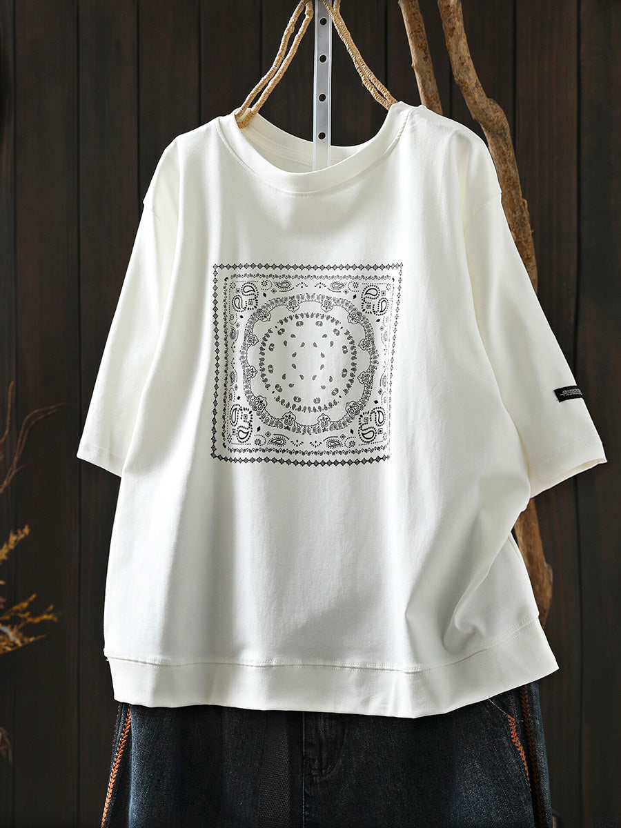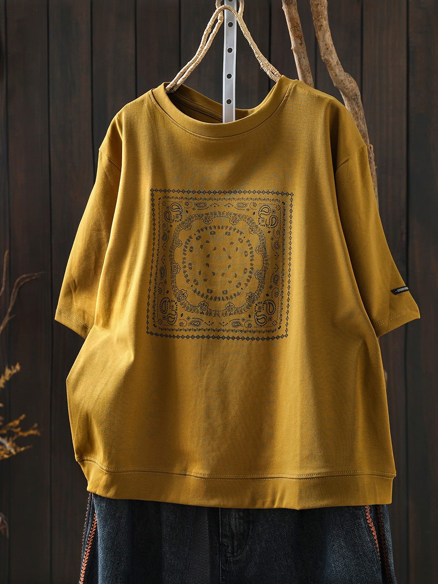 Women Summer Artsy Cotton O-Neck Shirt