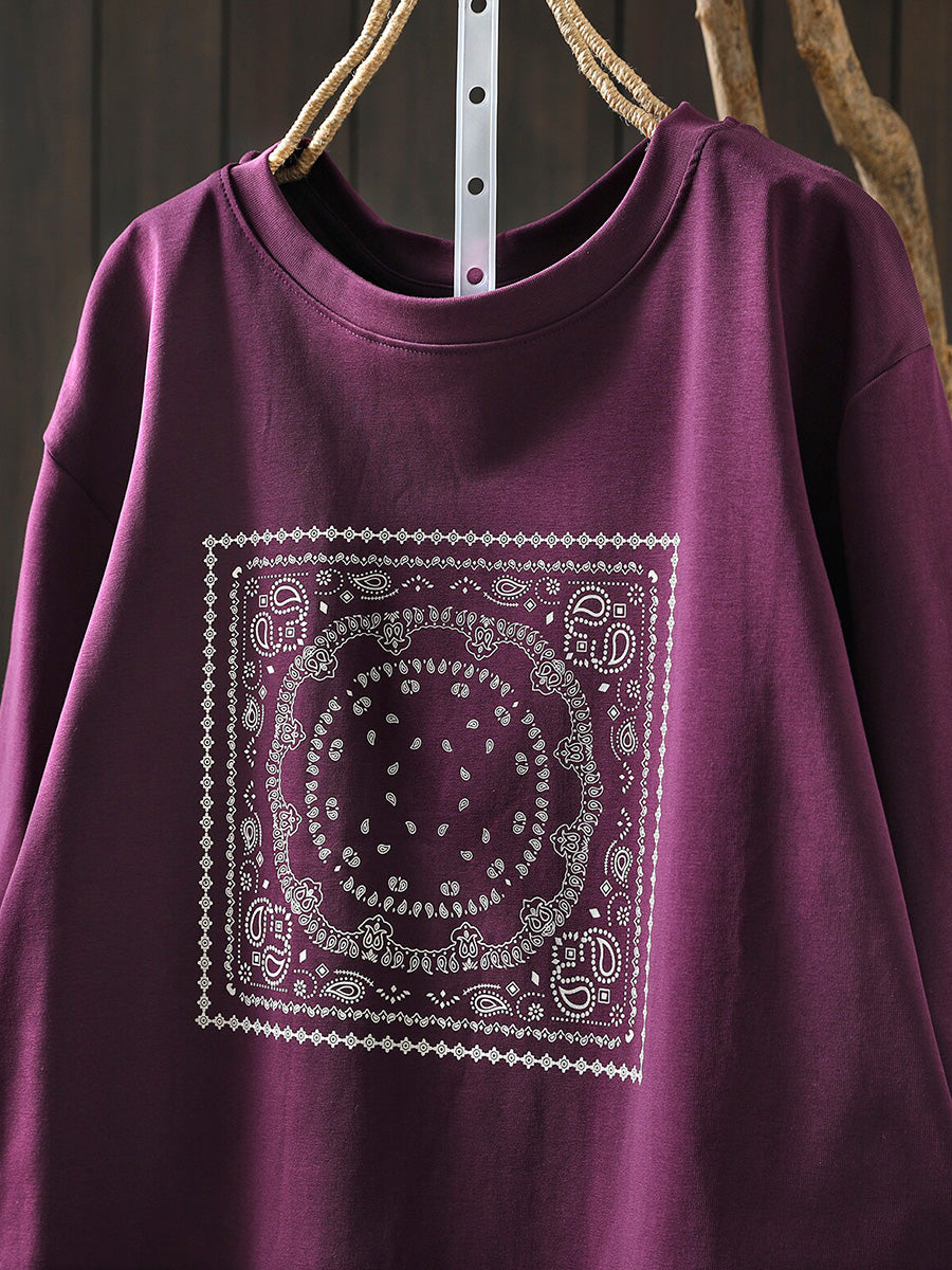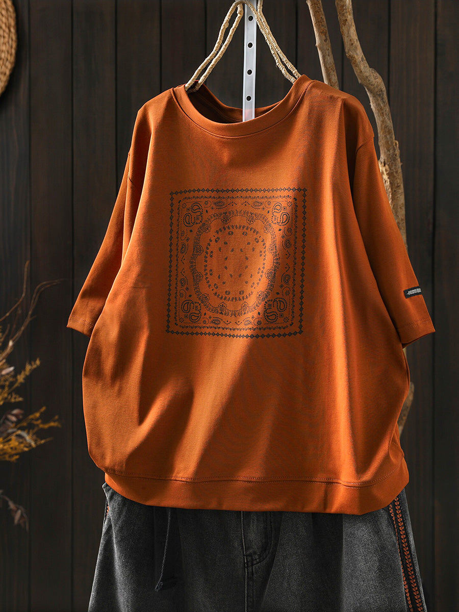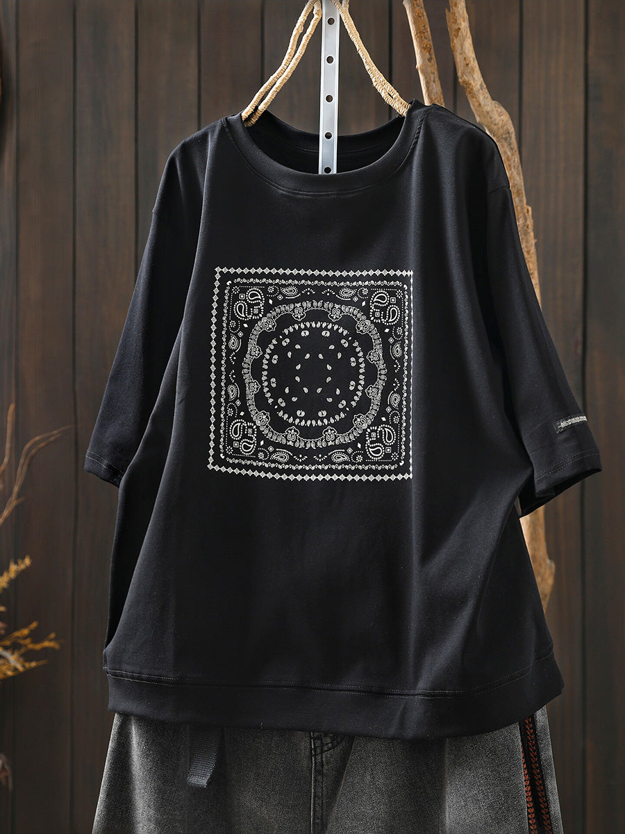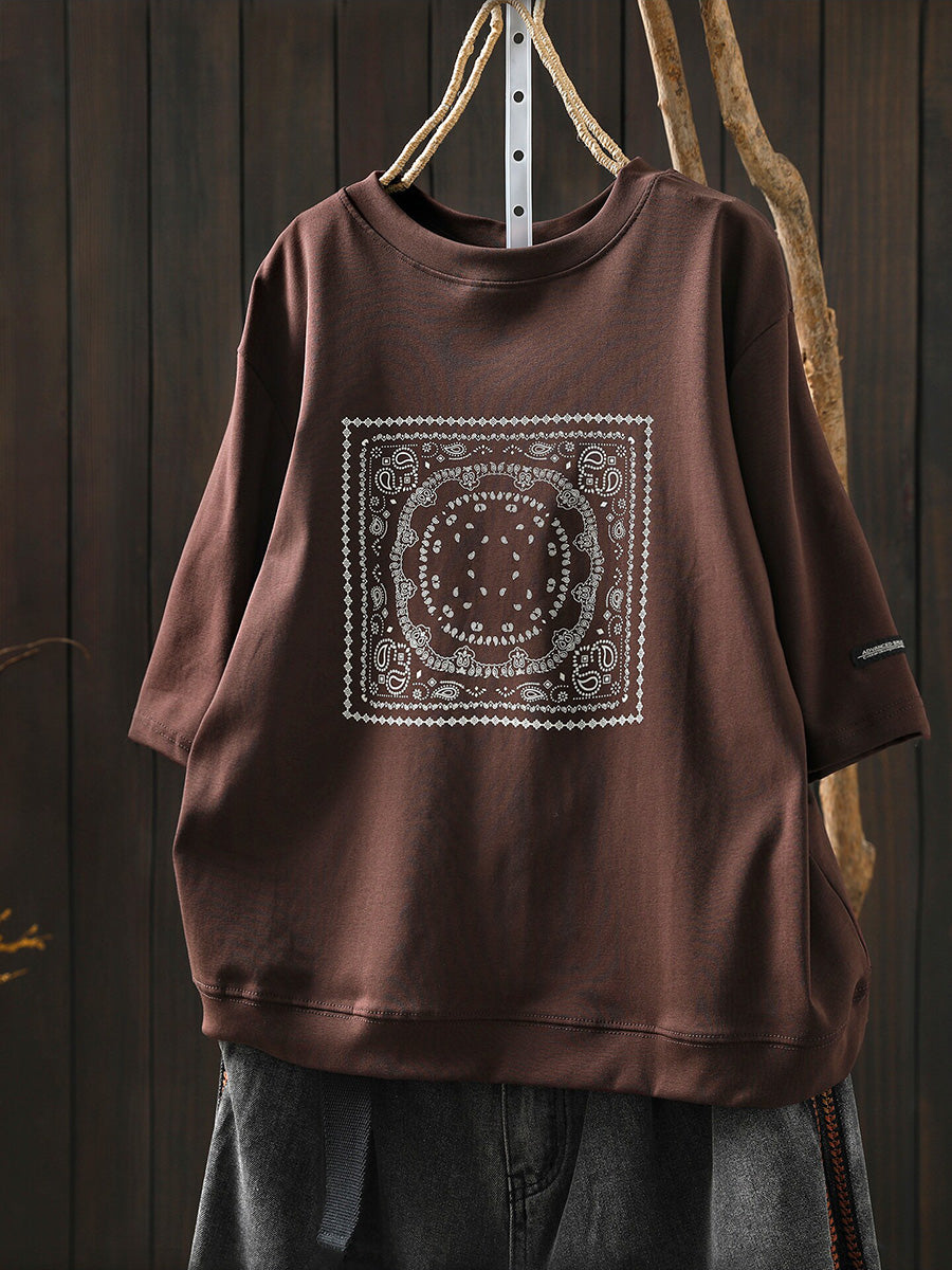 Women Summer Artsy Cotton O-Neck Shirt