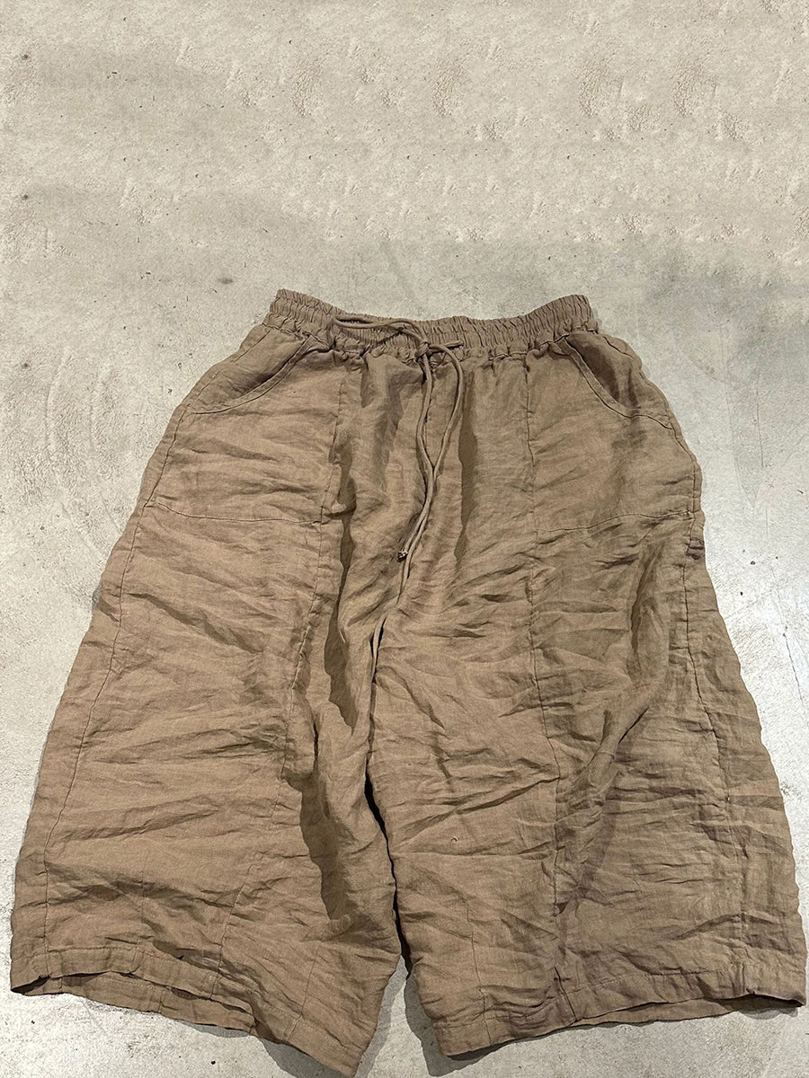 Women Summer Casual Pure Color Linen Wide-leg Pants
